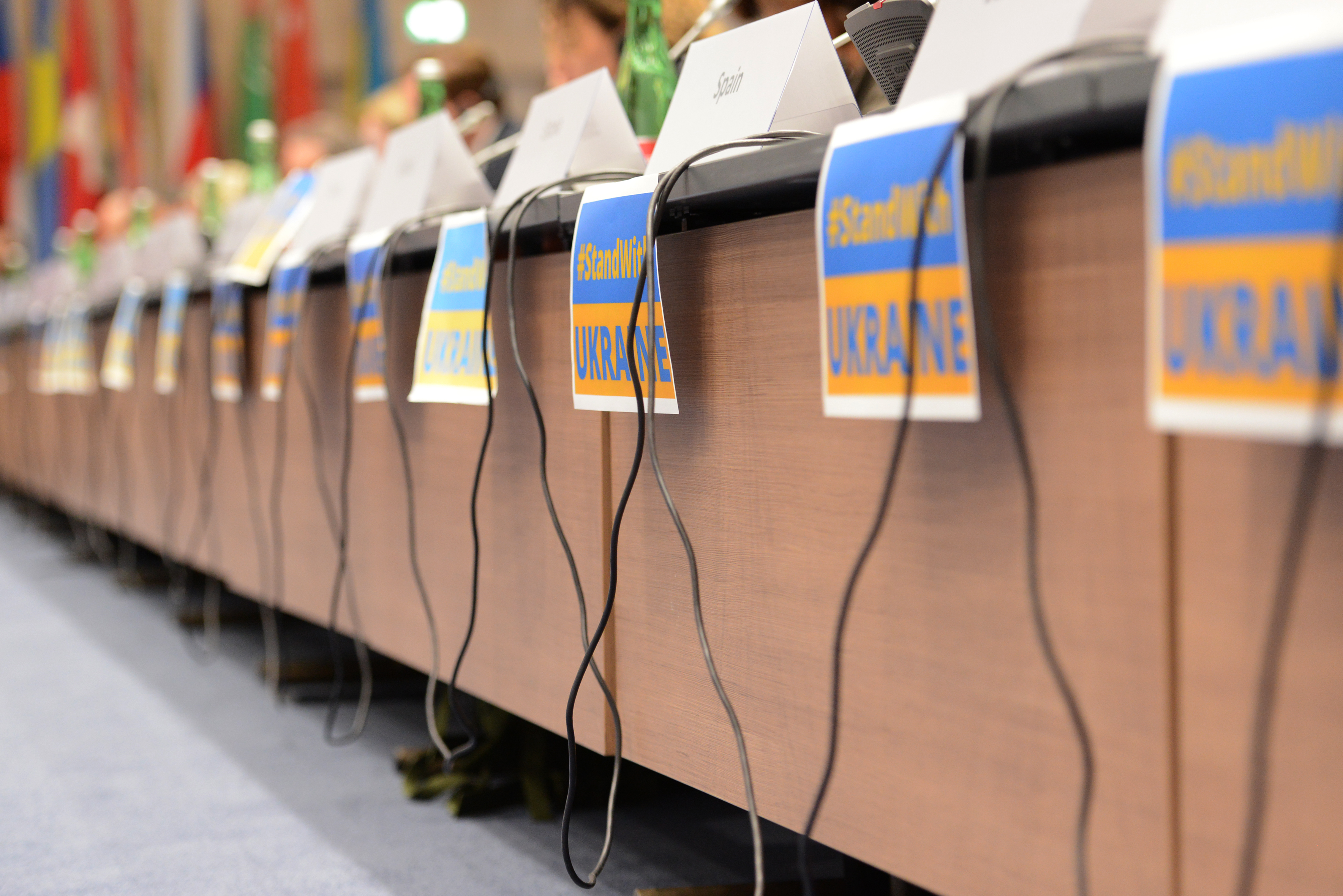 Ministrowie spraw zagranicznych państw uczestniczących OBWE wypowiadali się w duchu niesłabnącej solidarności z Ukrainą oraz silnego poparcia politycznego, dyplomatycznego, humanitarnego oraz wojskowego. Przywoływali zasady i zobowiązania OBWE, które państwa uczestniczące, w tym Rosja i wspierająca ją Białoruś, dobrowolnie przyjęły podpisując Akt Końcowy z Helsinek.