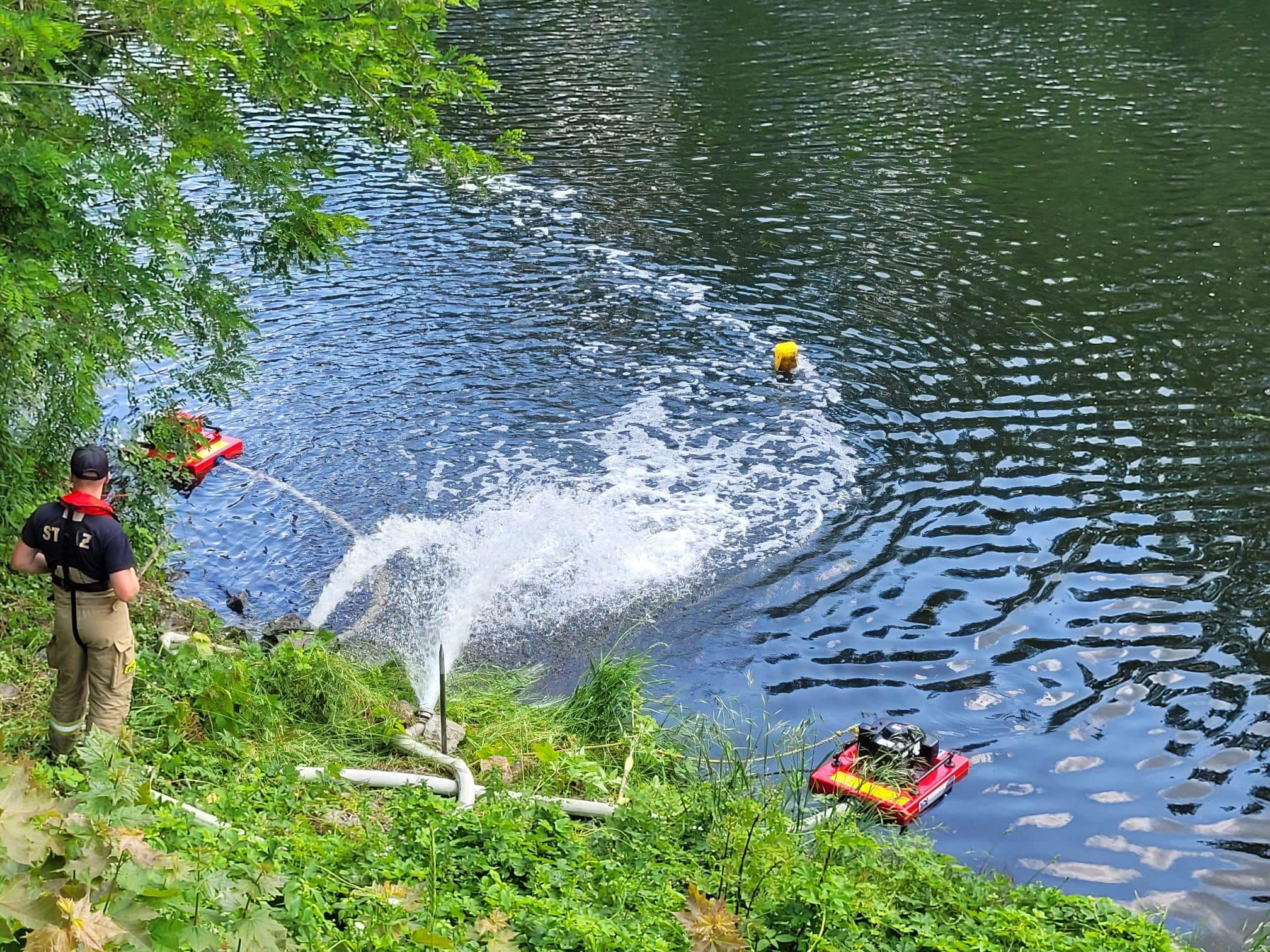 Na miejsce udali się także strażacy z PSP dla wsparcia akcji odławiania ryb oraz policjanci celem zabezpieczenia akcji.