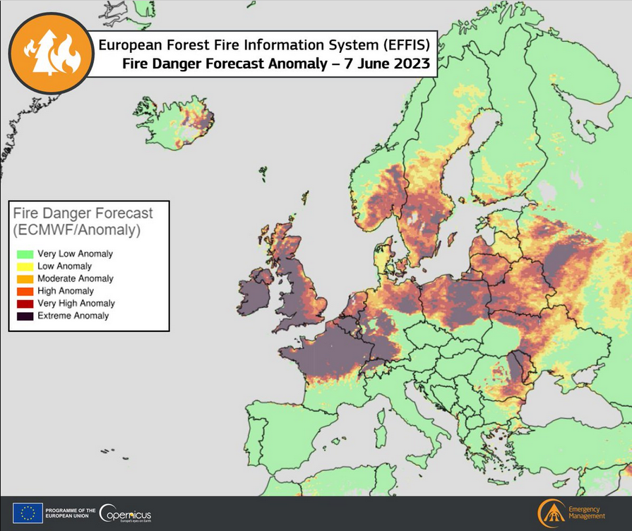 W Polsce i Europie wprowadzone są alerty z powodu wysokiego zagrożenia pożarowego lasów. Ma to związek z nasilającą się na kontynencie suszą. Najpoważniejsza sytuacja obecnie rozwija się w północnych rejonach Polski, gdzie od kilku tygodni nie spadła kropla deszczu. Sytuacja ma również wpływ na obniżanie się poziomu wody w rzekach. Zapowiadane na najbliższe dni i tygodnie upały, mogą to zjawisko pogłębić.