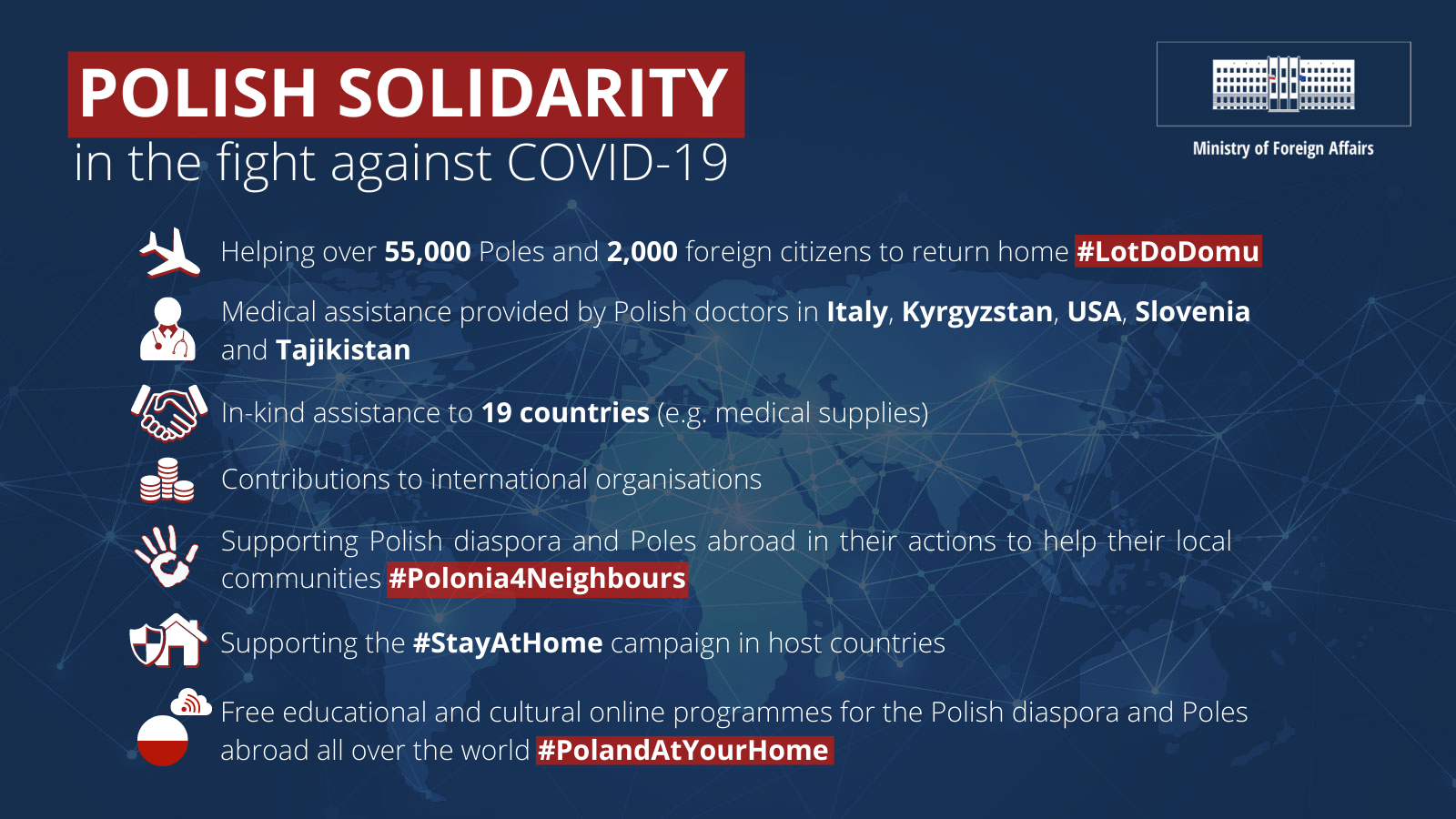 The Polish Ministry of Foreign Affairs would like to thank everyone who is engaged in helping others in Poland and across the world during the COVID-19 pandemic!