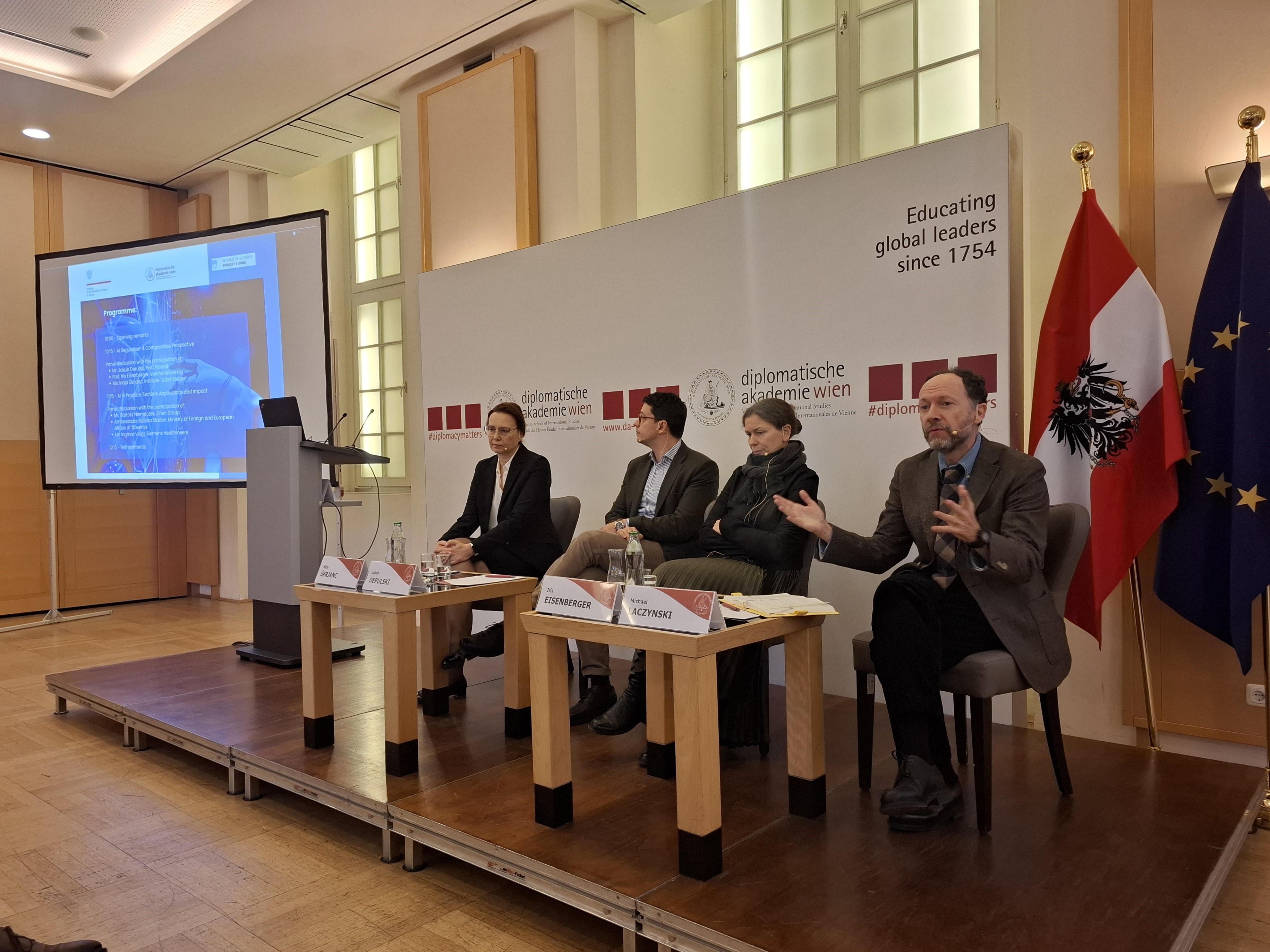Am 28. November 2025 organisierten die polnische und die slowenische Botschaft in Wien mit Unterstützung der Wiener Diplomatischen Akademie gemeinsam die Veranstaltung „Künstliche Intelligenz - Globale Perspektiven. Regulierung, Innovation und Auswirkungen in verschiedenen Branchen".