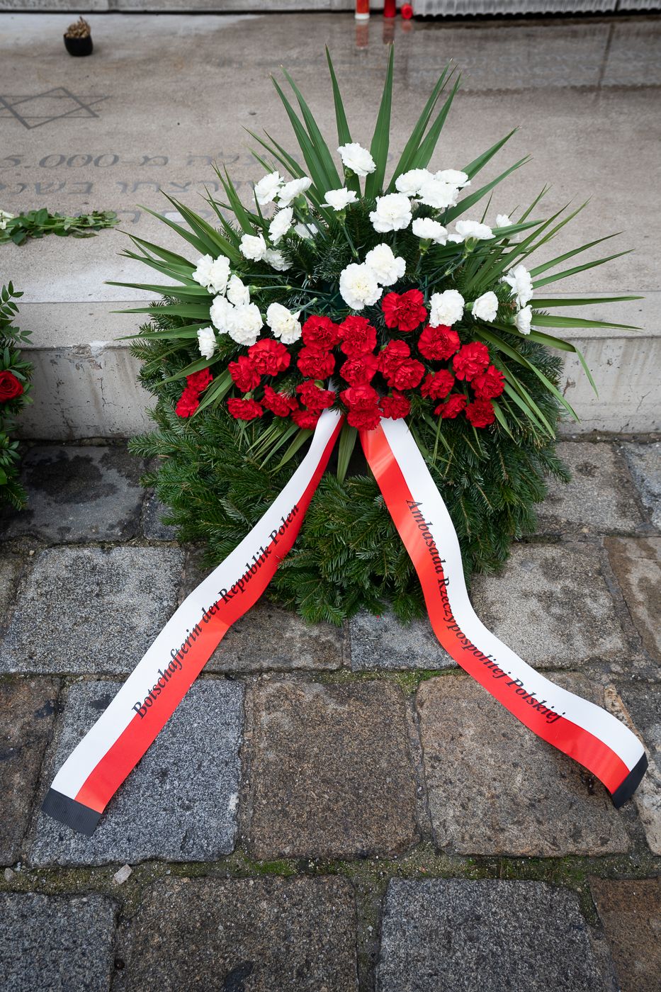 Anlässlich des am 27. Jänner stattfindenden Internationalen Tages des Gedenkens an die Opfer des Holocaust haben die Botschafterin der Republik Polen Mag. Jolanta R. Kozłowska, der Botschafter der Ukraine Dr. Olexander Scherba, der Erste Präsident des Wiener Landtages Ernst Woller und die Direktorin des Jüdischen Museums in Wien Dr. Danielle Spera, begleitet von den Militärattachés von Polen und der Ukraine, am Mittwoch, den 27. Jänner 2021, am Mahnmal für die österreichischen jüdischen Opfer der Schoah Kränze niedergelegt. Schon seit mehreren Jahren findet auf Initiative der Botschaft der Republik Polen und der Botschaft der Ukraine die gemeinsame Kranzniederlegung statt.