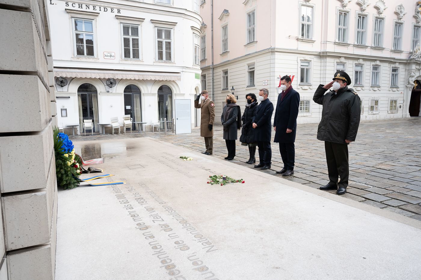 Gemeinsame Kranzniederlegung am Judenplatz am 27. Jänner 2021