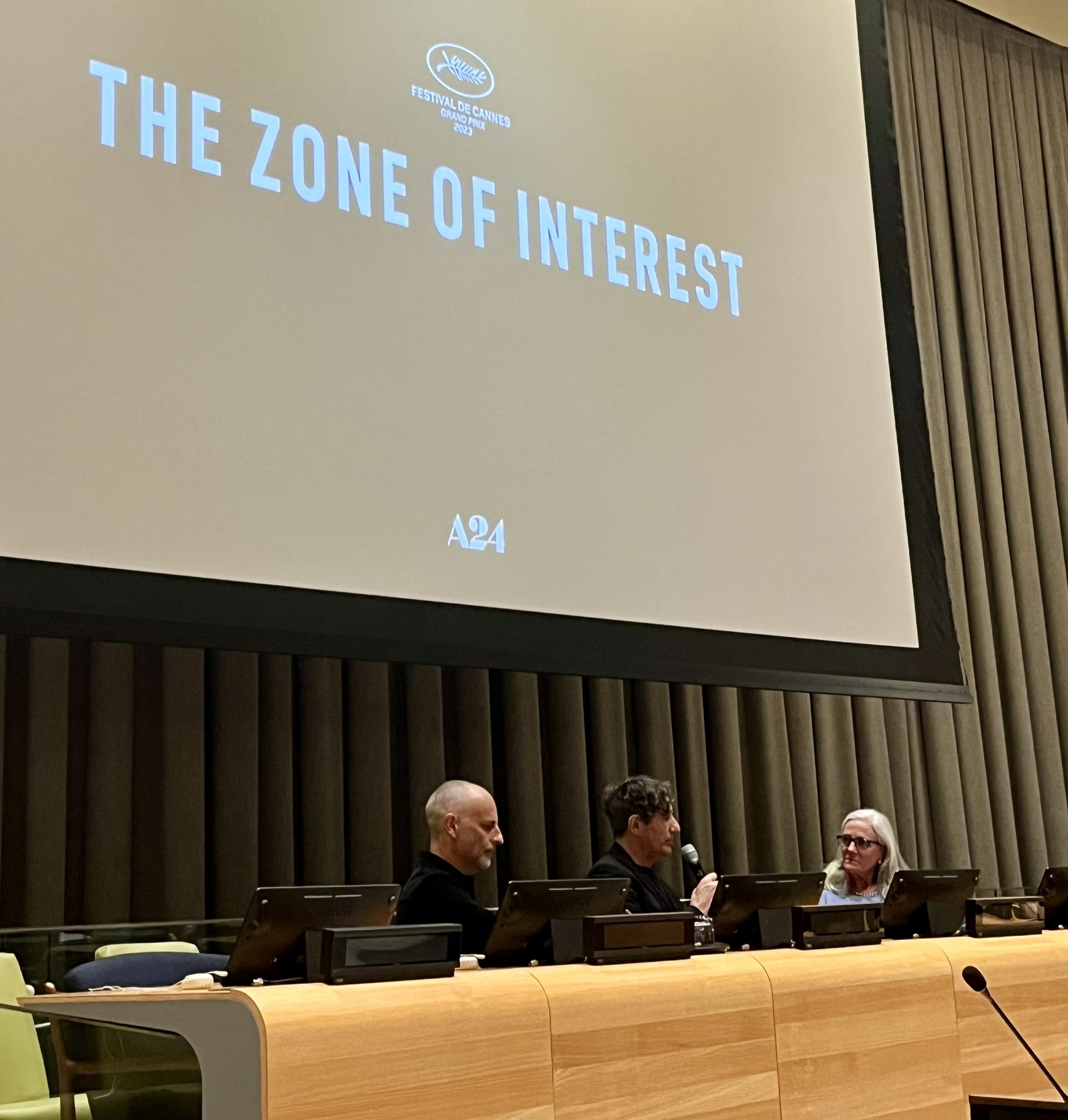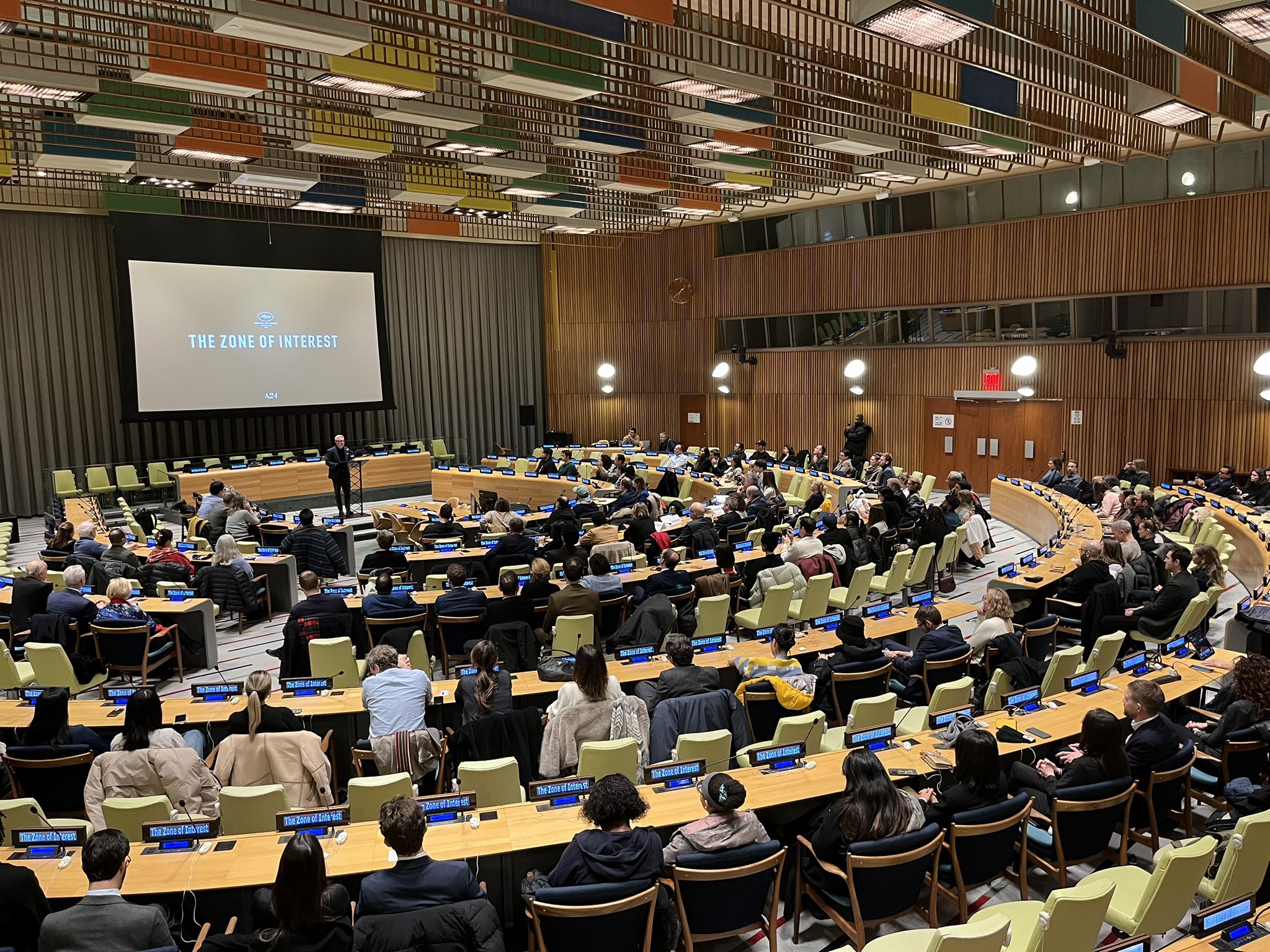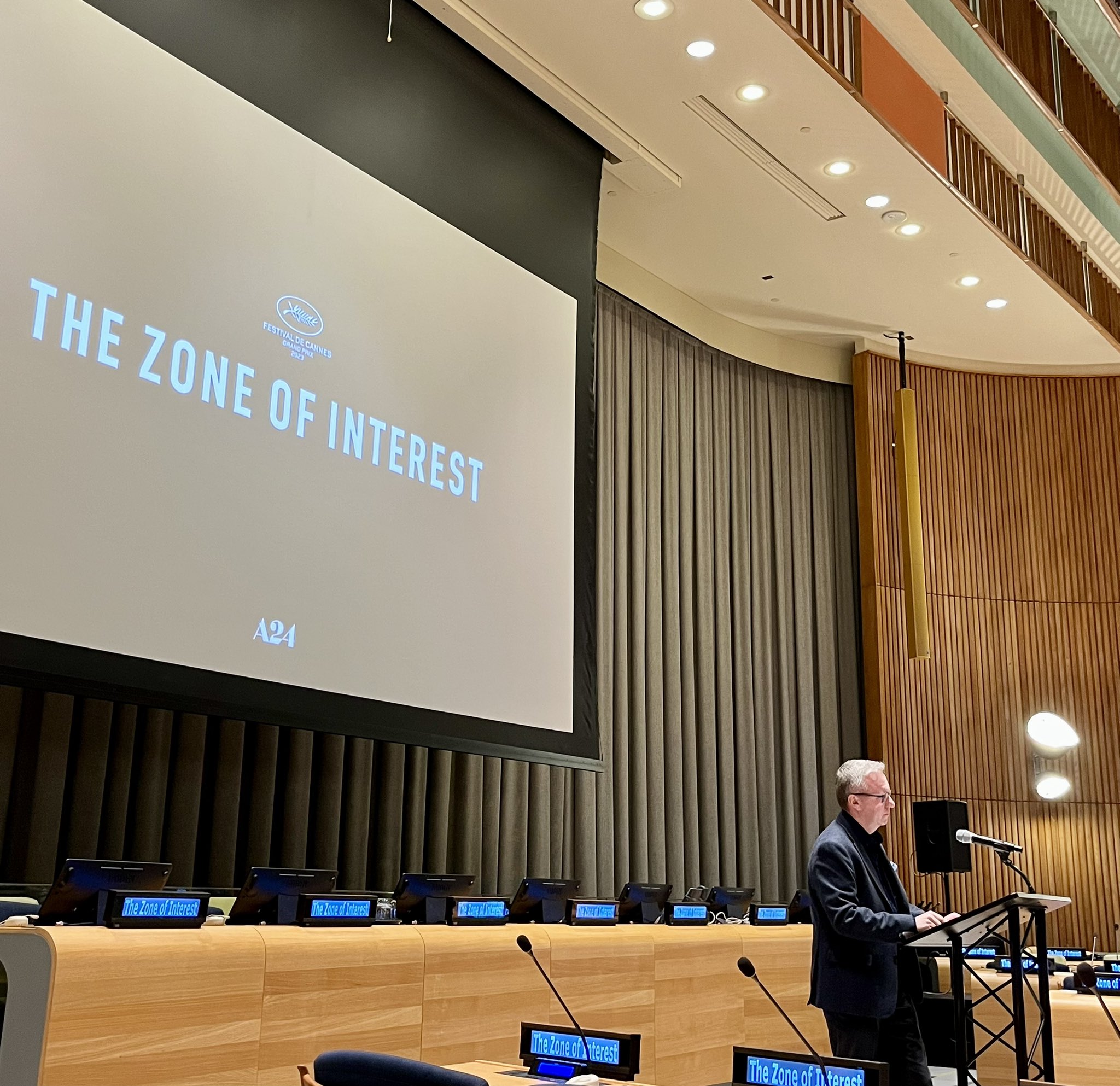 Stałe Przedstawicielstwo Polski przy Narodach Zjednoczonych we współpracy z przedstawicielstwem Wielkiej Brytanii oraz wytwórnią filmową A24 zorganizowało 5 stycznia w nowojorskiej siedzibie ONZ pokaz filmu „Strefa interesów”.