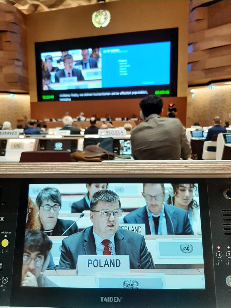 W polskim wystąpieniu narodowym Ambasador Zbigniew Czech podkreślił, że odpowiedź Polski na kryzys wywołany rosyjską inwazją na Ukrainę realizowana jest wielotorowo: poprzez dostarczanie pomocy humanitarnej obywatelom Ukrainy, pomoc w transporcie międzynarodowej pomocy humanitarnej na Ukrainę oraz przyjmowanie i integrację bezprecedensowej liczby ukraińskich uchodźców z polskim społeczeństwem. "Inwestujemy znacząco w integrację i edukację ukraińskich dzieci i młodzieży, podejmując wszelkie możliwe działania, aby nie dopuścić do straconego pokolenia w ukraińskim społeczeństwie" - podkreślił Ambasador Z. Czech.