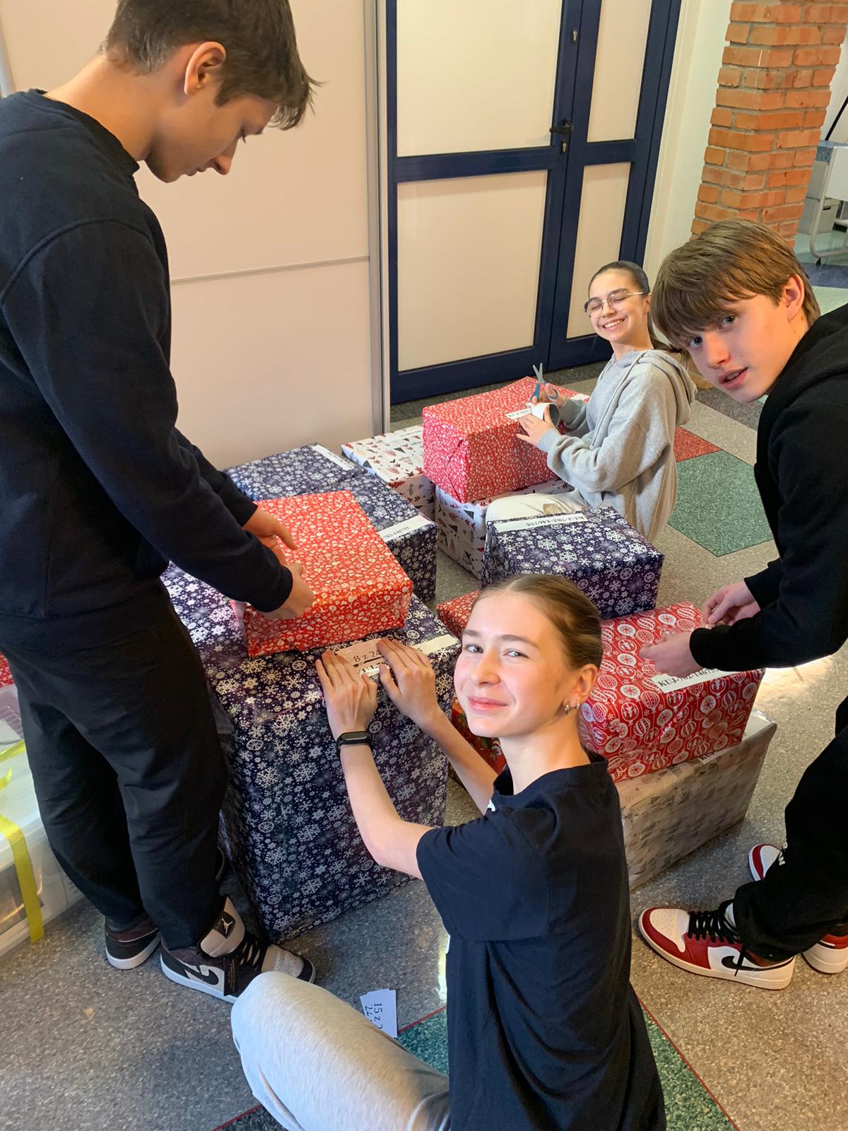 Dziękujemy wszystkim, którzy wzięli udział w akcji przekazując nam produkty i wspierając swoimi wpłatami. Dziękujemy również klasom 8 i 5, które pomogły w zapakowaniu i oznaczeniu paczek. Wierzymy, że dobro wraca i ściskamy Was wszystkich w imieniu obdarowanej rodziny