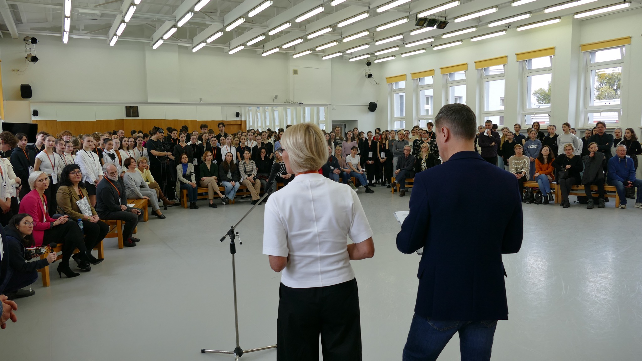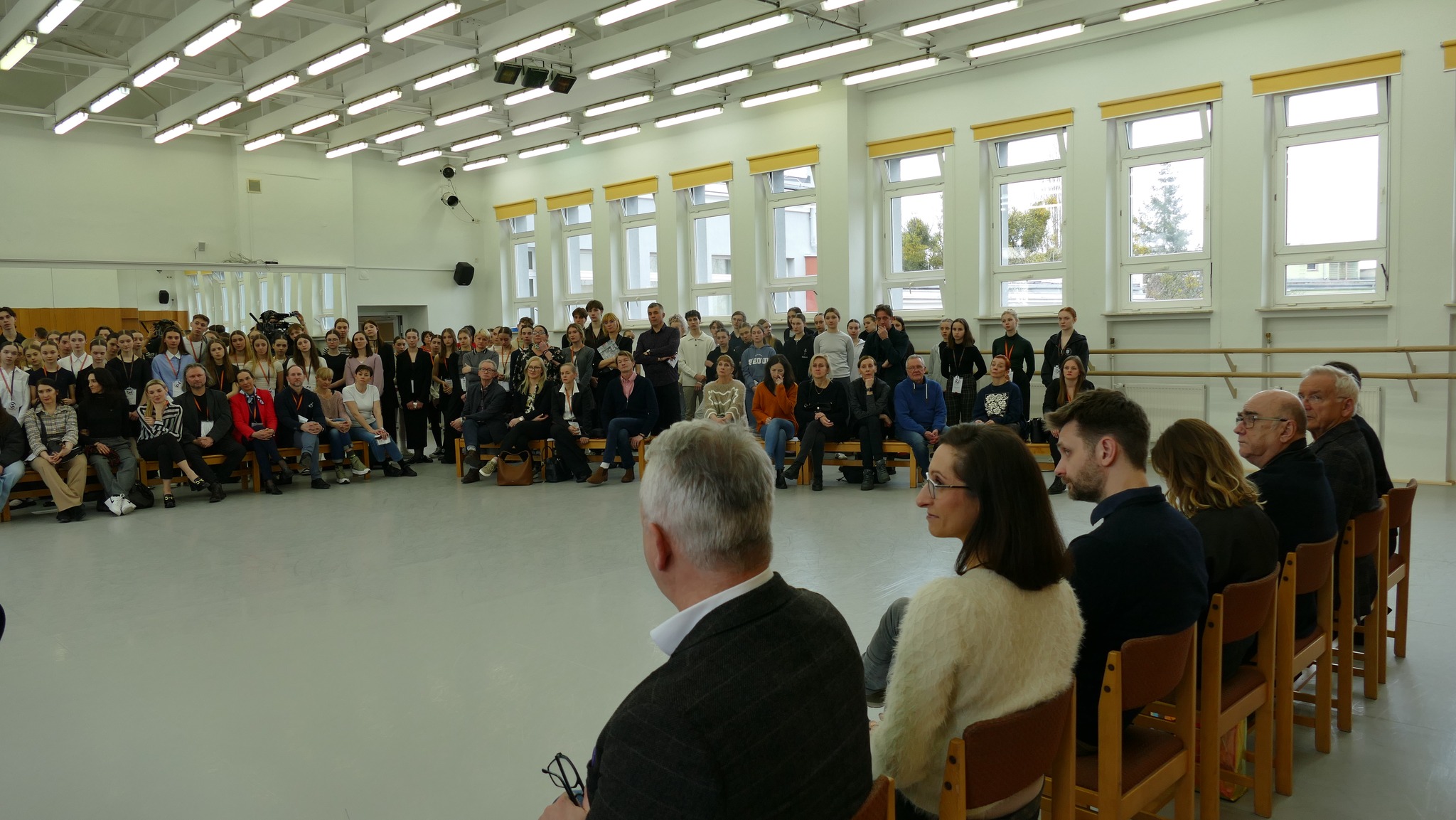 Na sali CD zgromadzili się uczestnicy – uczniowie ogólnopolskich „baletówek” z Bytomia, Gdańska, Łodzi, Poznania i Warszawy oraz niepublicznych szkół tańca z Białegostoku i Siedlec wraz ze swoimi pedagogami. Byli też oczywiście jurorzy i wizytatorzy CEA oraz pedagodzy, którzy poprowadzą lekcje konkursowe.