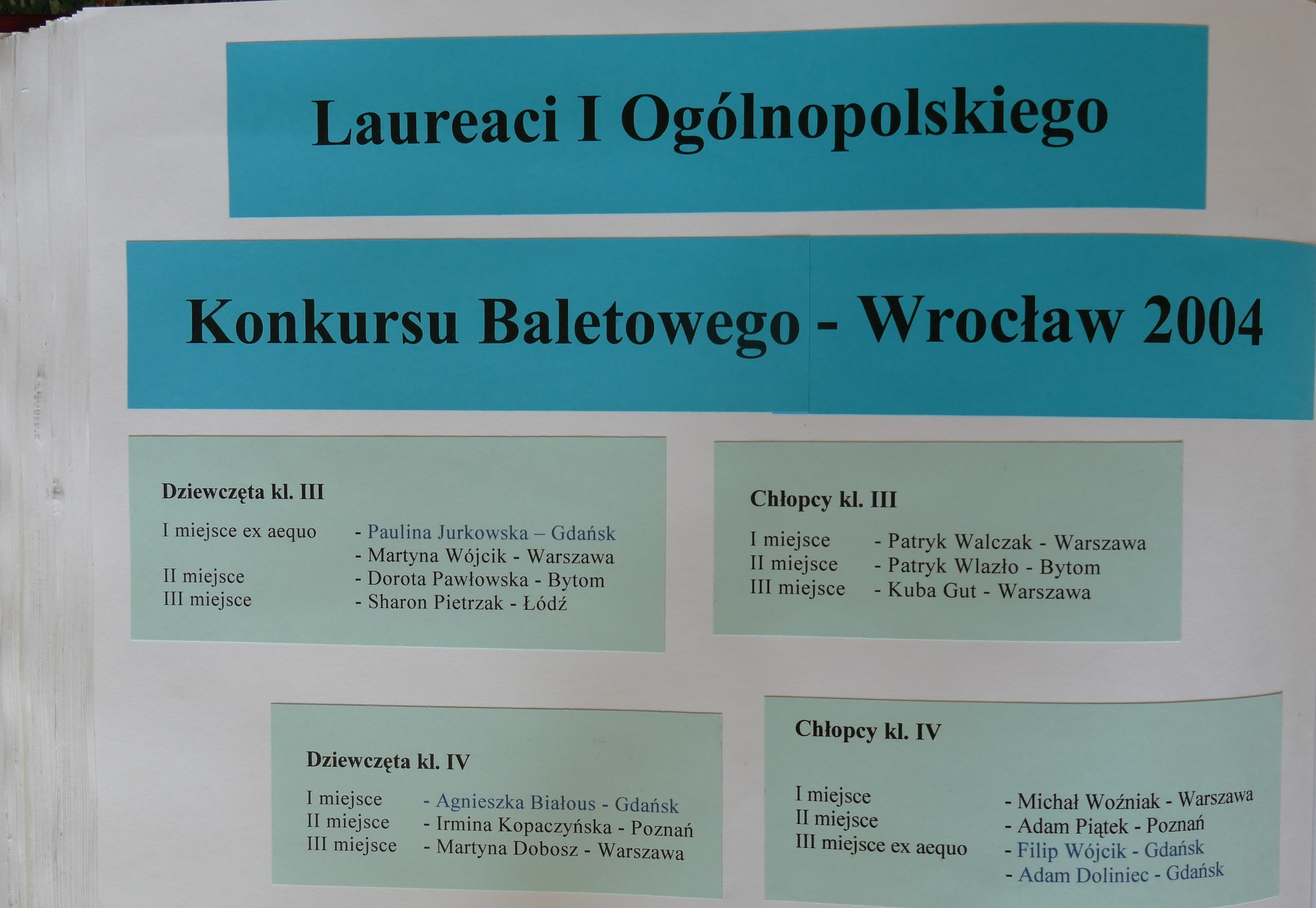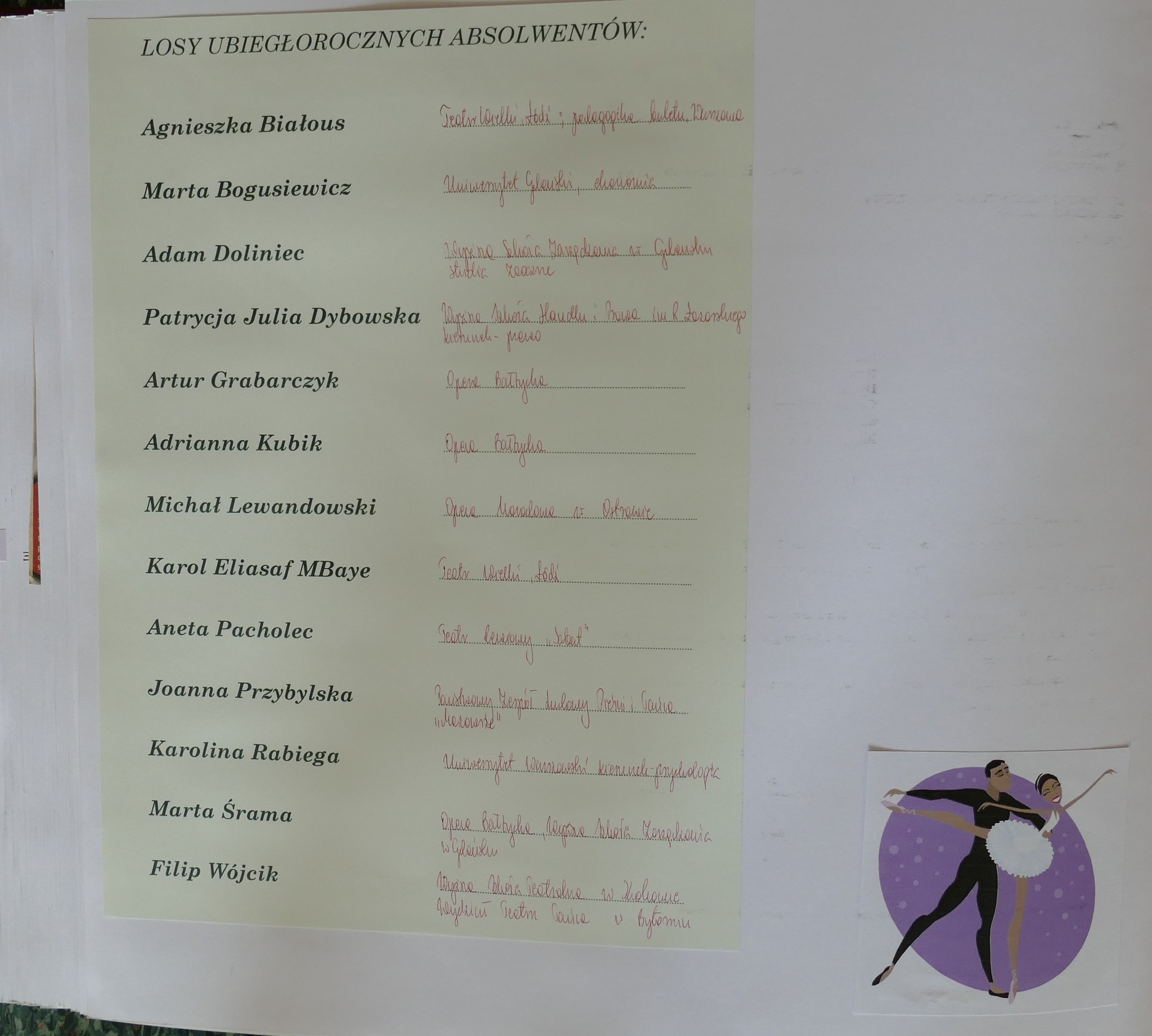 2008: Paweł Bagiński, Katarzyna Borman, Oksana Chodorowska, Paweł Gałązka, Kinga Kobiela, Justyna Ostach, Emilia Siudzińska, Katarzyna Ustowska, Dorota Wiśniewska, Stavros Pittas, Marianna Minasowa