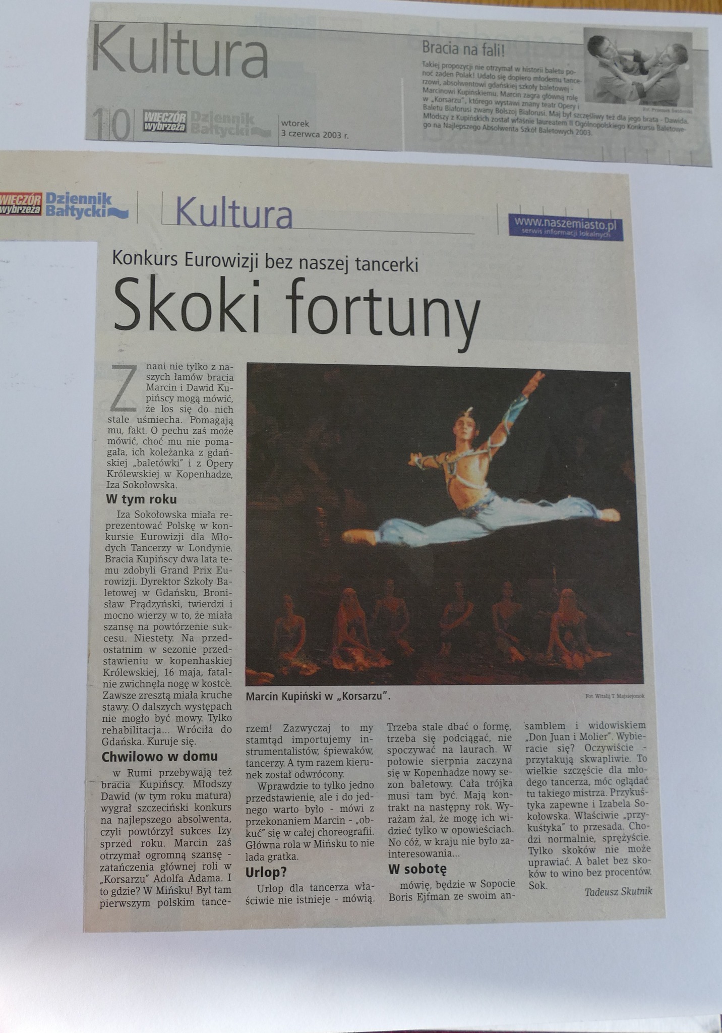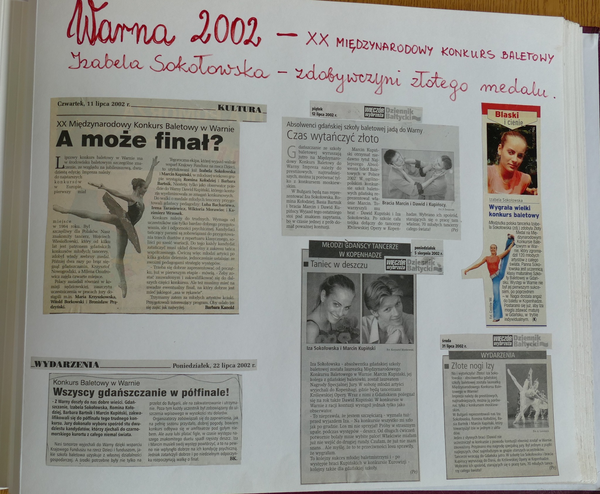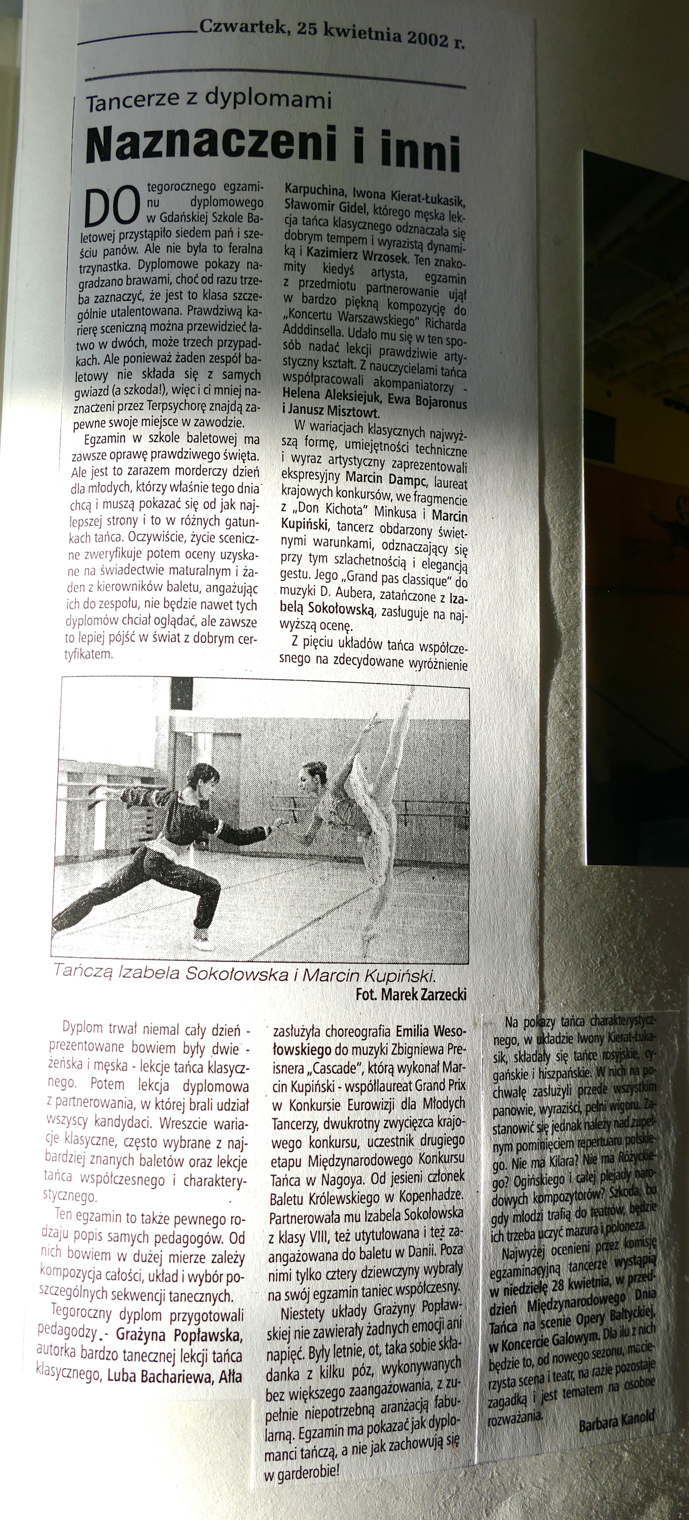 W 2002 roku braci z Izą, Marcinem Dempcem i młodszymi koleżankami (o których pisać będziemy w przyszłym tygodniu) Basią i Rominą, polecieli do Japonii, na konkurs baletowy w Nagoi. Tam Iza i Marcin K. przeszli do półfinału. Kilka miesięcy potem, latem 2002 roku, Izabela Sokołowska zdobyła Złoty Medal podczas prestiżowego XX Międzynarodowego Konkursu Baletowego w Warnie. Marcin Kupiński podczas tego konkursu zdobył nagrodę specjalną Jury.
