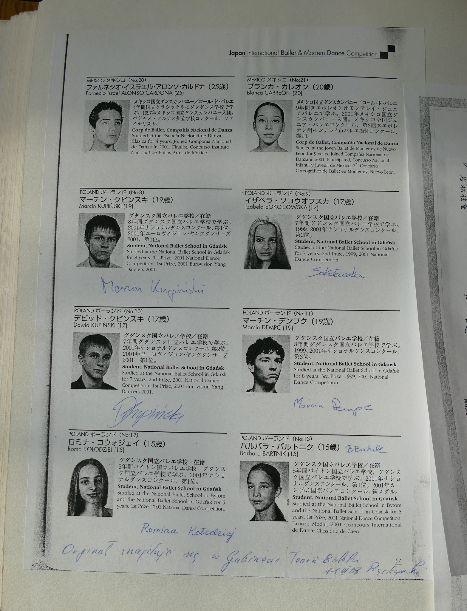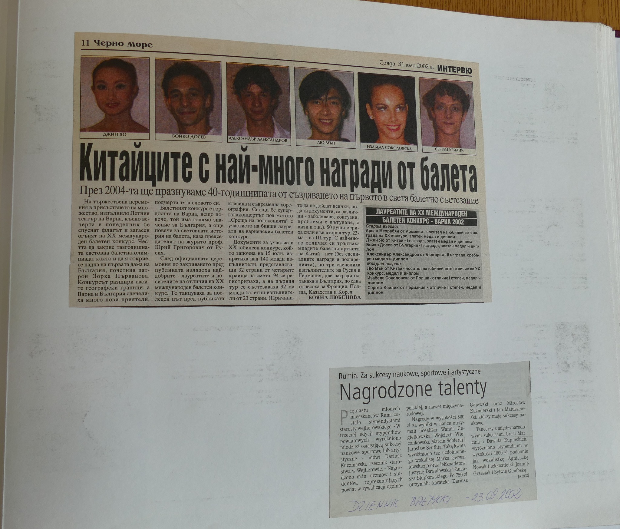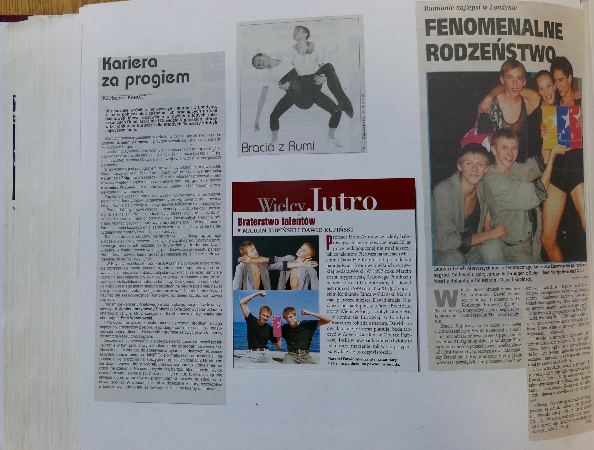W 2002 roku braci z Izą, Marcinem Dempcem i młodszymi koleżankami (o których pisać będziemy w przyszłym tygodniu) Basią i Rominą, polecieli do Japonii, na konkurs baletowy w Nagoi. Tam Iza i Marcin K. przeszli do półfinału. Kilka miesięcy potem, latem 2002 roku, Izabela Sokołowska zdobyła Złoty Medal podczas prestiżowego XX Międzynarodowego Konkursu Baletowego w Warnie. Marcin Kupiński podczas tego konkursu zdobył nagrodę specjalną Jury.