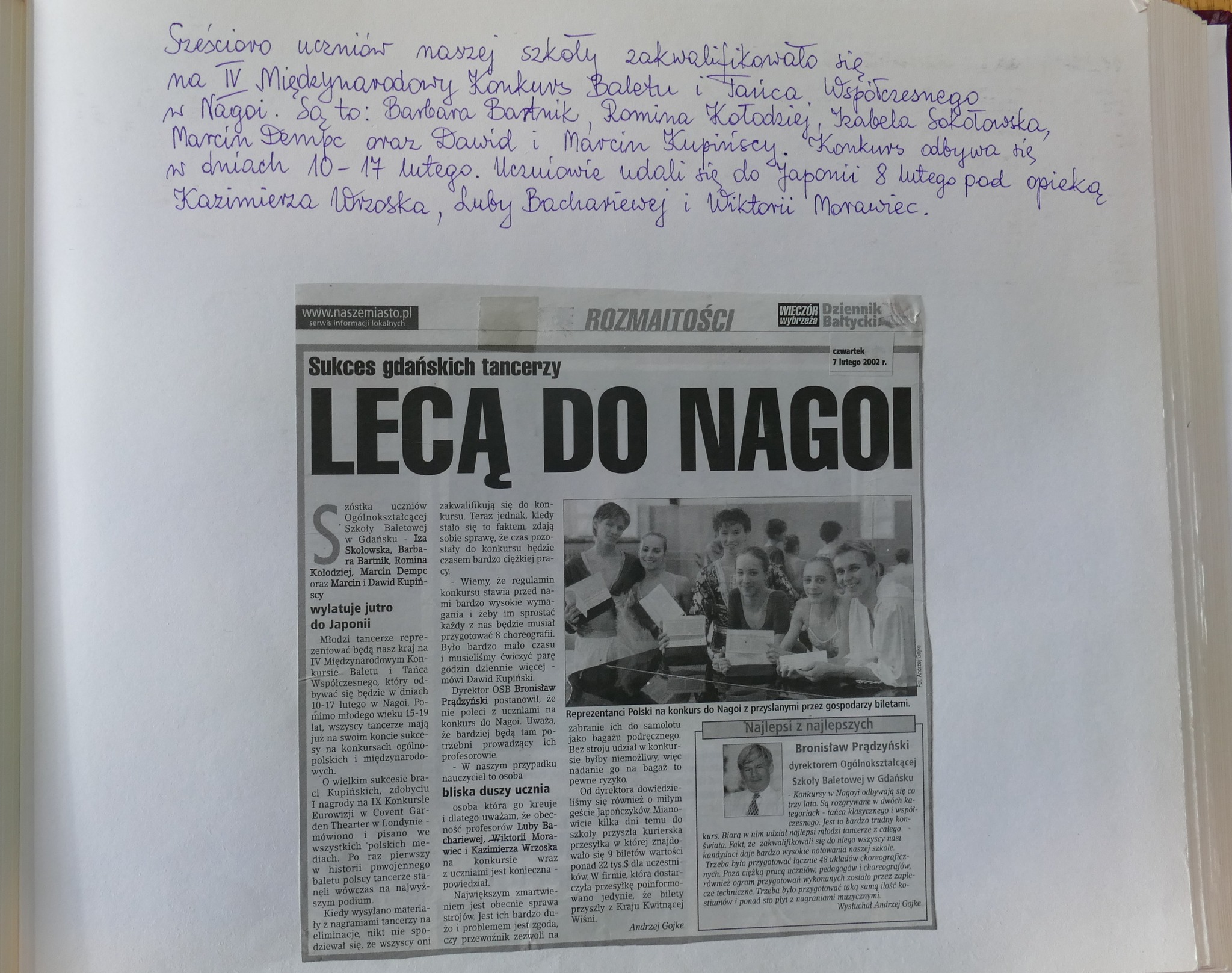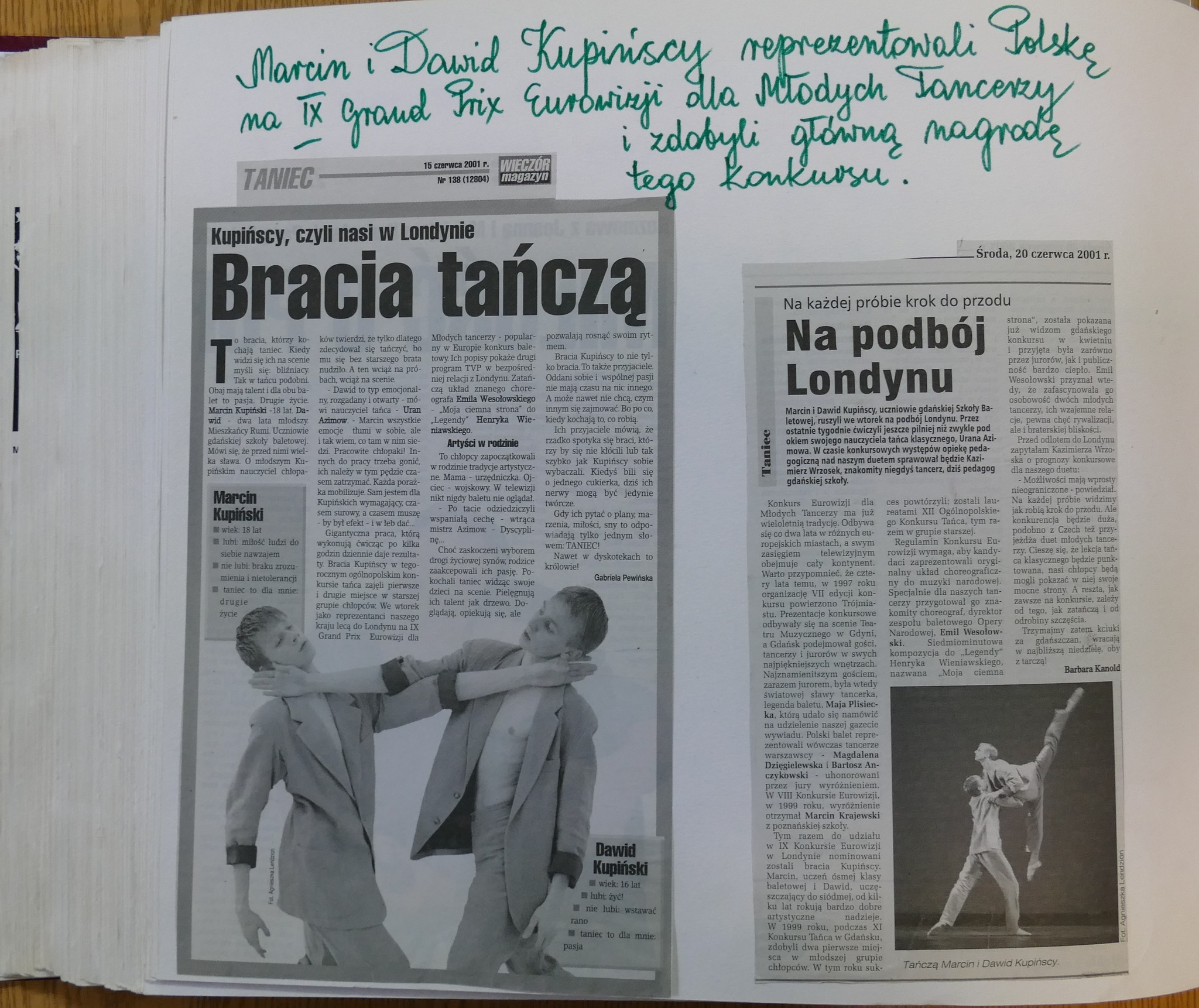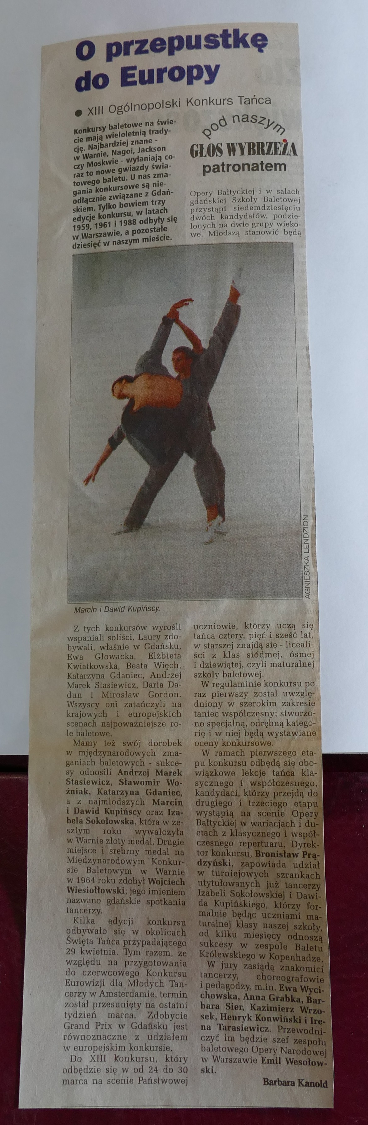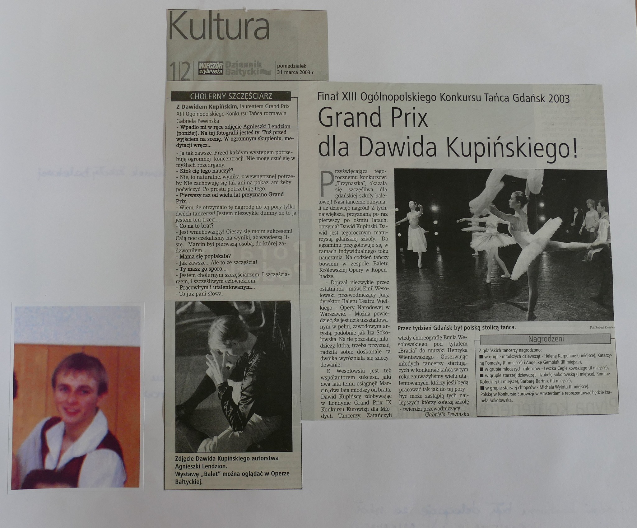 Tym, którzy uważnie śledzą, to co dzieje się podczas ogólnopolskich konkursów baletowych, dostrzegają znane sobie nazwiska. Powtarzają się one wśród laureatów kolejnych gdańskich konkursów tańca dla uczniów szkół baletowych: podczas XI Ogólnopolskiego Konkursu Tańca w 1999 roku Paulina Sałek wytańczyła I miejsce w grupie młodszej a Iza Sokołowska II miejsce. W tym samym konkursie w grupie młodszej chłopców Marcin Kupiński zdobył I miejsce, Jego brat Dawid – II, a kolega z klasy, Marcin Dempc – III miejsce. Po dwóch latach, w XII edycji gdańskiego konkursu, Iza znowu zajęła drugie miejsce, tylko w grupie starszej. Chłopcy również zmienili grupę wiekową, ale „podzielili się” nagrodami, podobnie, jak w 1999 roku. W kolejnym XIII Ogólnopolskim Konkursie Tańca, Gdańsk 2003 Izabela Sokołowska wytańczyła I miejsce w grupie starszej dziewcząt a Dawid Kupiński został – po Jacku Bresiu i Annie Sąsiadek – trzecim tancerzem z gdańskiej szkoły baletowej, który otrzymał Grand Prix konkursu.