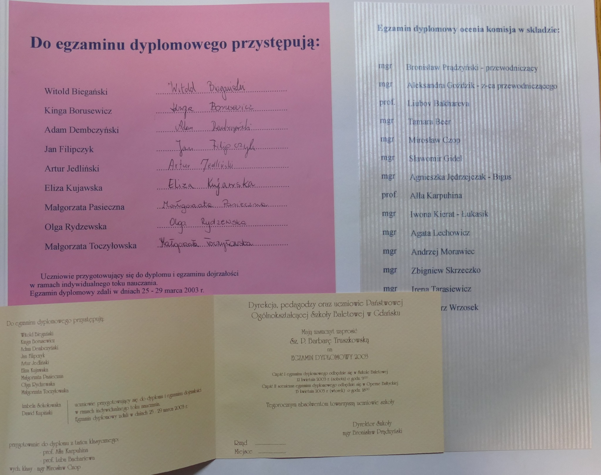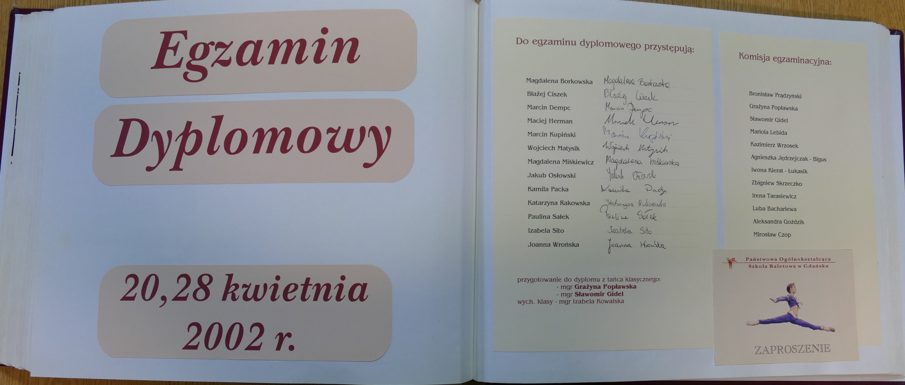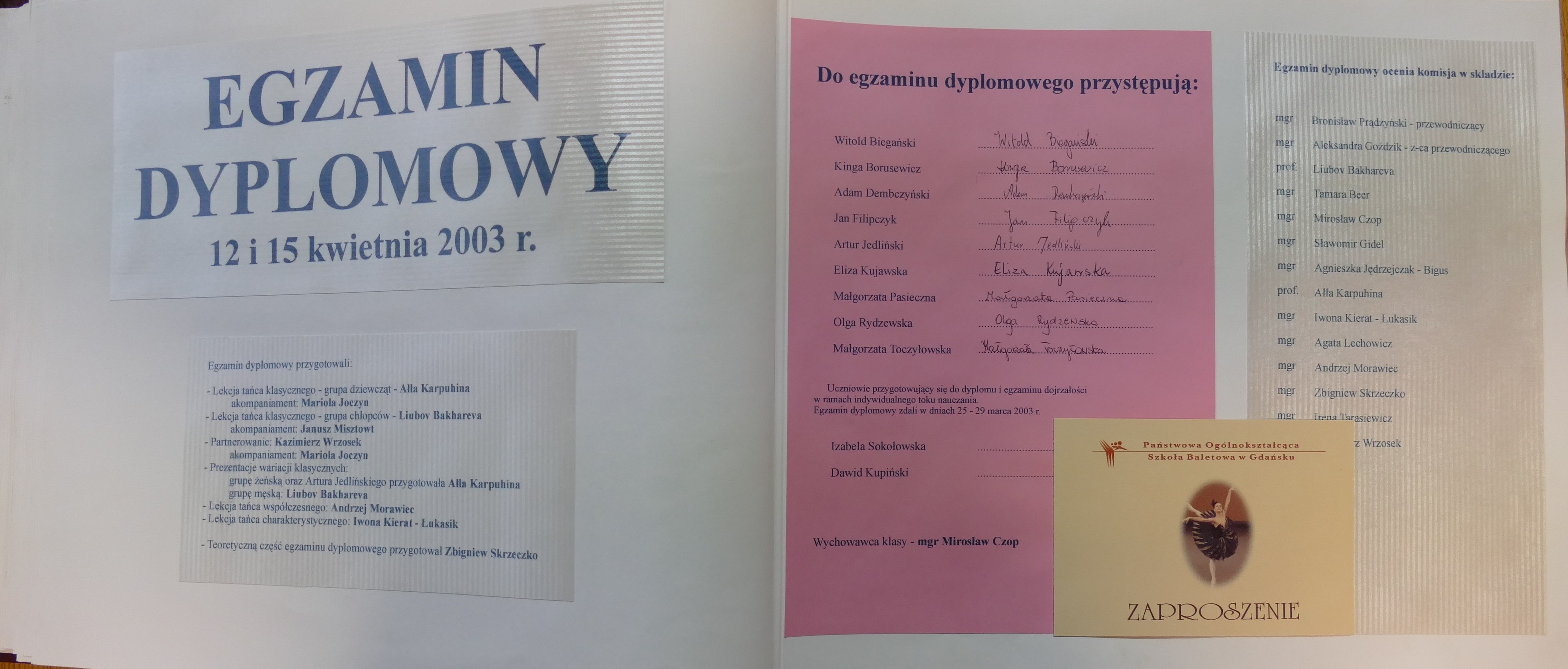 W roku 2002 i 2003 absolwentami naszej Baletówki zostali: