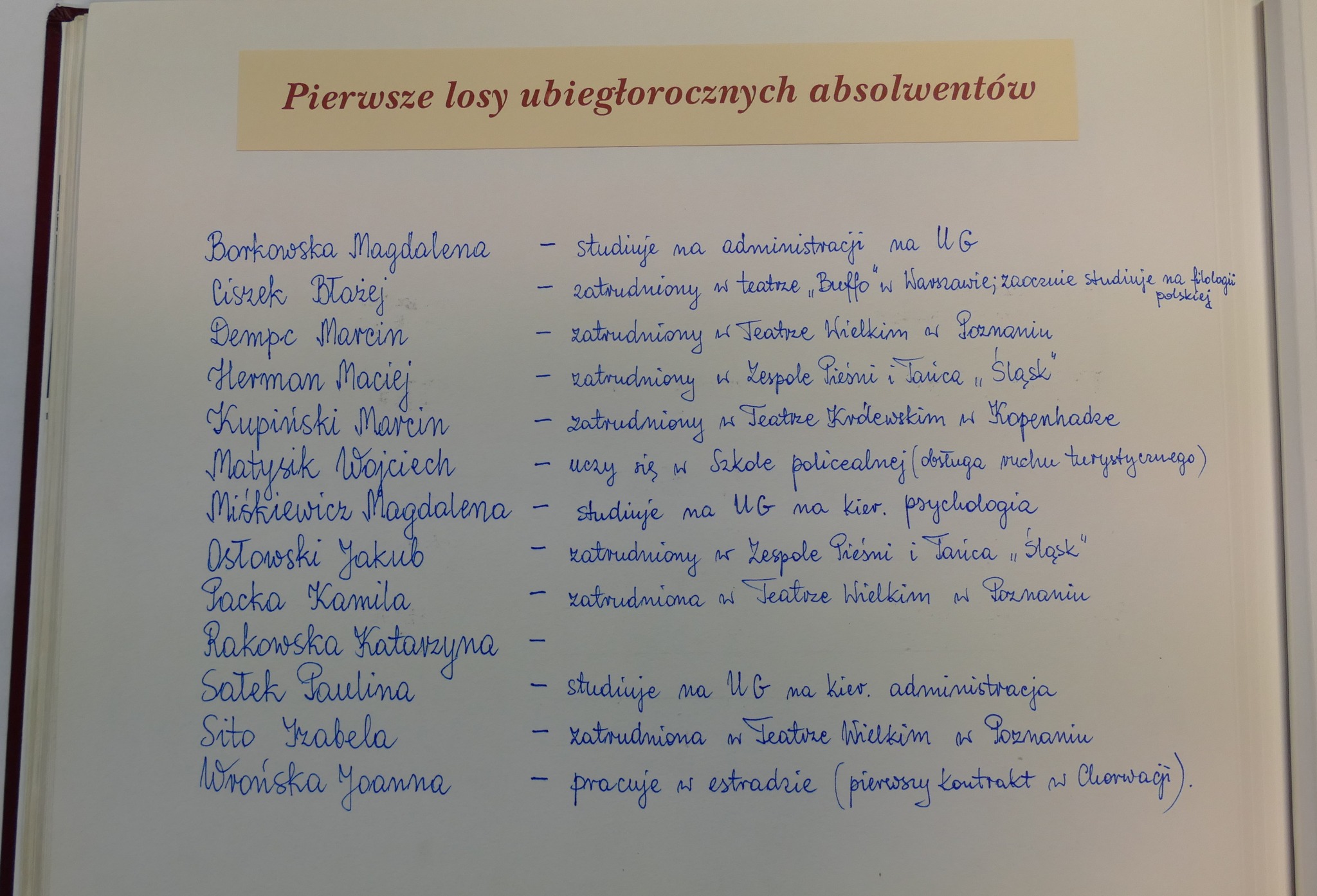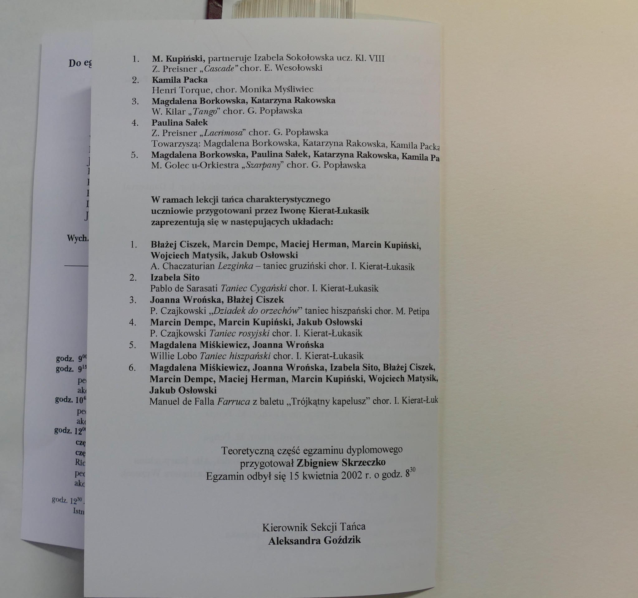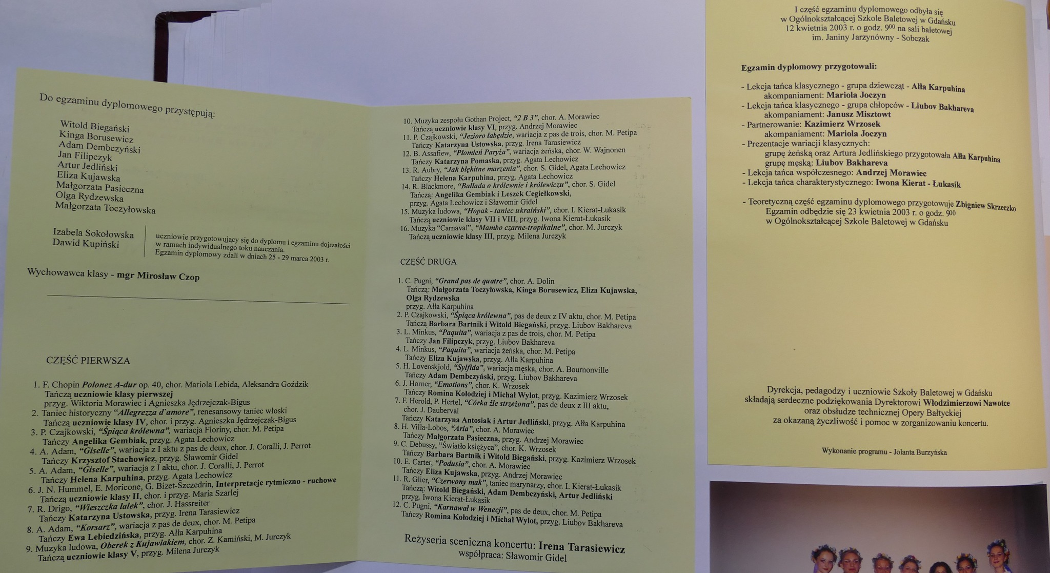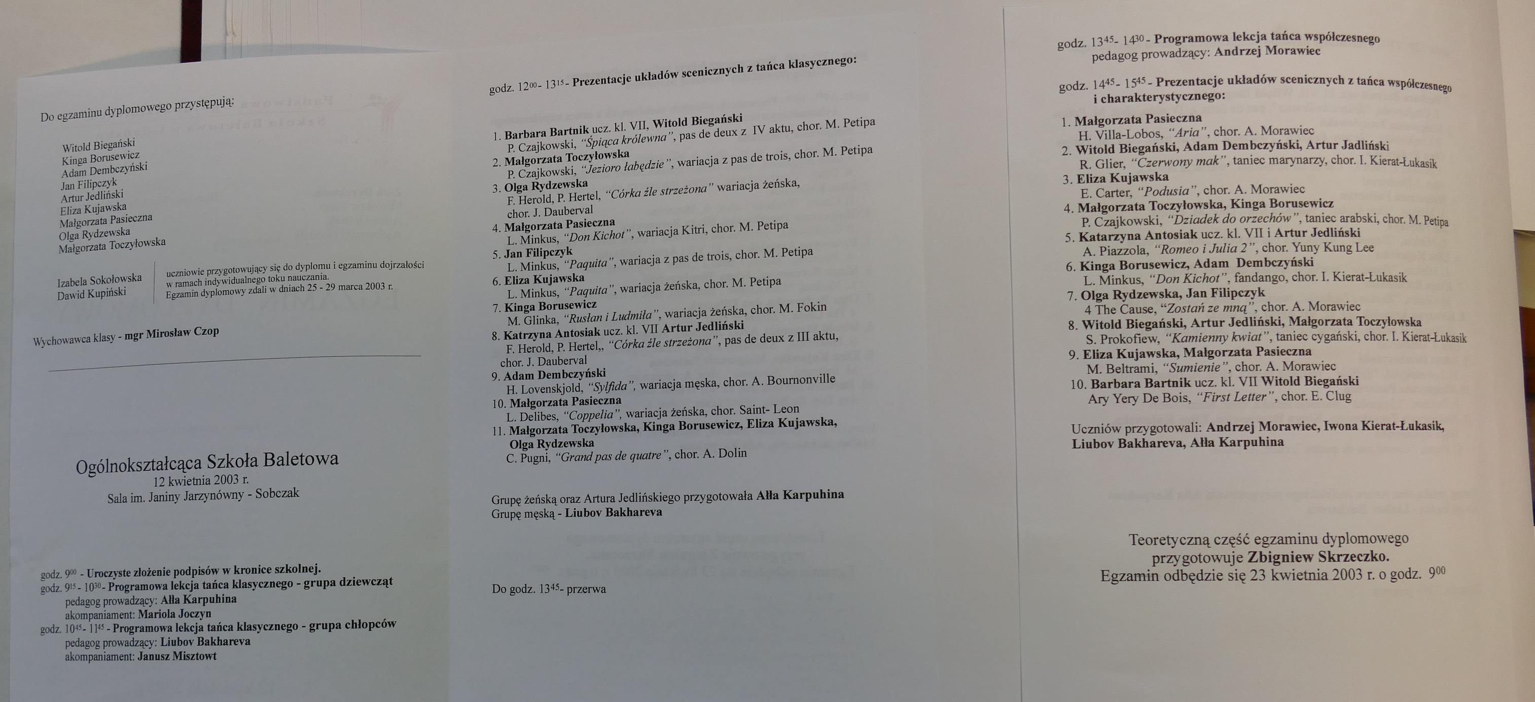 W roku 2002 i 2003 absolwentami naszej Baletówki zostali: