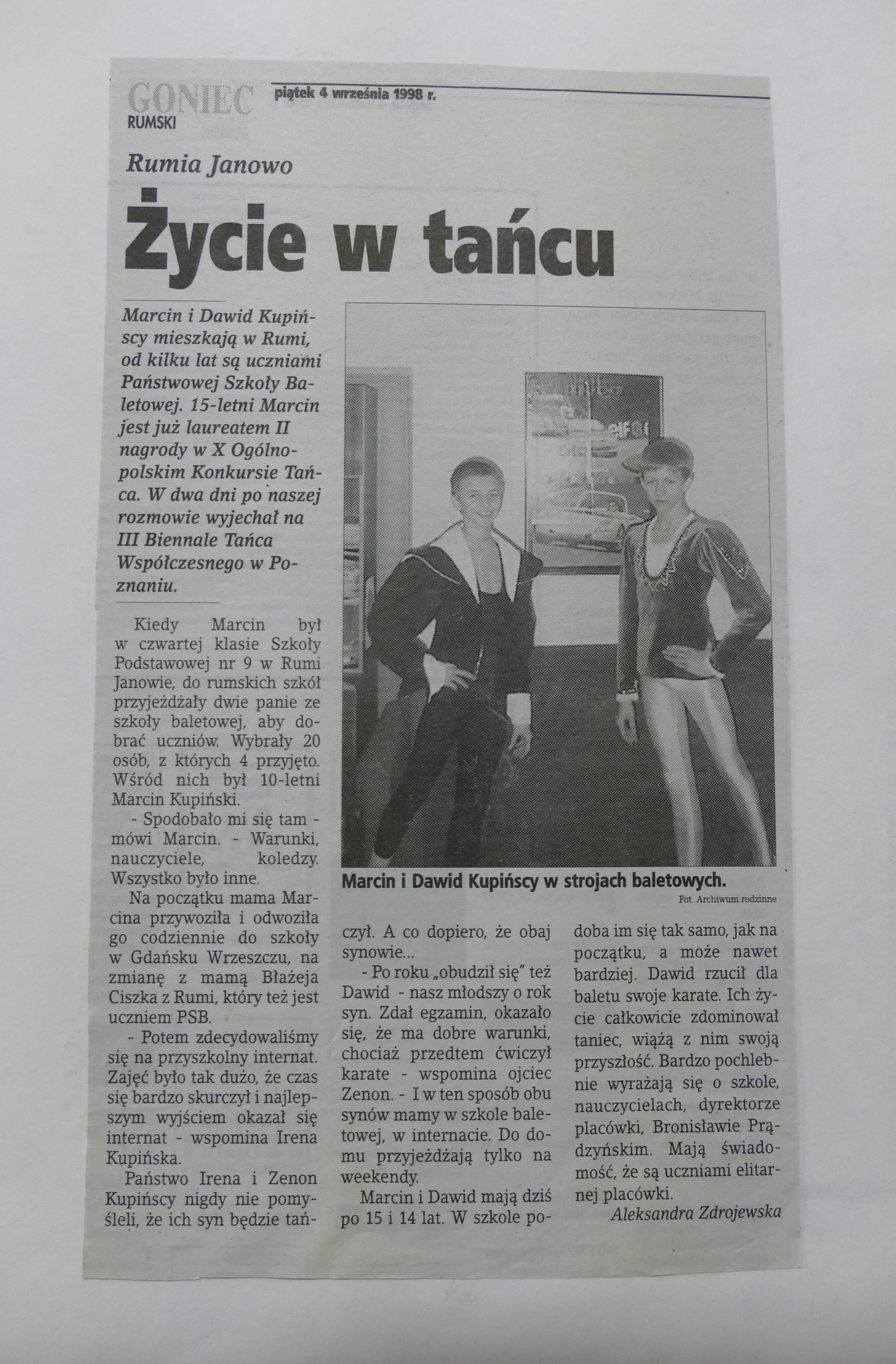 Bracia zdominowali konkurs w Szczecinie, który organizowała Fundacja Balet. W 2002 roku Marcin Kupiński został laureatem I Ogólnopolskiego Konkursu Baletowego i otrzymał tytuł Najlepszego Absolwenta Szkół Baletowych w Polsce. W kolejnym roku, podczas II konkursu w Szczecinie tytuł taki wytańczył Dawid Kupiński.