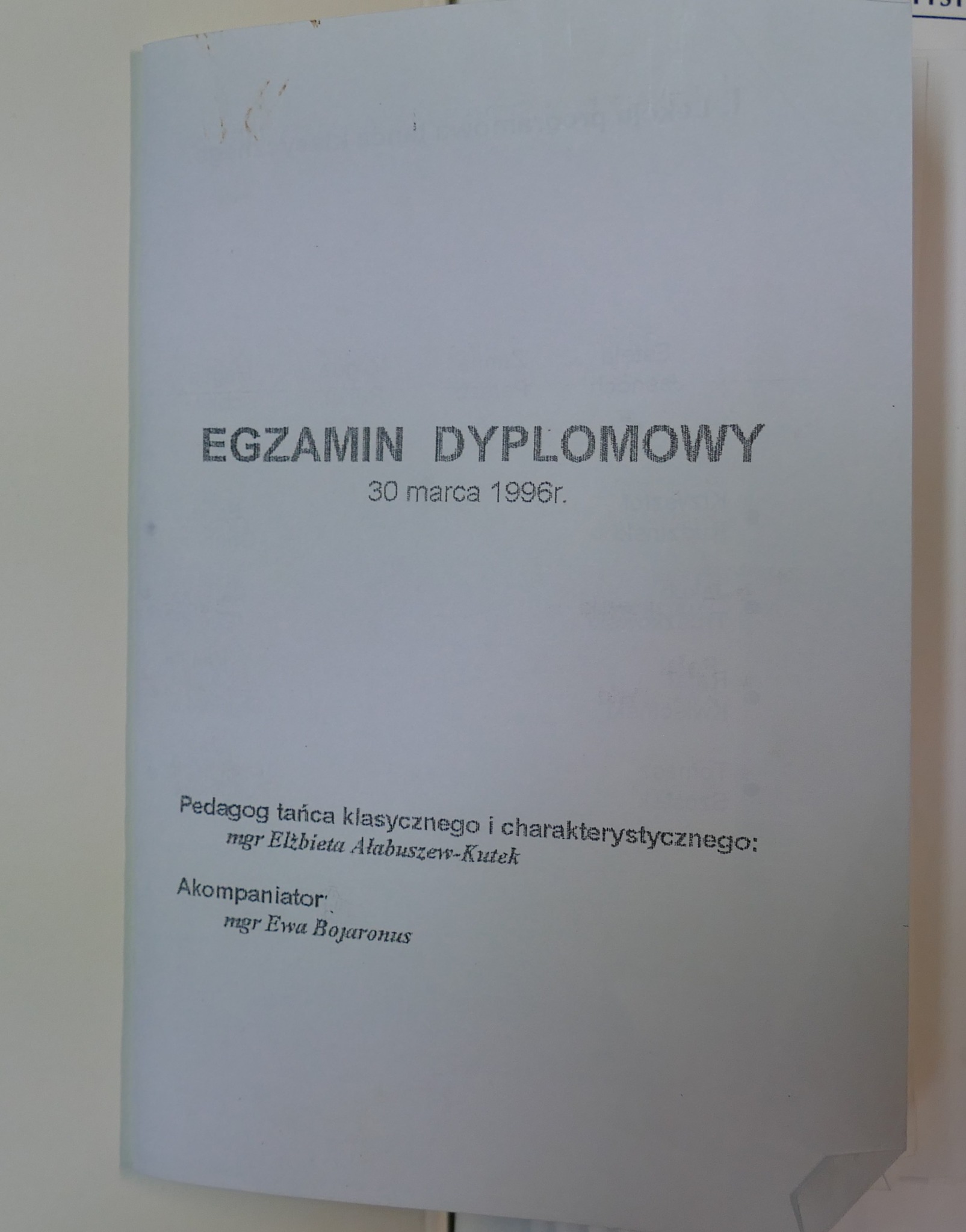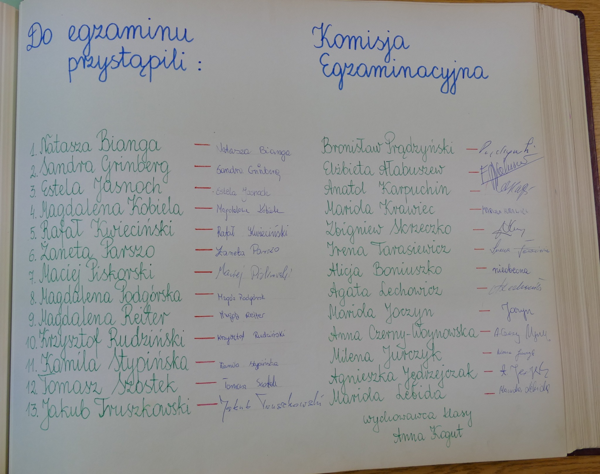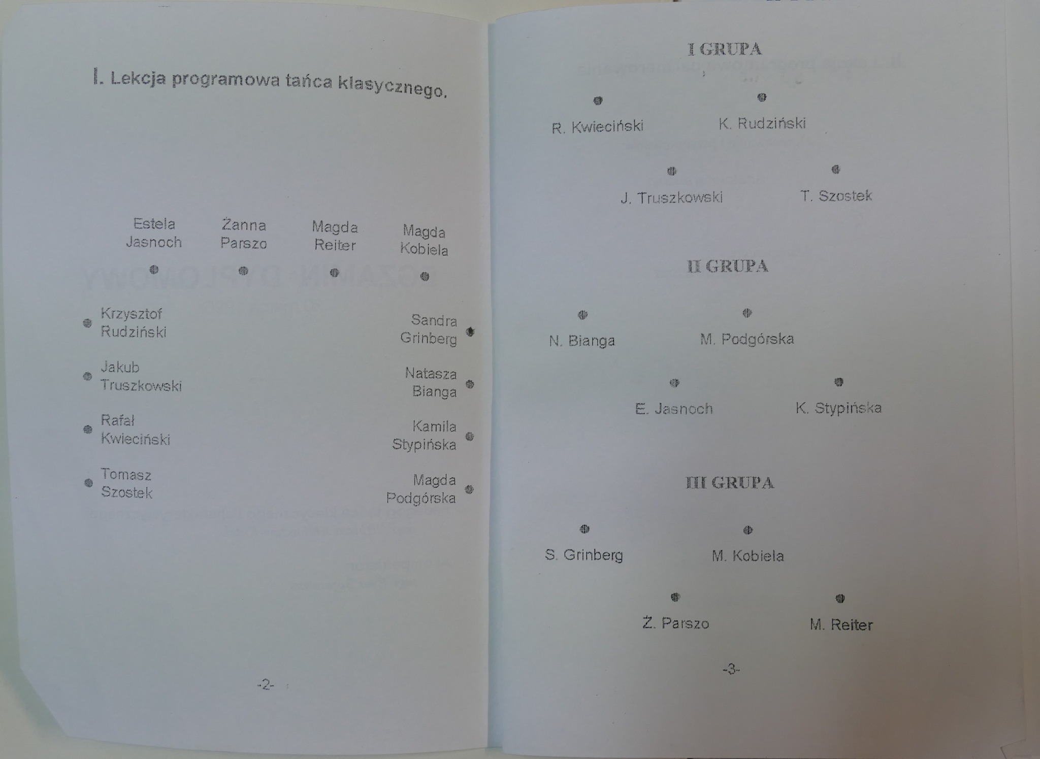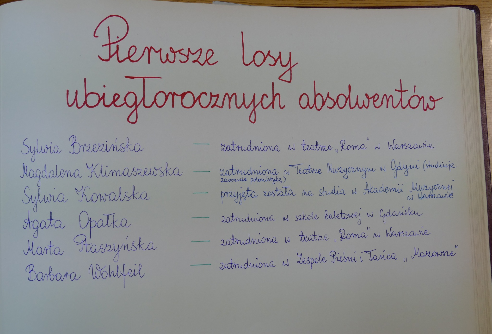 w 1996: Natasza Bianga, Sandra Grinberg, Estela Jasnoch, Magdalena Kobiela, Rafał Kwieciński, Żanna Parszo, Maciej Piskorski, Magdalena Podgórska, Magdalena Reiter, Krzysztof Rudziński, Kamila Stypińska, Tomasz Szóstek, Jakub Truszkowski