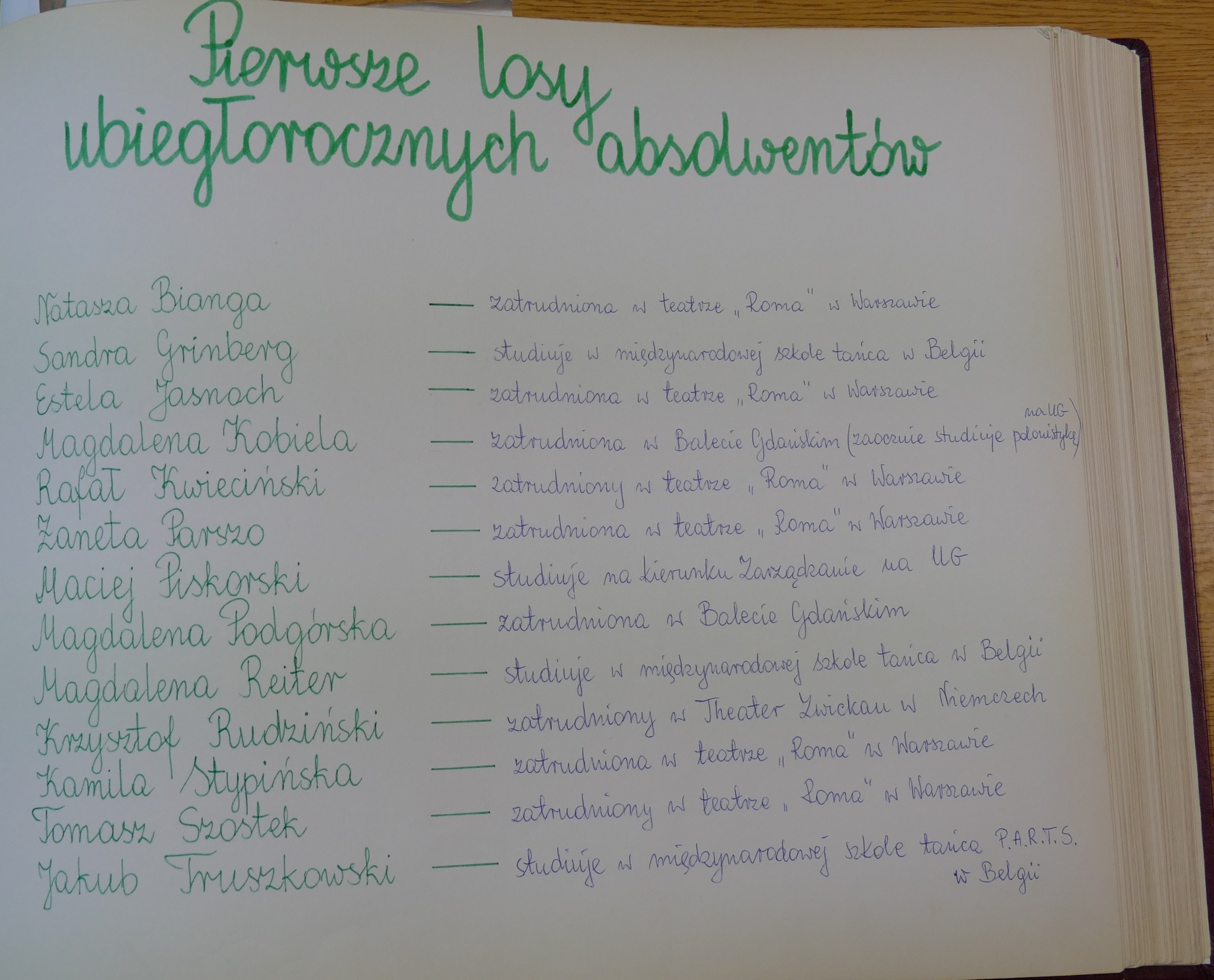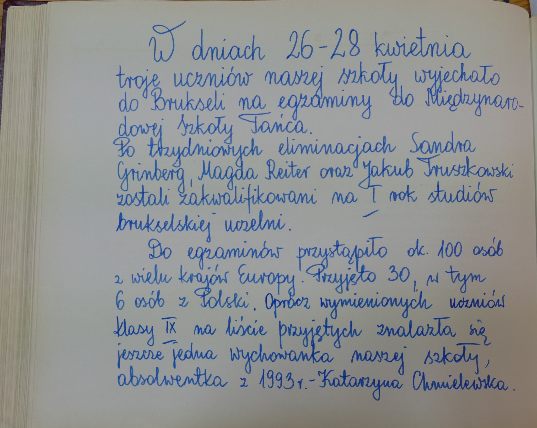 W kronice czytamy, że aż troje absolwentów z 1996 roku, po ukończeniu szkoły w Gdańsku dostały się do szkoły w Brukseli.