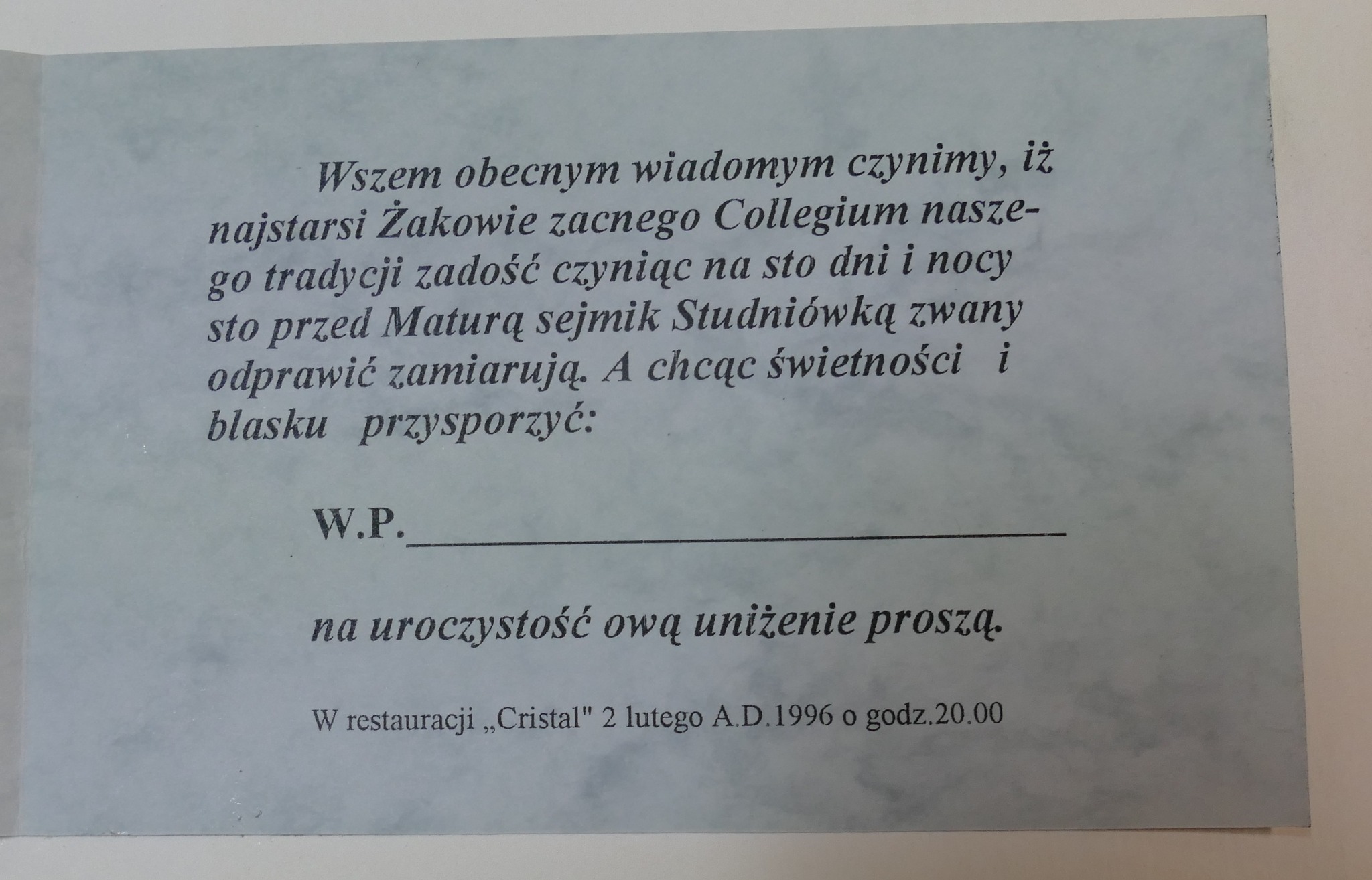 W galerii załączamy zdjęcia z naszych archiwów. Ale także ze zbiorów absolwentki z 1997, Marty Ptaszyńskiej. Bardzo dziękujemy za przesłanie fotografii. Może któraś z dziewcząt zdradzi, dlaczego miały studniówkę nie 100 dni przed maturą a rok i 100 dni przed egzaminem dojrzałości?