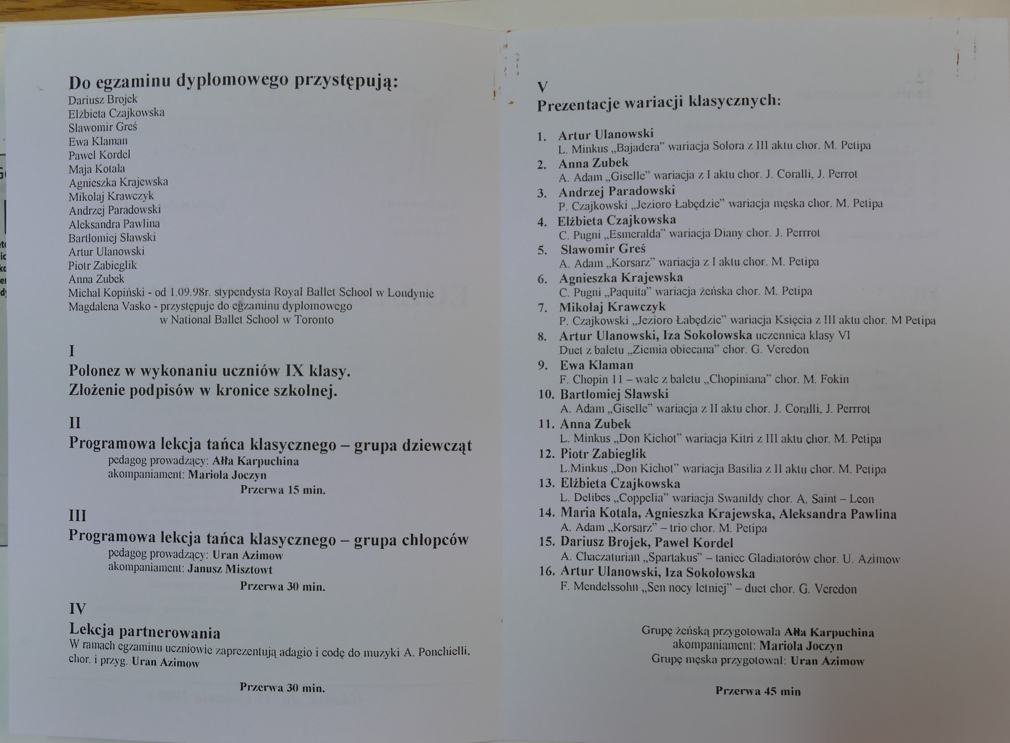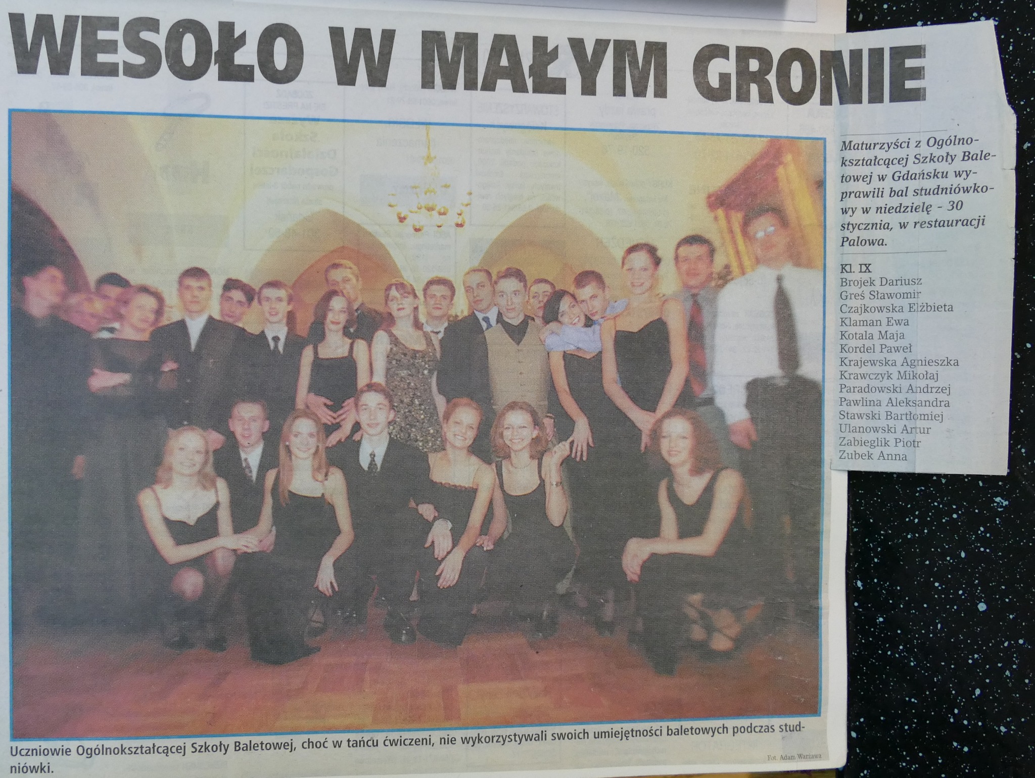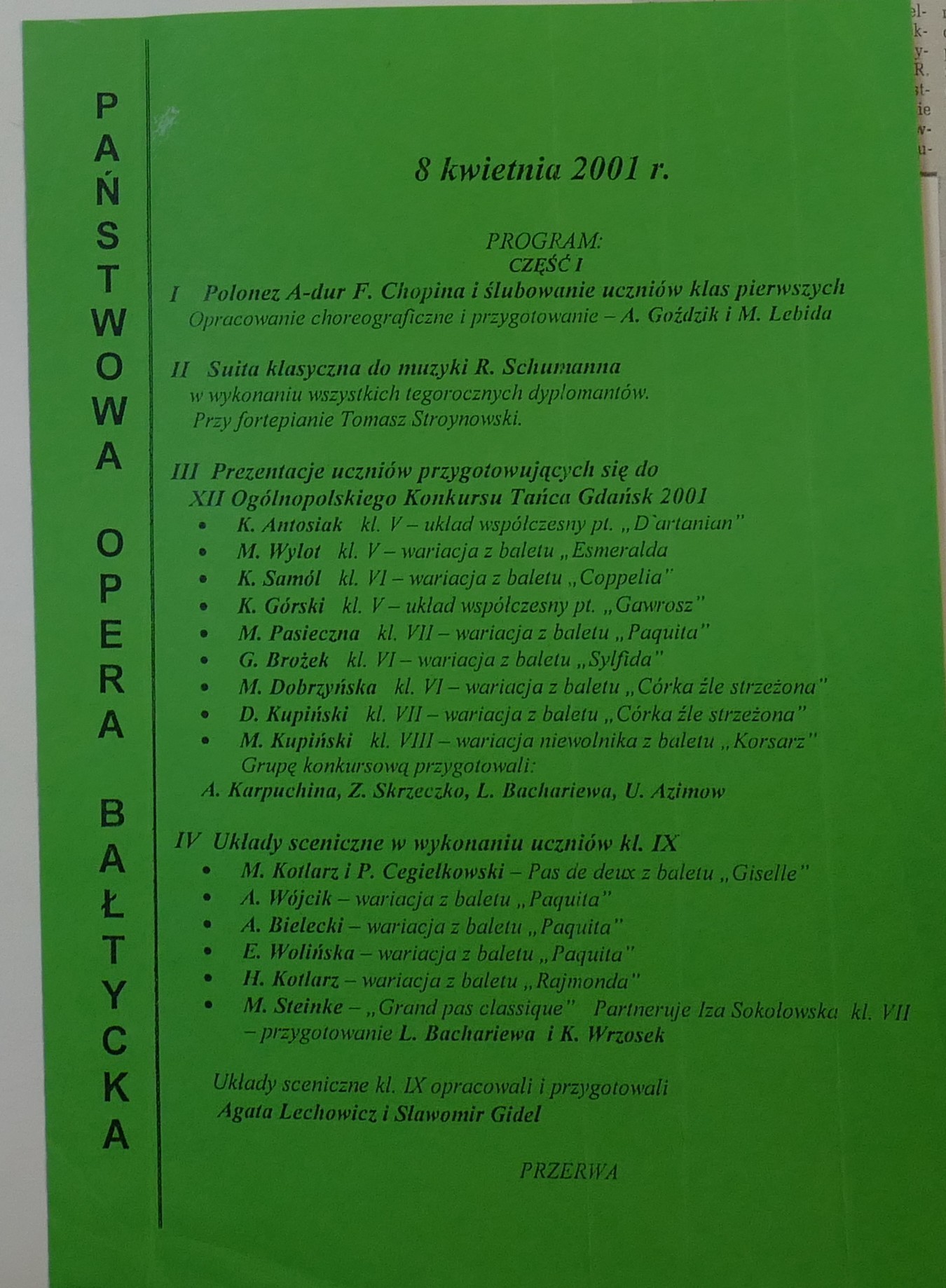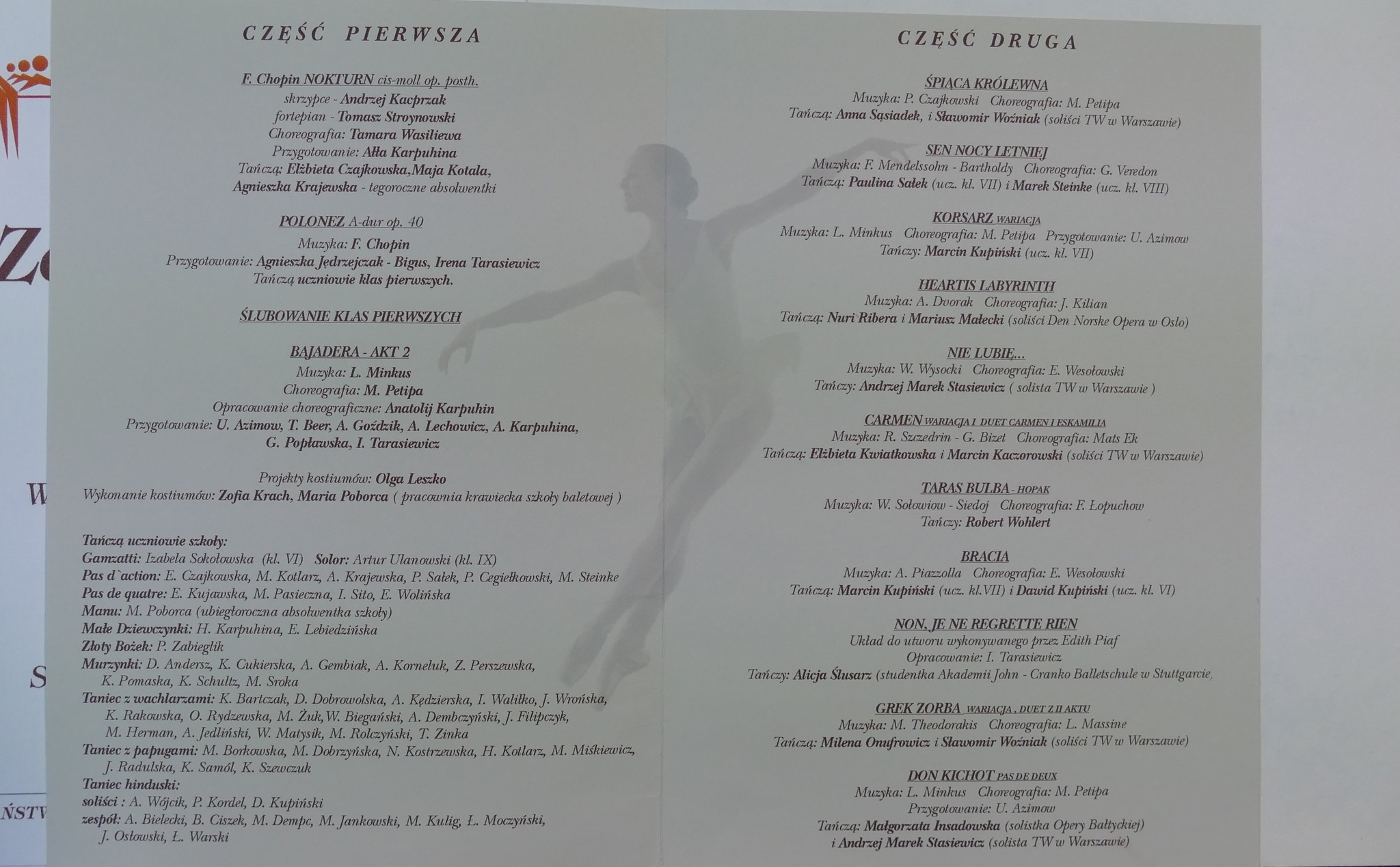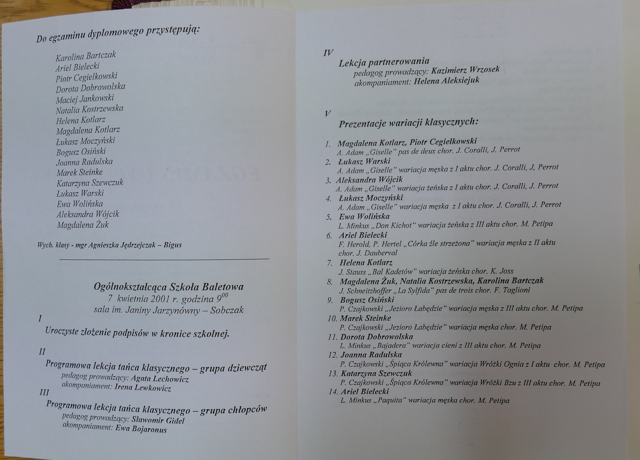 2001: Karolina Bartczak, Ariel Bielecki, Piotr Cegiełkowski, Dorota Dobrowolska, Maciej Jankowski, Natalia Kostrzewska, Helena Kotlarz, Magdalena Kotlarz, Łukasz Moczyński, Bogusz Osiński, Joanna Radulska, Marek Steinke, Katarzyna Szewczuk, Łukasz Warski, Ewa Wolińska, Aleksandra Wójcik, Magdalena Żuk.