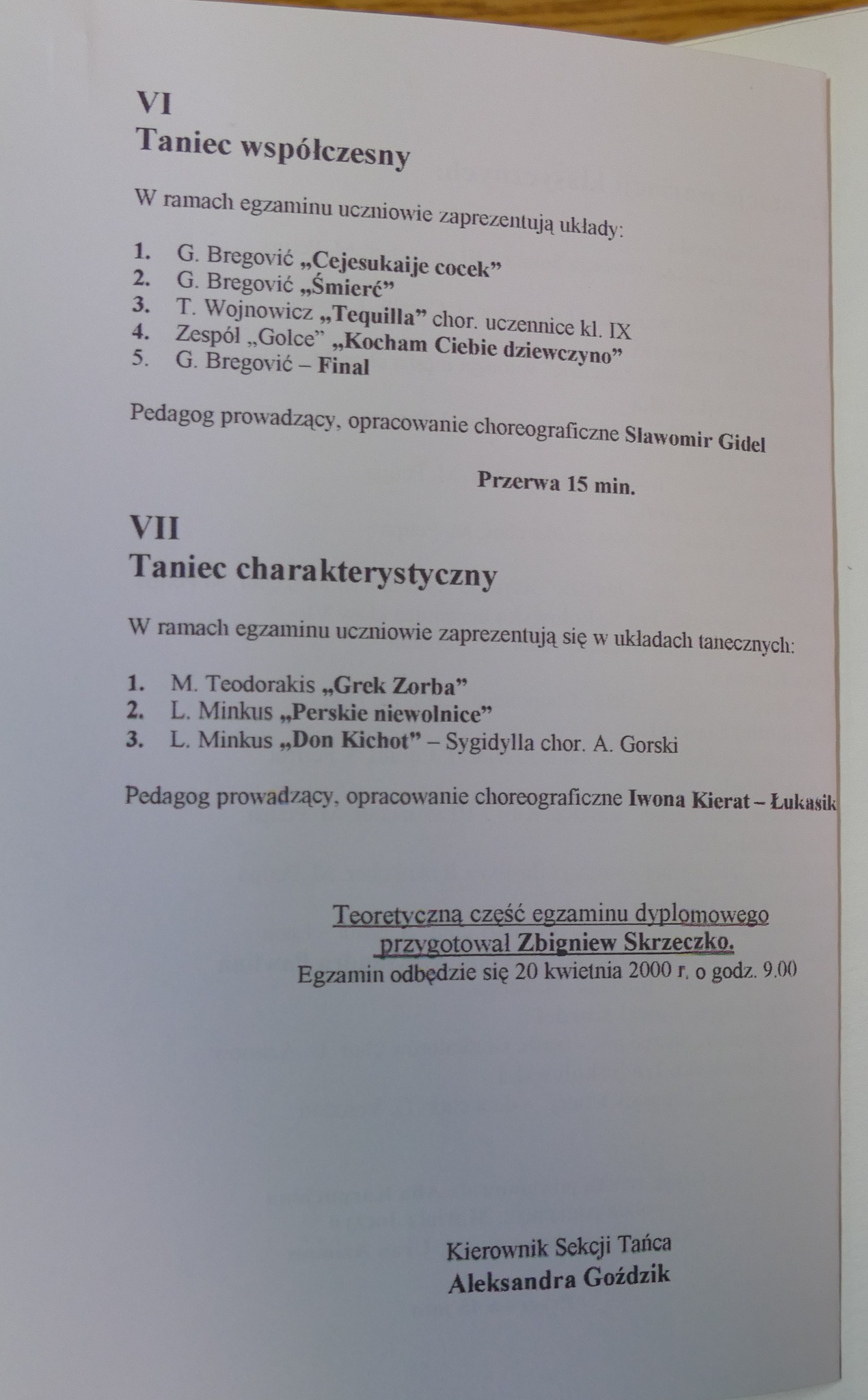 2000: Dariusz Brojek, Elżbieta Czajkowska, Sławomir Greś, Ewa Klaman, Paweł Kordel, Maria Kotala, Agnieszka Krajewska, Mikołaj Krawczyk, Andrzej Paradowski, Aleksandra Pawlina, Bartłomiej Stawski, Artur Ulanowski, Piotr Zabieglik, Anna Zubek