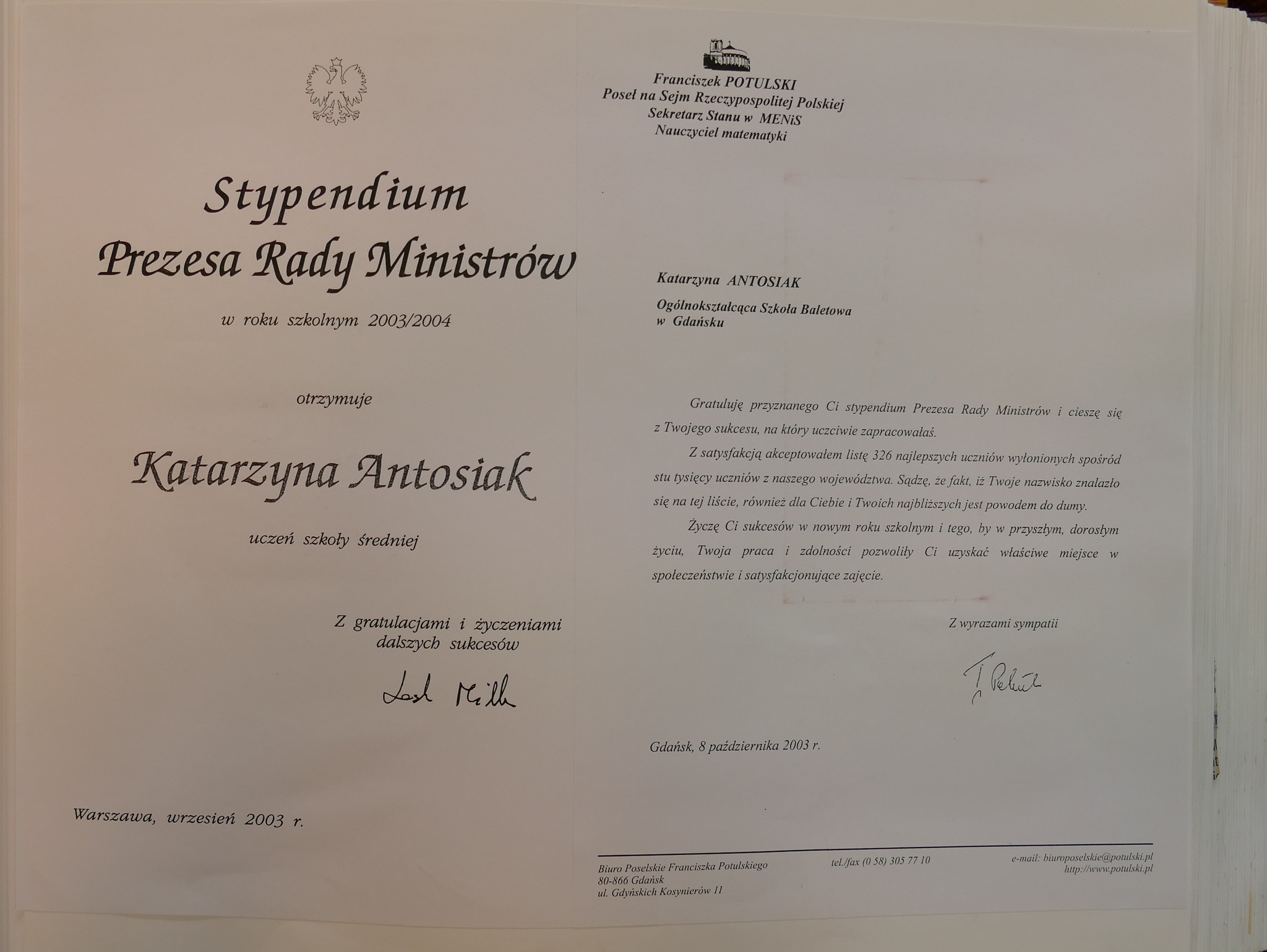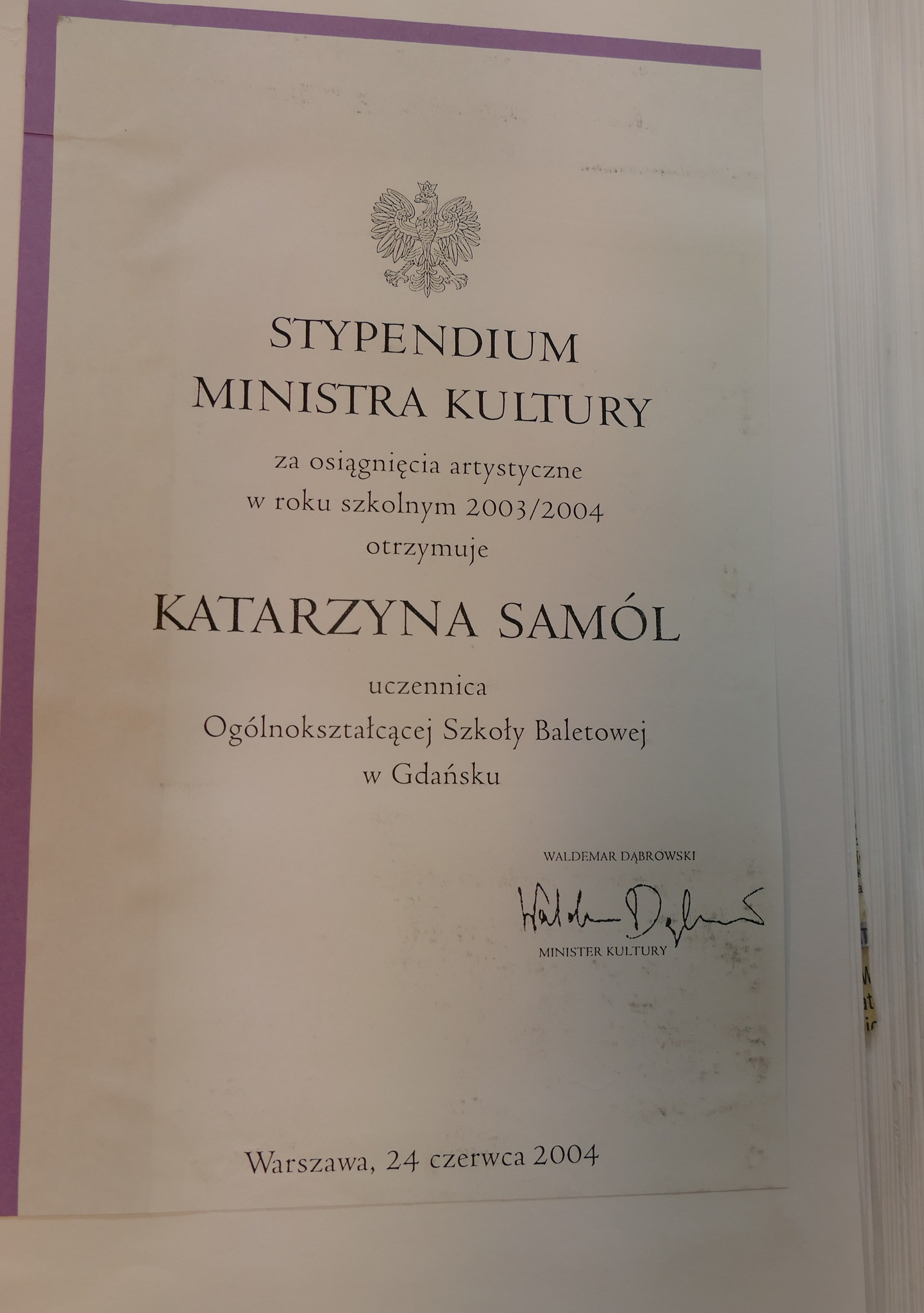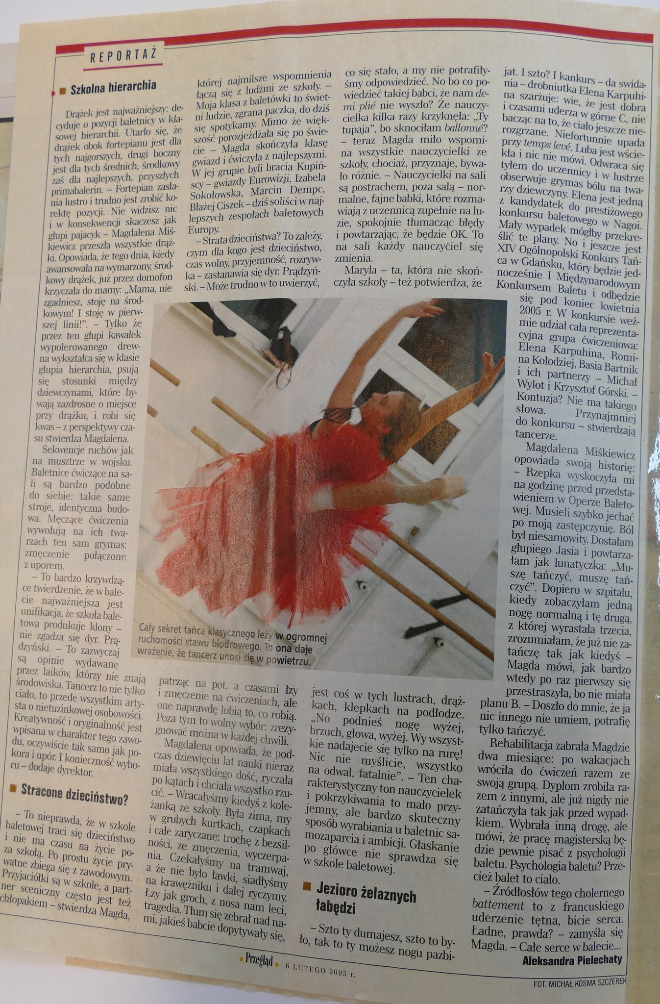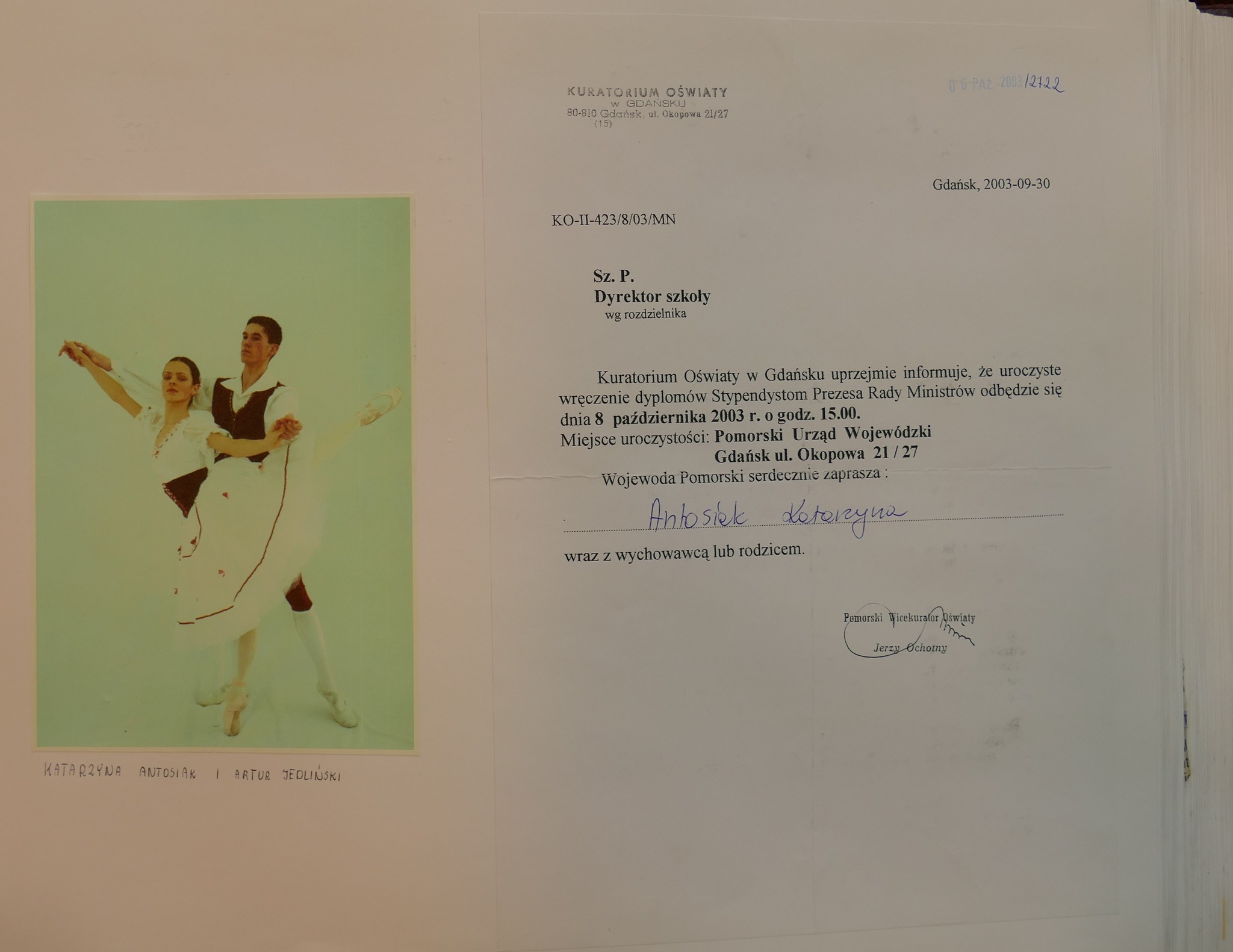 Na zdjęciach widzimy też Elenę Karpuhinę, o której szczegółowo pisać będziemy w przyszłym tygodniu. Teraz wspomnimy o Niej, bo wraz z Michałem Wylotem podczas XIV Ogólnopolskiego Konkursu Tańca w 2005 wytańczyli szczególne wyróżnienie – zostali nominowani do reprezentowana Polski podczas XI Międzynarodowego Konkursu Eurowizji dla Młodych Tancerzy. Jurorzy się nie pomylili dając szansę Elenie i Michałowi, bowiem w czerwcu 2005 podczas finału w Warszawie, młodzi gdańszczanie świetnie się zaprezentowali w wytańczyli II nagrodę.