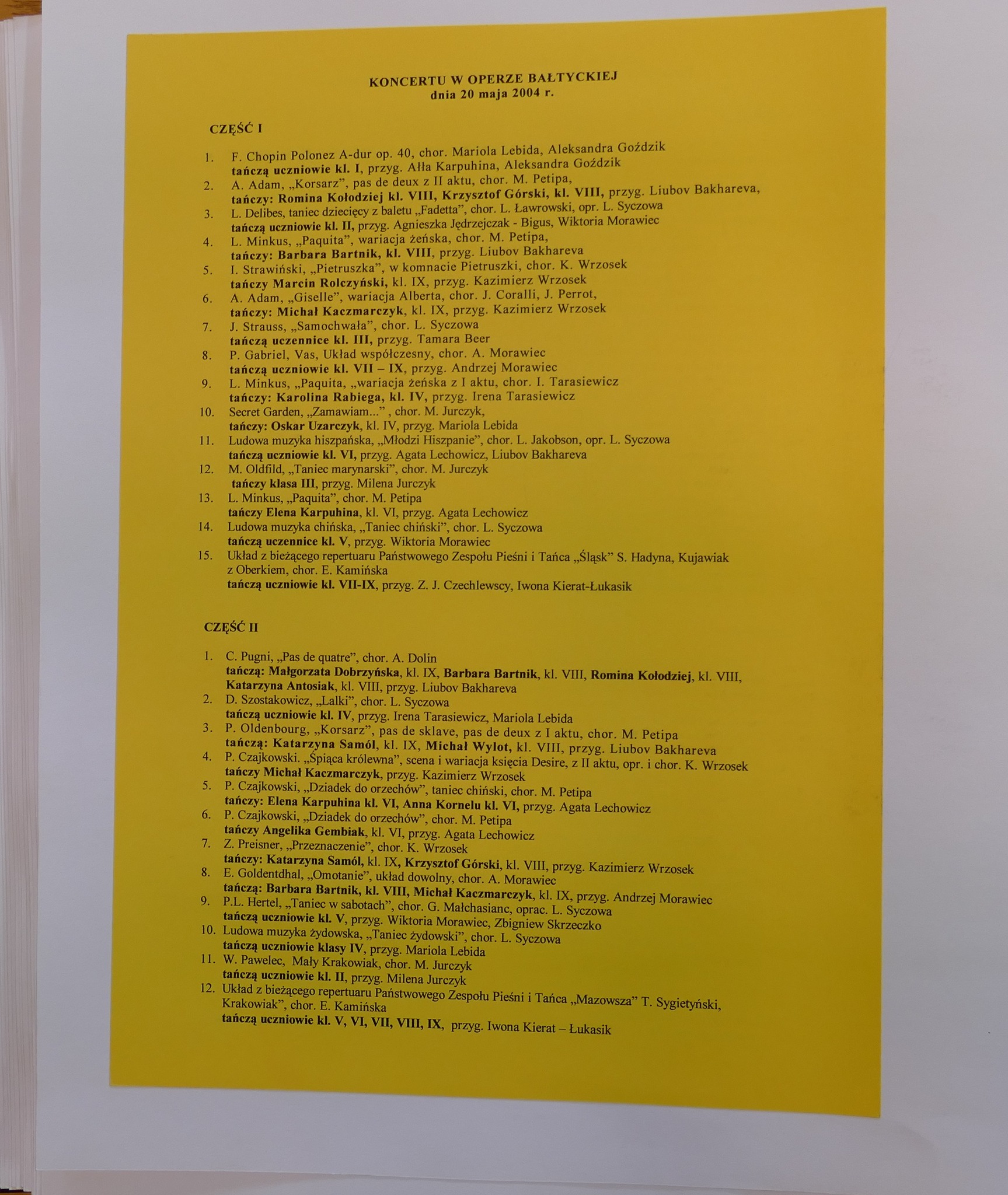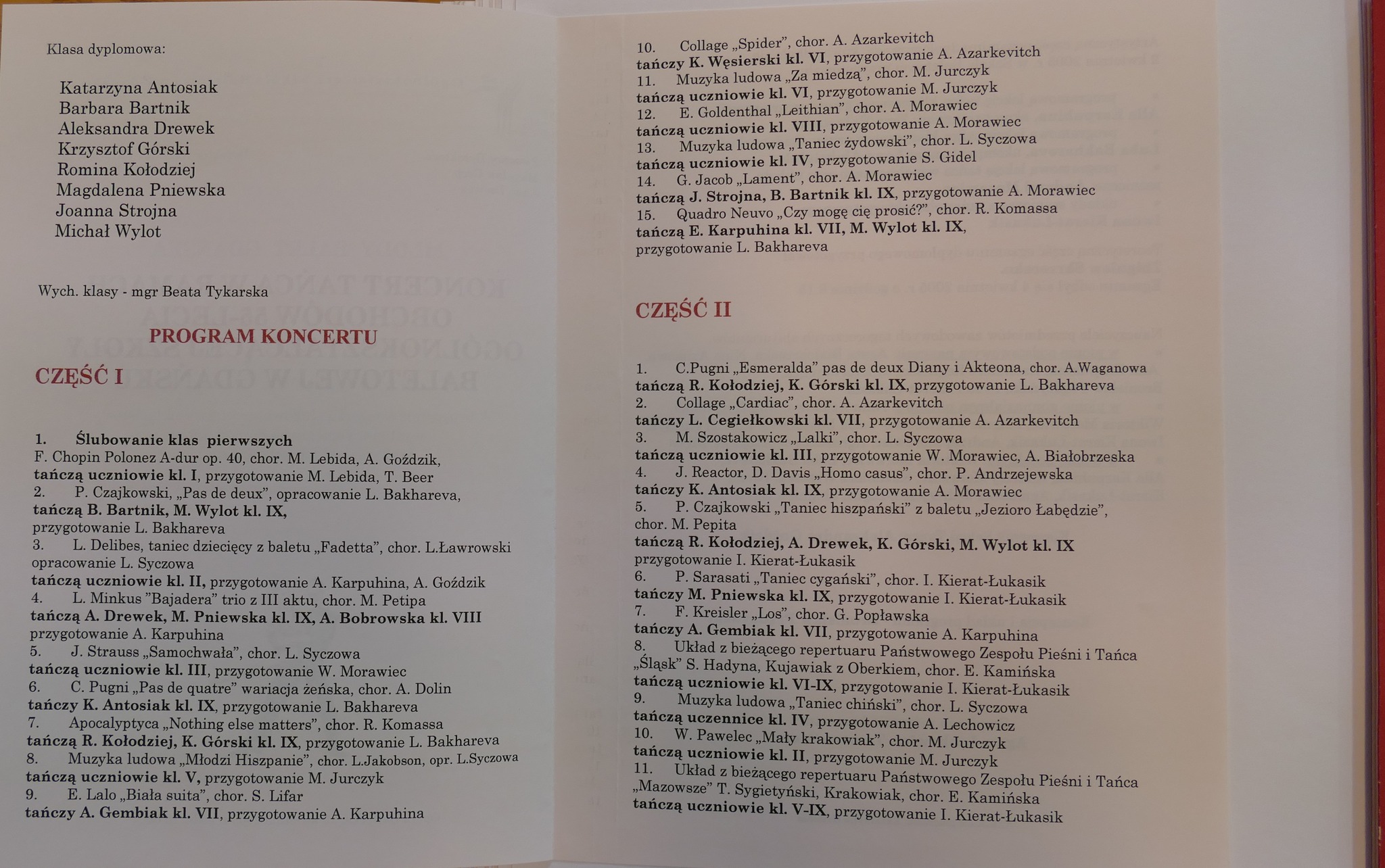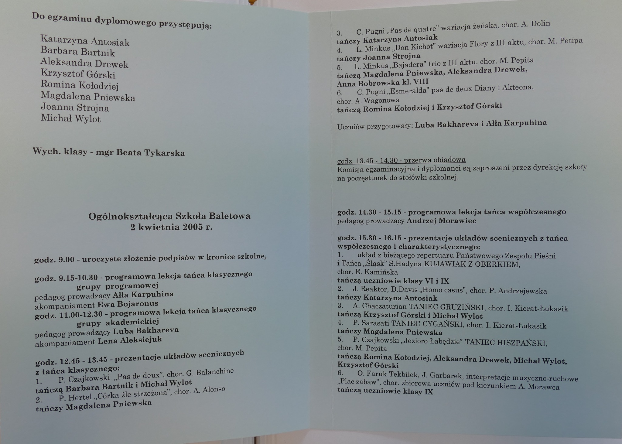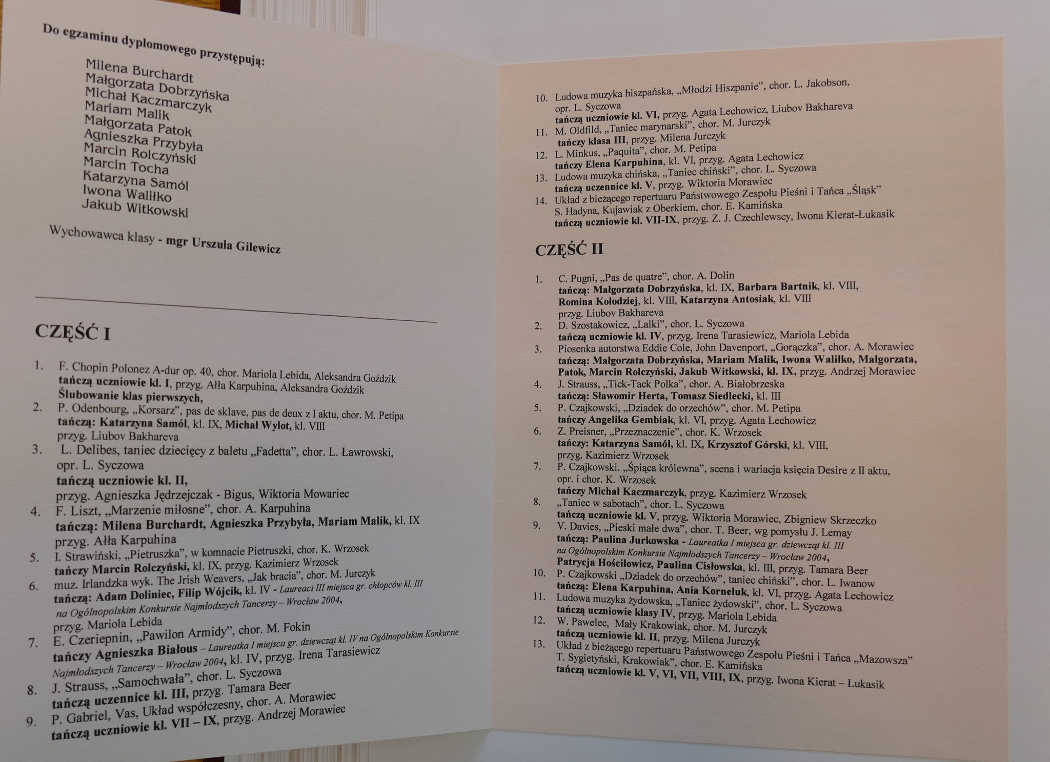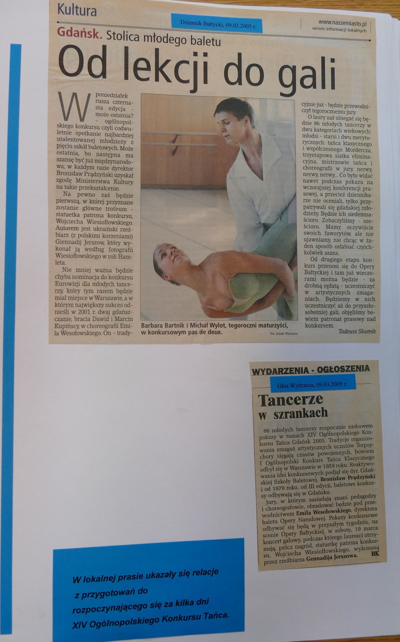 Wśród absolwentów z lat 2004, 2005 mamy wielu uczestników i laureatów konkursów ogólnopolskich. Podczas XIII Ogólnopolskiego Konkursu Tańca w 2003 roku Romina Kołodziej, Barbara Bartnik i Michał Wylot wytańczyli nagrody w grupie starszej. Po dwóch latach, podczas XIV edycji konkursu w grupie starszej Basia i Michał ponownie stanęli na podium. Dołączył do nich Krzysztof Górski oraz Kasia Antosiak w kategorii tańca współczesnego. Należy zaznaczyć, że na początku lat dwutysięcznych nie było jeszcze grupy średniej w kategorii tańca klasycznego a kategoria tańca współczesnego nie była podzielona na dwie grupy wiekowe.