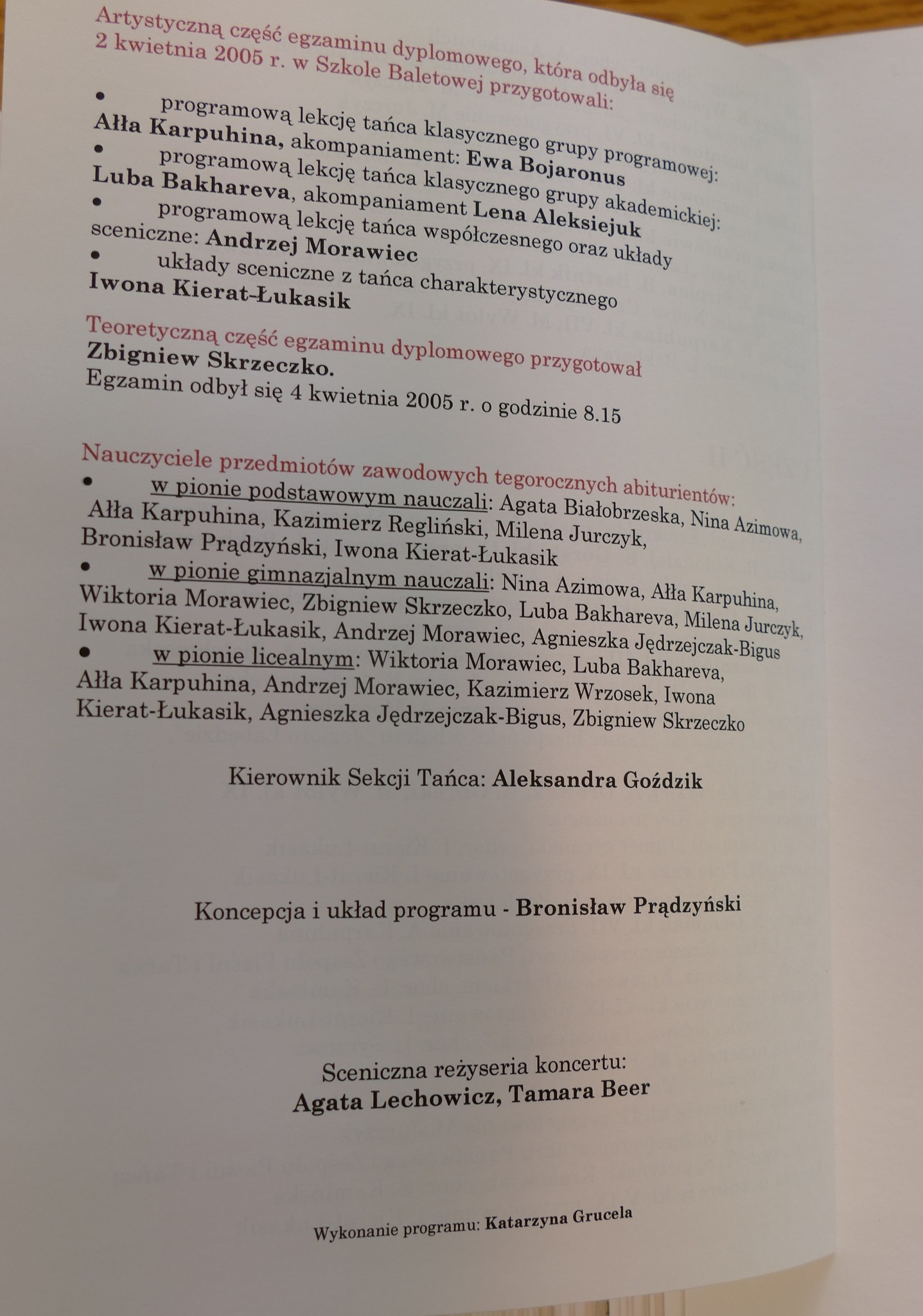 2005: Katarzyna Antosiak, Barbara Bartnik, Aleksandra Drewek, Krzysztof Górski, Romina Kołodziej, Magdalena Pniewska, Joanna Strojna, Michał Wylot