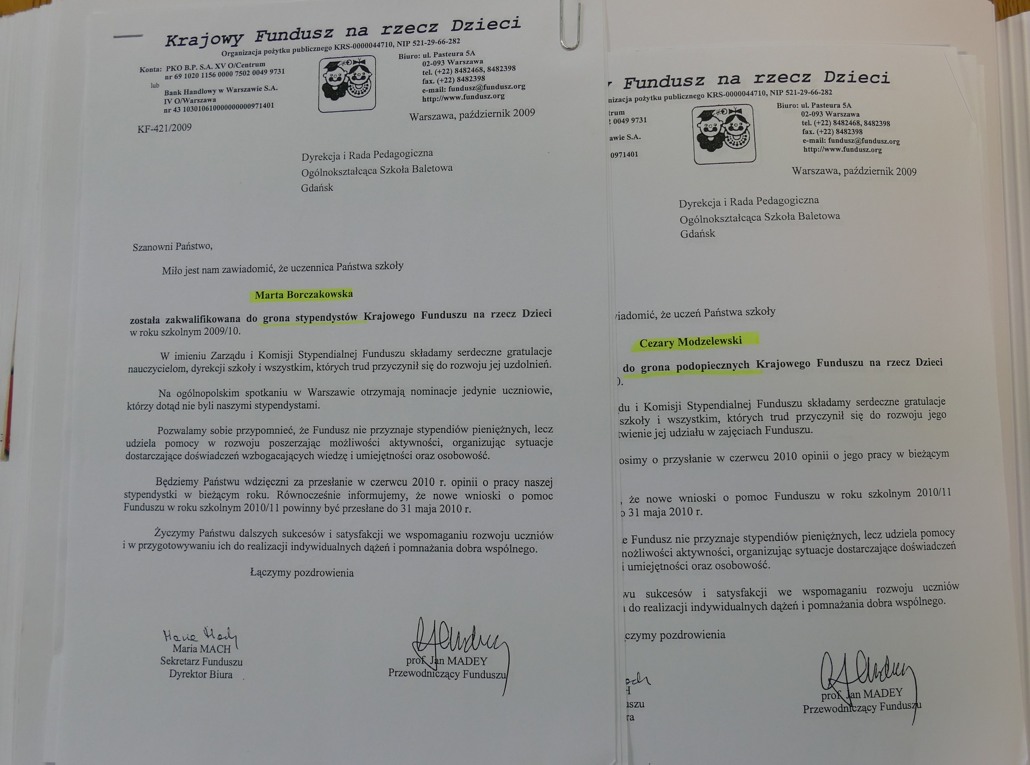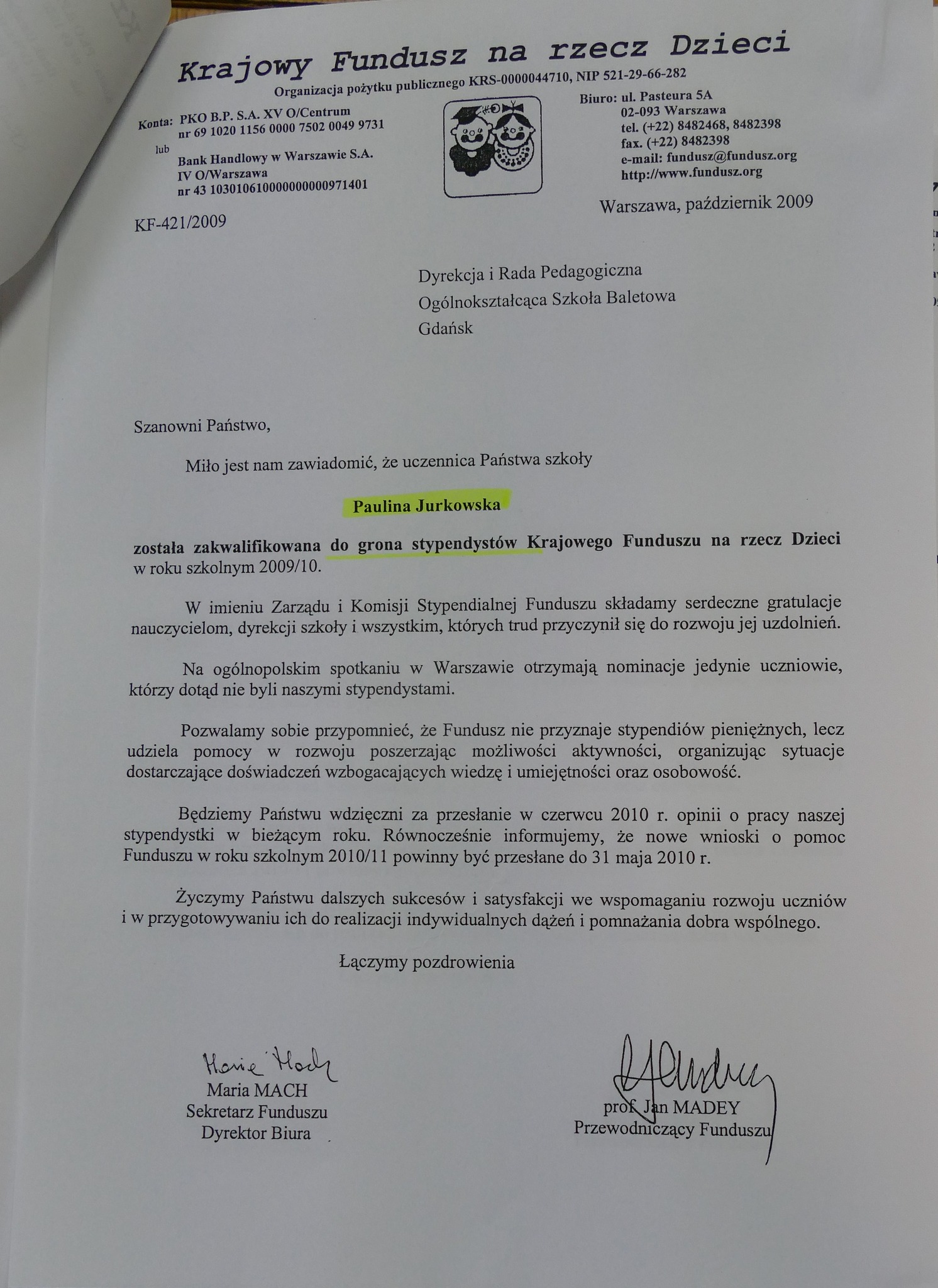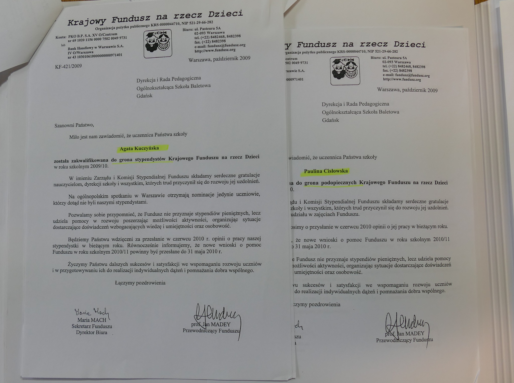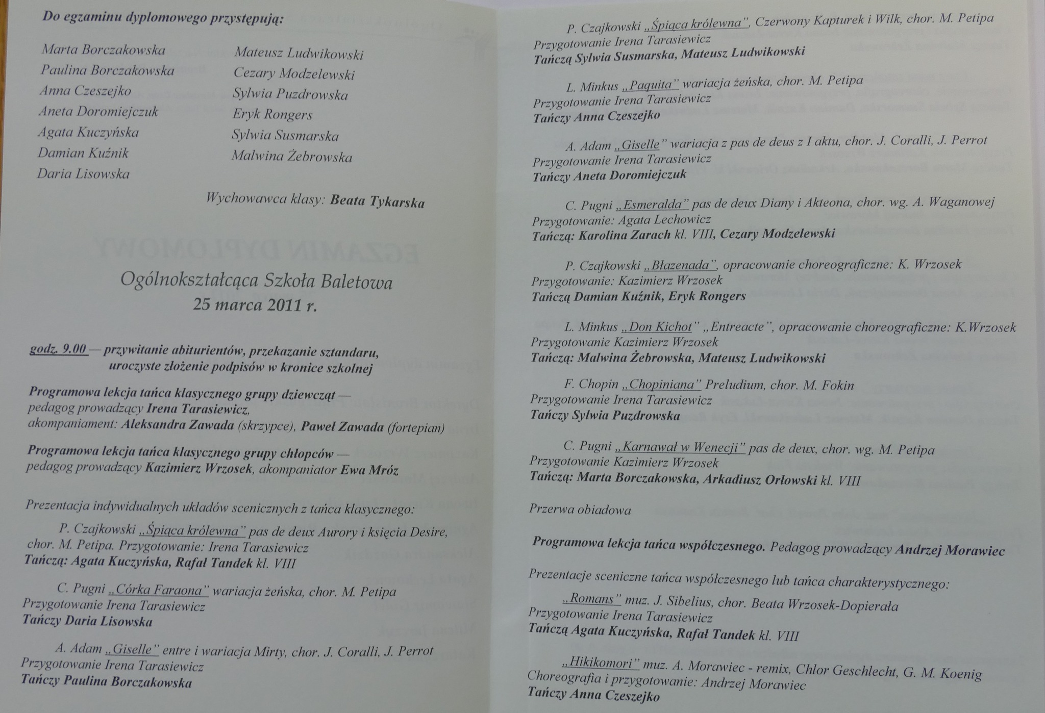 Wśród absolwentów wyżej wymienionych roczników są laureaci ogólnopolskich konkursów tańca z lat 2007 i 2009 (Paulina Cisłowska, Paulina Jurkowska, Marta Borczakowska, Agata Kuczyńska, Cezary Modzelewski). Wielu z nich wciąż tańczy: Ania Czeszejko jest solistką a Paulina Jurkowska koryfejką w Polskim Balecie Narodowym w Warszawie. Paulina Kroszel jest tancerką w Teatrze Muzycznym w Gdyni. A Grzegorz Mołoniewicz i Cezary Modzelewski osiedlili się za granicą… Zresztą Cezary przyjechał kilka lat temu do Gdańska, odwiedził szkołę i opowiedział swoim młodszym koleżankom i kolegom o tym, jak mieszka się w Japonii i jak inaczej – niż w Europie - wygląda praca w tamtejszych teatrach.