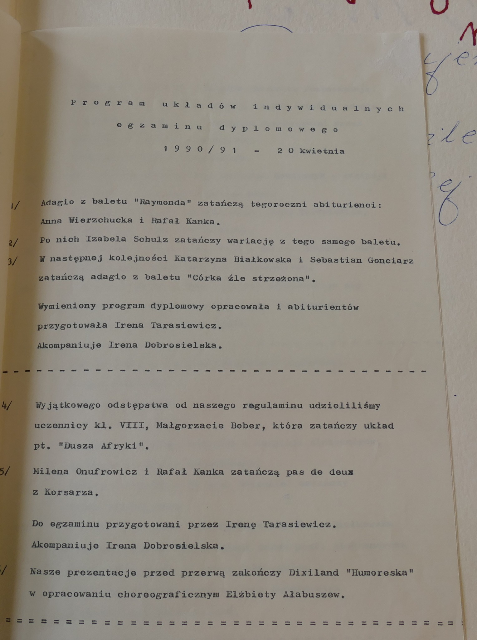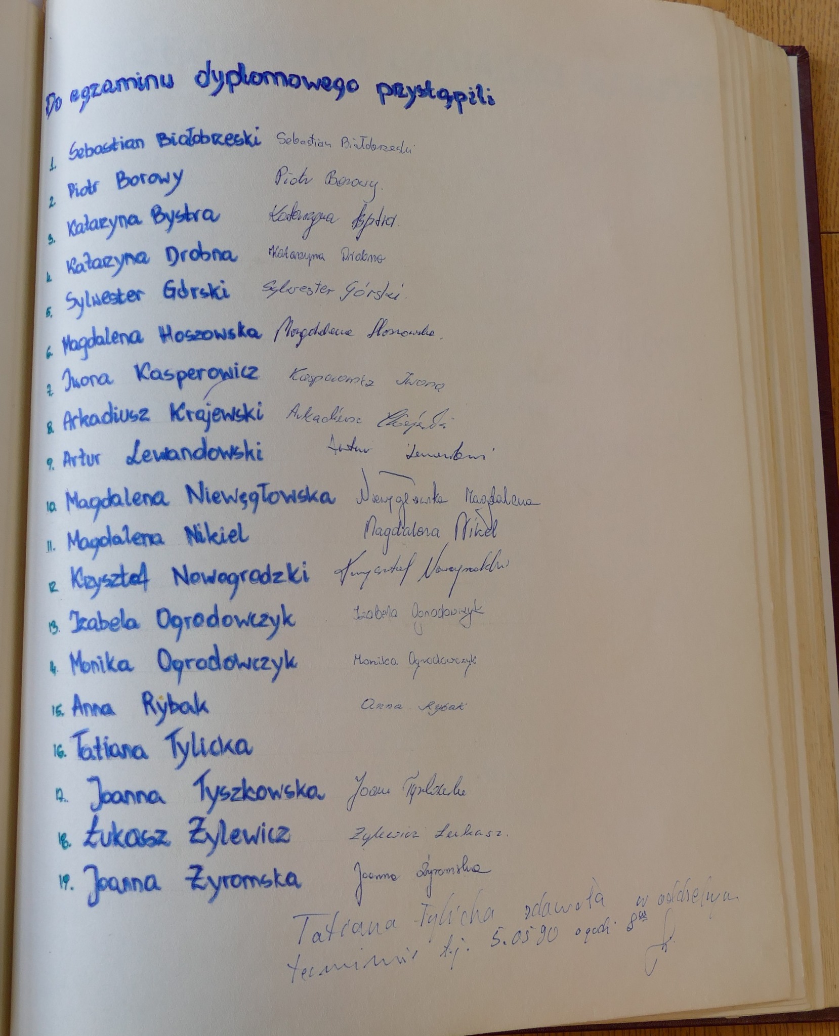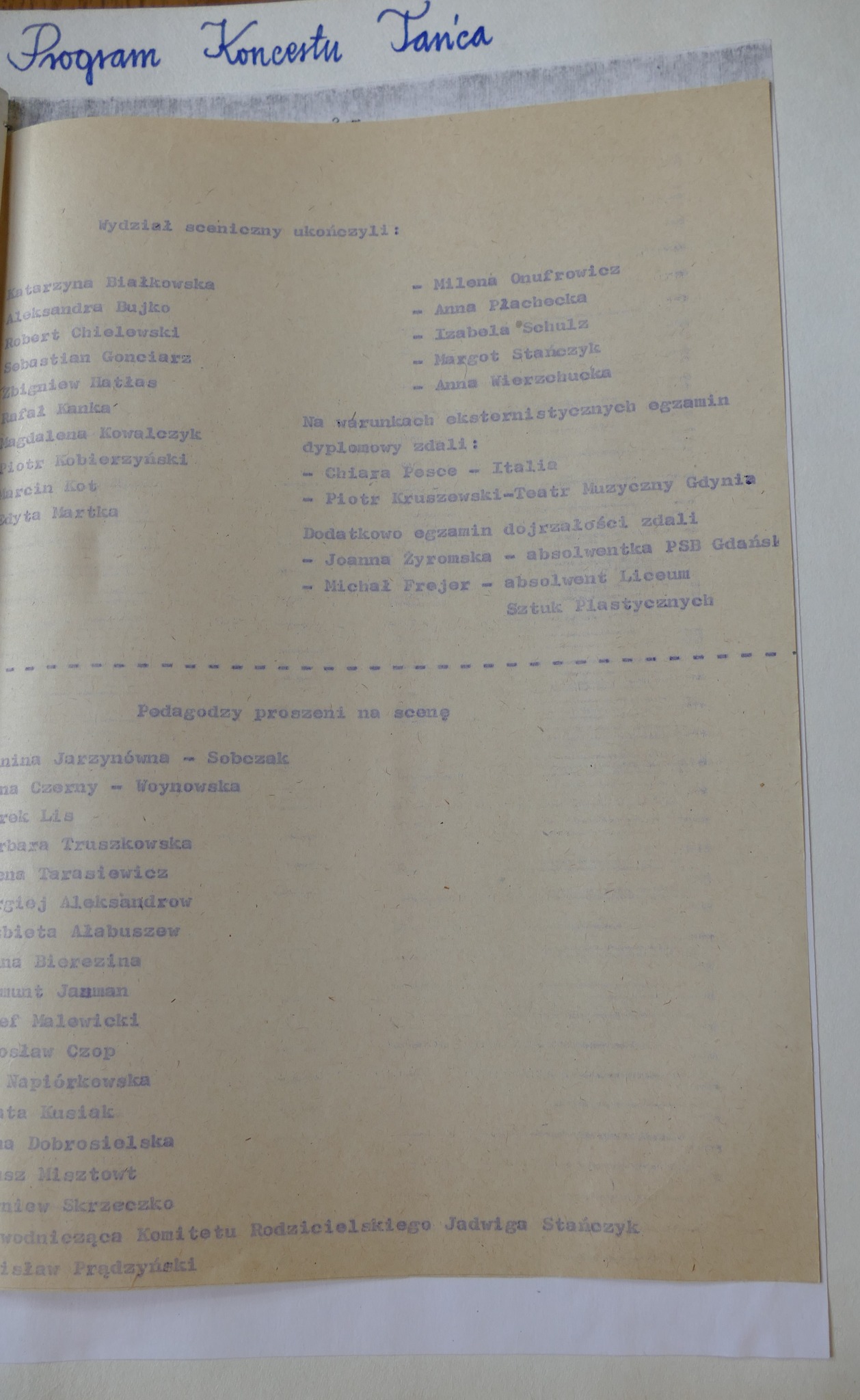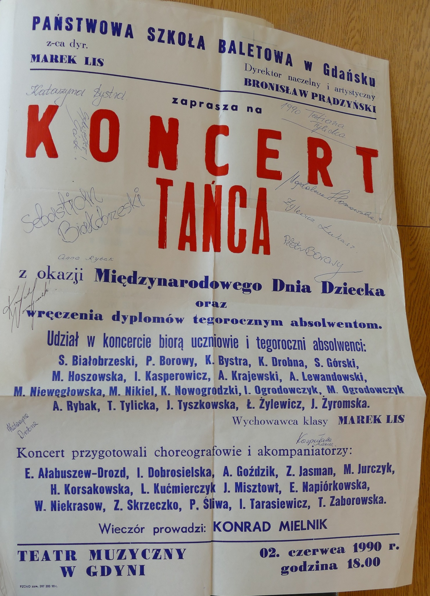 1990: Sebastian Białobrzeski, Piotr Borowy, Katarzyna Bystra, Katarzyna Drobna, Sylwester Górski, Magdalena Hoszowska, Iwona Kasperowicz, Arkadiusz Krajewski, Artur Lewandowski, Magdalena Niewęgłowska, Magdalena Nikiel, Krzysztof Nowogrodzki, Izabela Ogrodowczyk, Monika Ogrodowczyk, Anna Rybak, Tatiana Tylicka, Joanna Tyszkowska, Łukasz Żylewicz, Joanna Żyromska