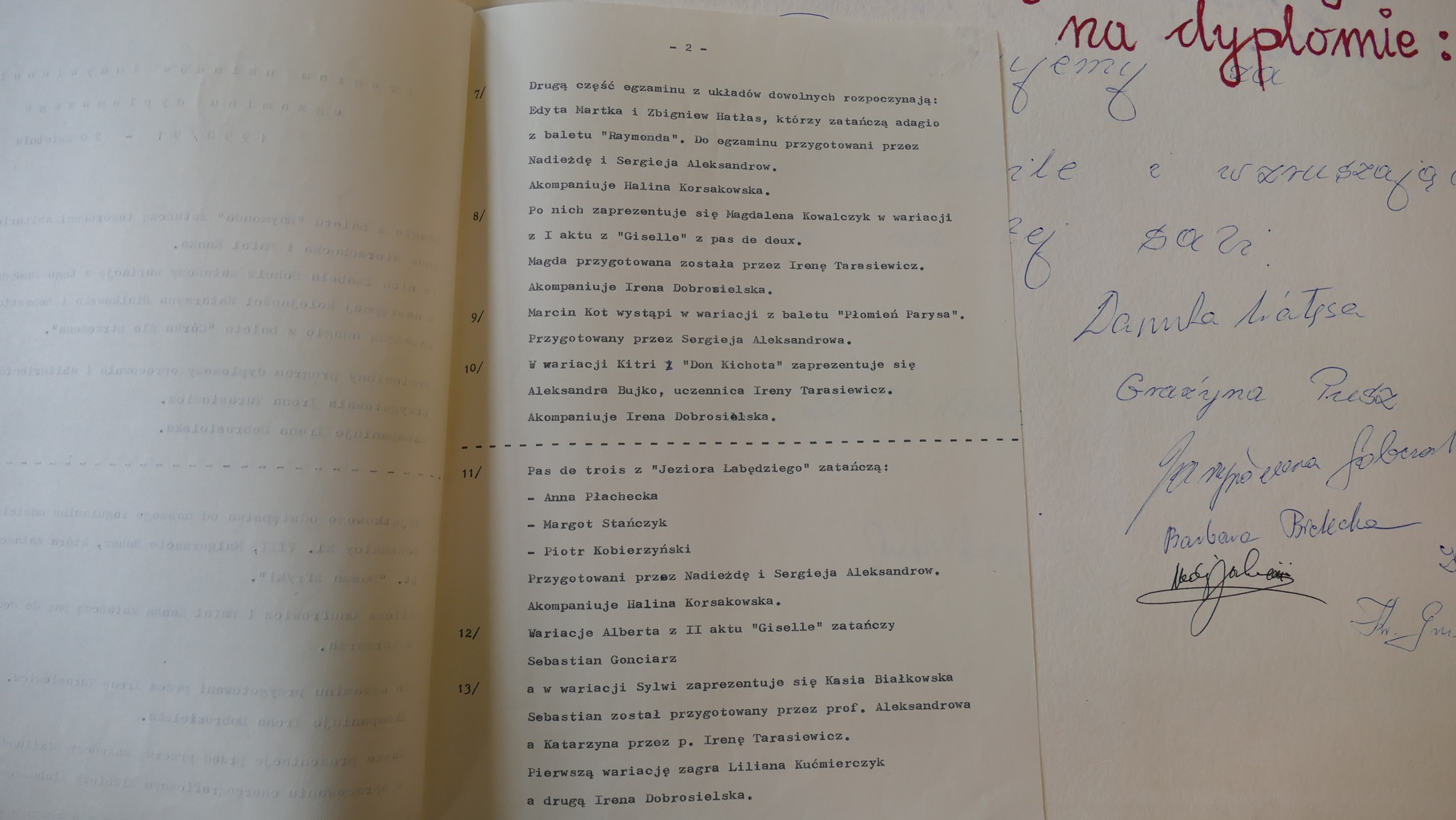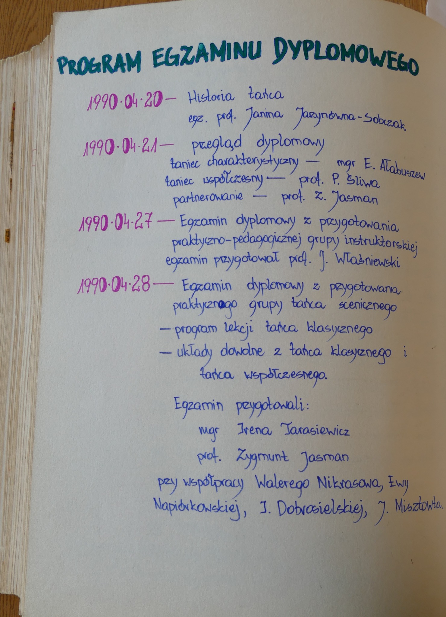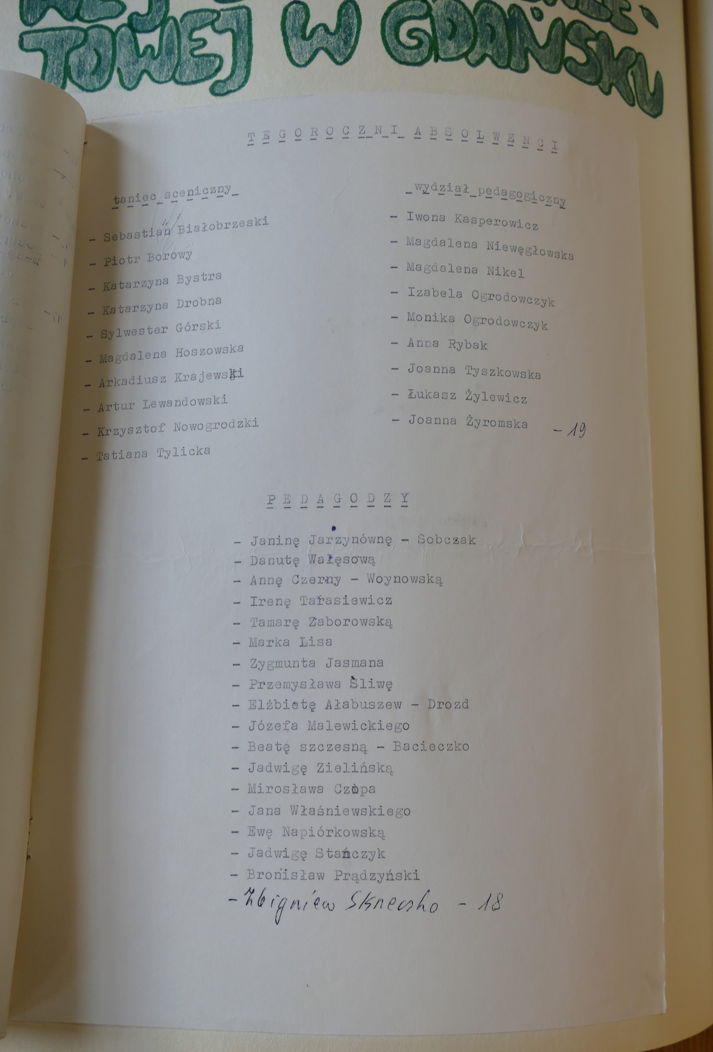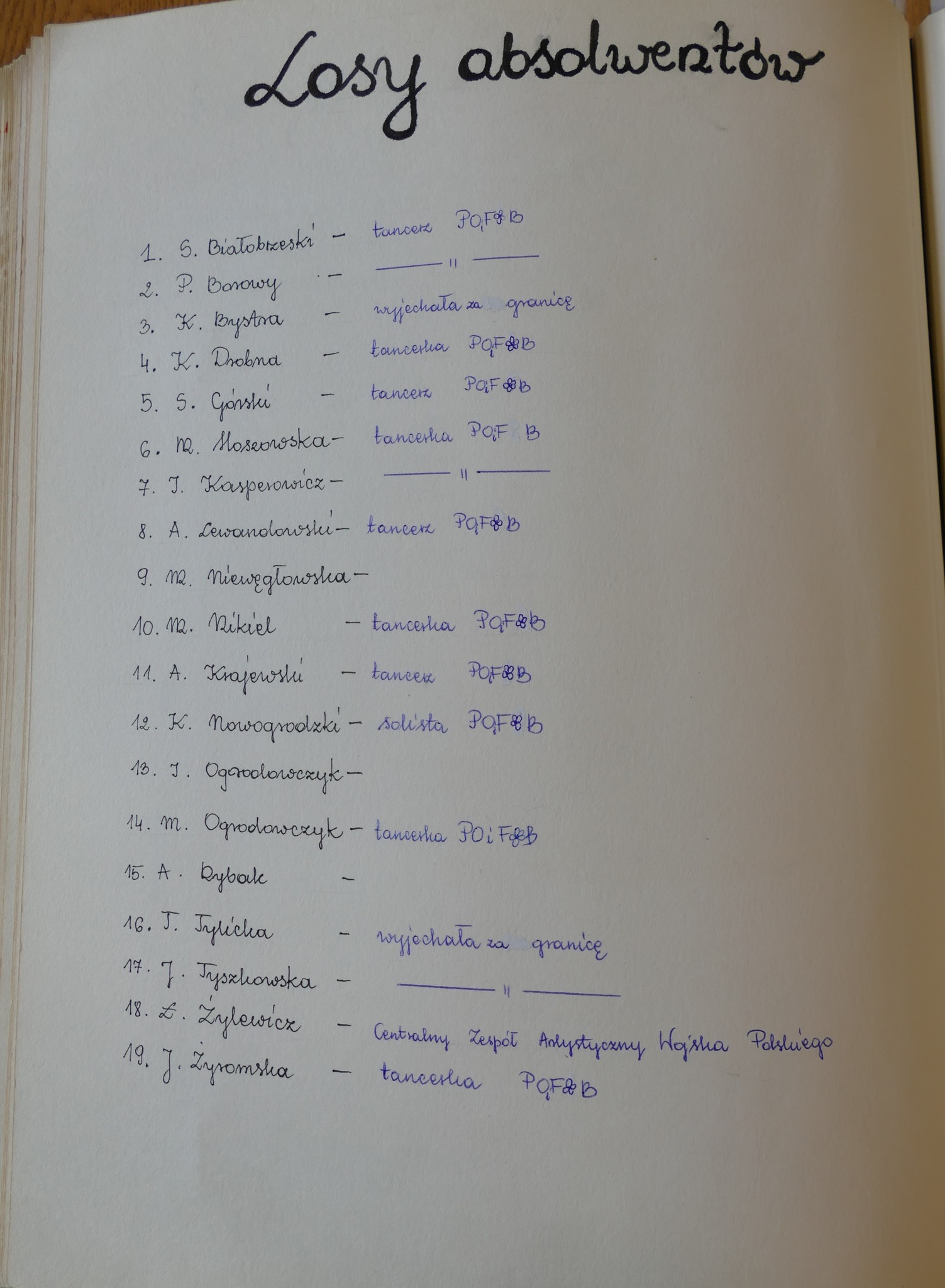 1990: Sebastian Białobrzeski, Piotr Borowy, Katarzyna Bystra, Katarzyna Drobna, Sylwester Górski, Magdalena Hoszowska, Iwona Kasperowicz, Arkadiusz Krajewski, Artur Lewandowski, Magdalena Niewęgłowska, Magdalena Nikiel, Krzysztof Nowogrodzki, Izabela Ogrodowczyk, Monika Ogrodowczyk, Anna Rybak, Tatiana Tylicka, Joanna Tyszkowska, Łukasz Żylewicz, Joanna Żyromska