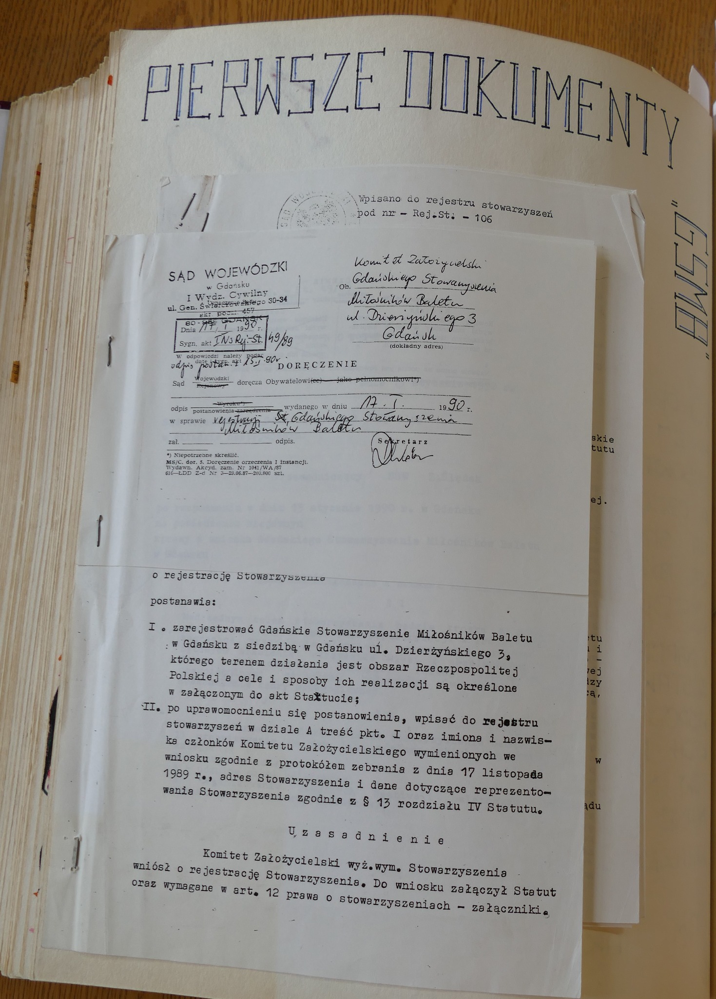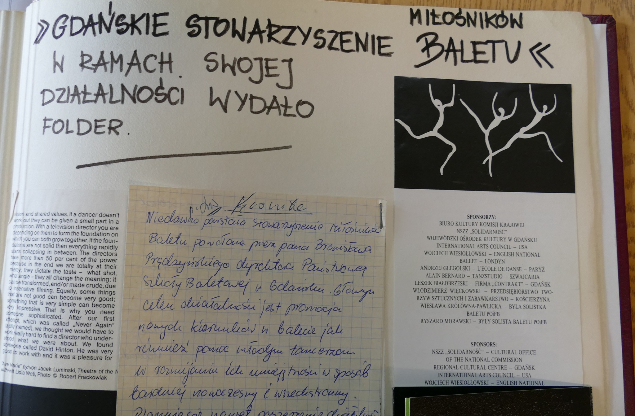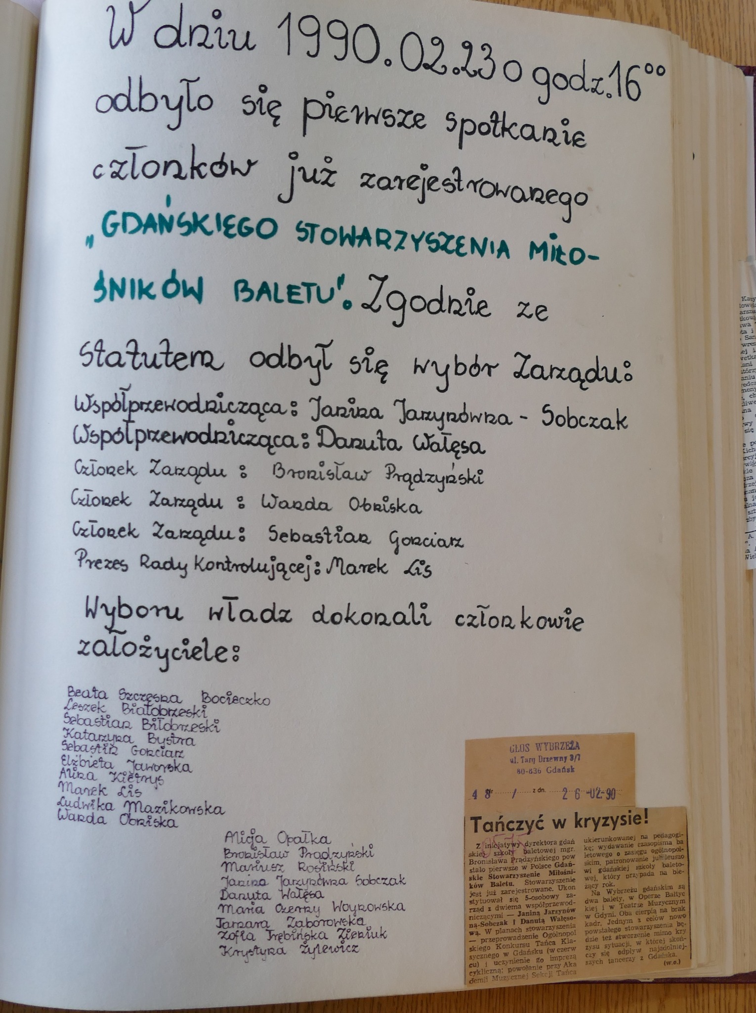 W kronice znajdujemy informację, że w 1990 roku zostało powołane Gdańskie Stowarzyszenie Miłośników Baletu. Założyciele mieli na celu między innymi promowanie nowych kierunków w balecie oraz pomoc młodym tancerzom.