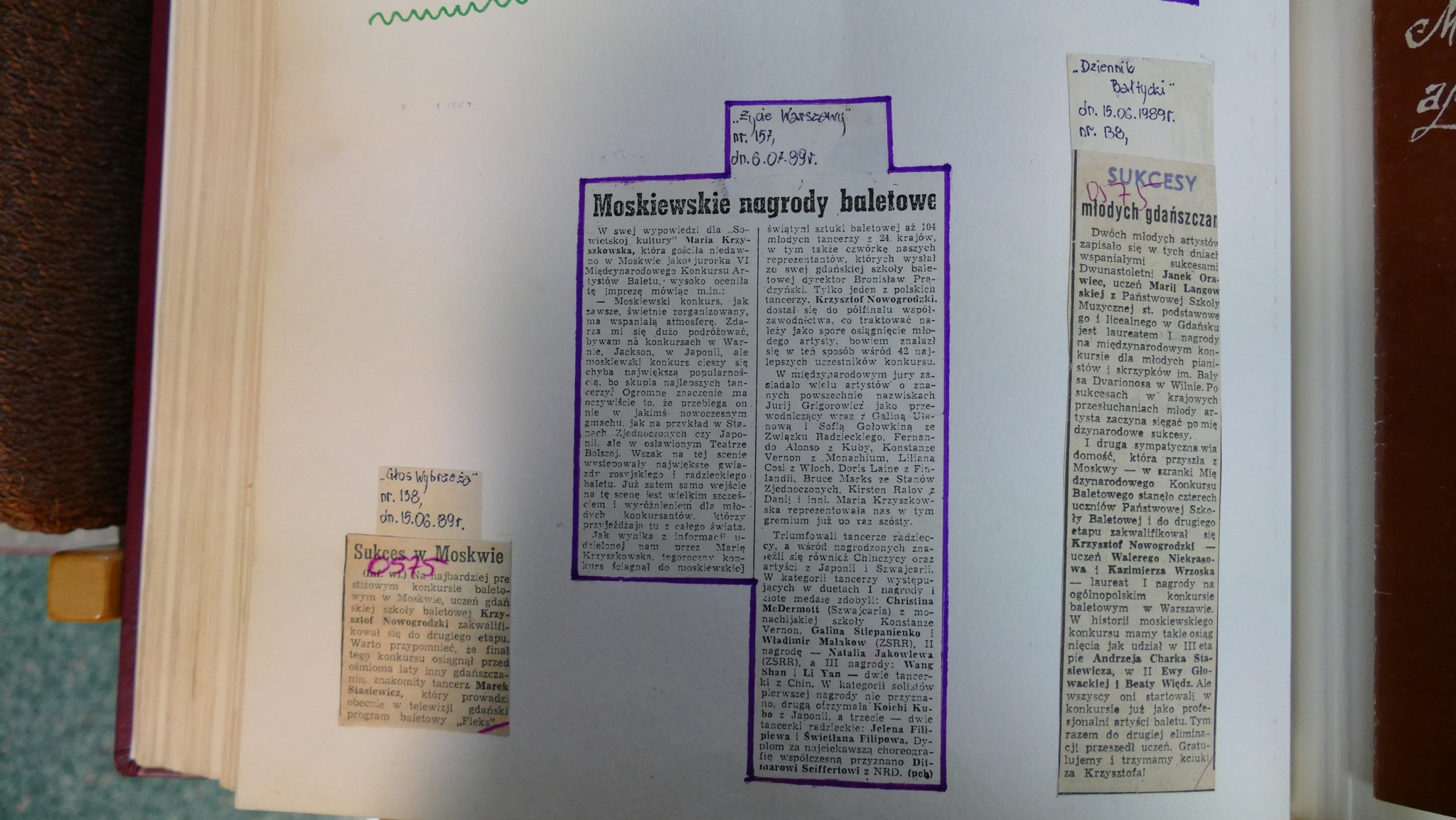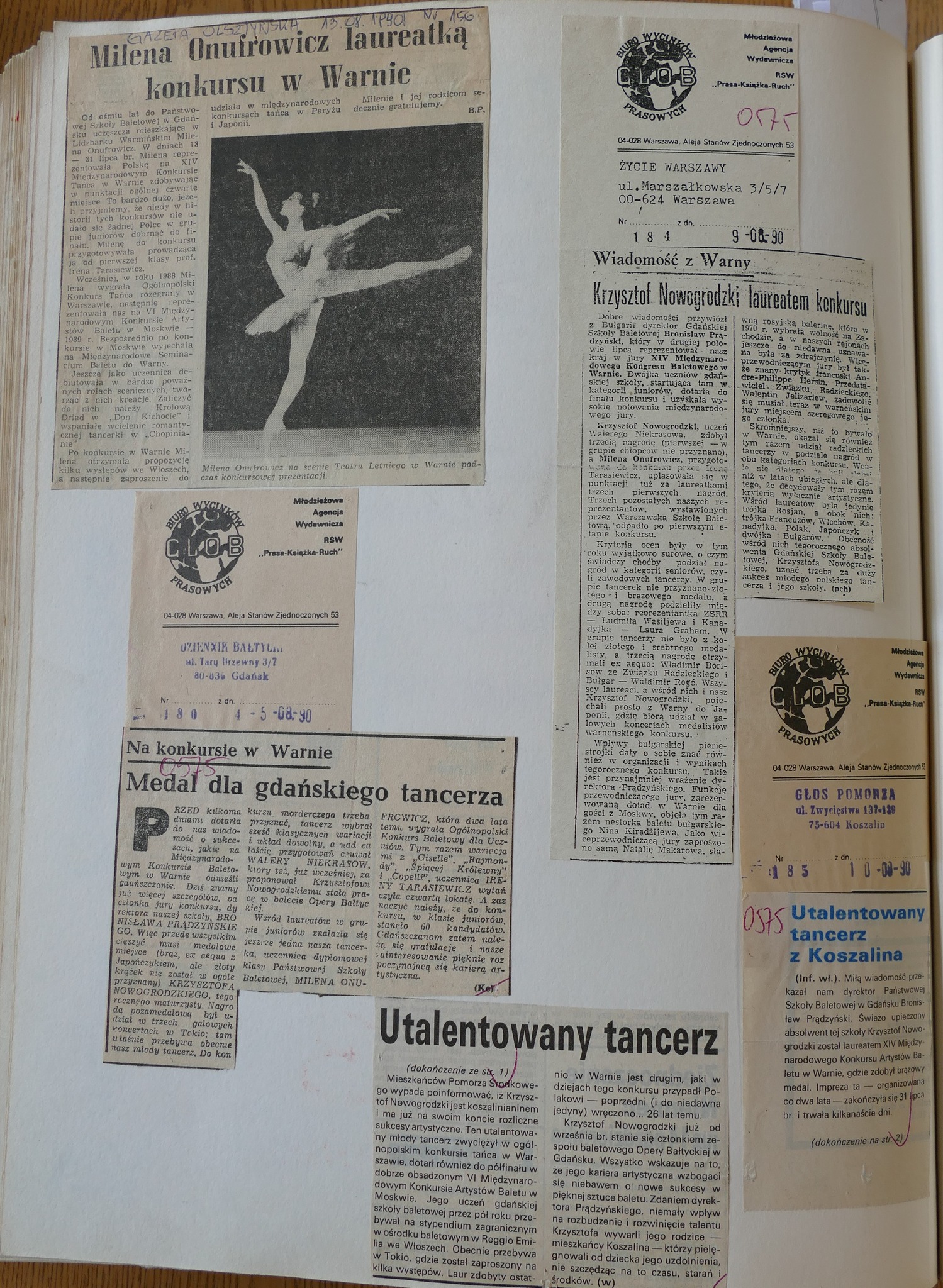 Publikujemy kilka wycinków z gazet, co prawda z 1989 roku, ale dotyczą one absolwenta z 1990 roku – wspomnianego Krzysztofa Nowogrodzkiego. On, jako jedyny z przedstawicieli naszej szkoły, przeszedł do II etapu moskiewskiego konkursu baletowego.