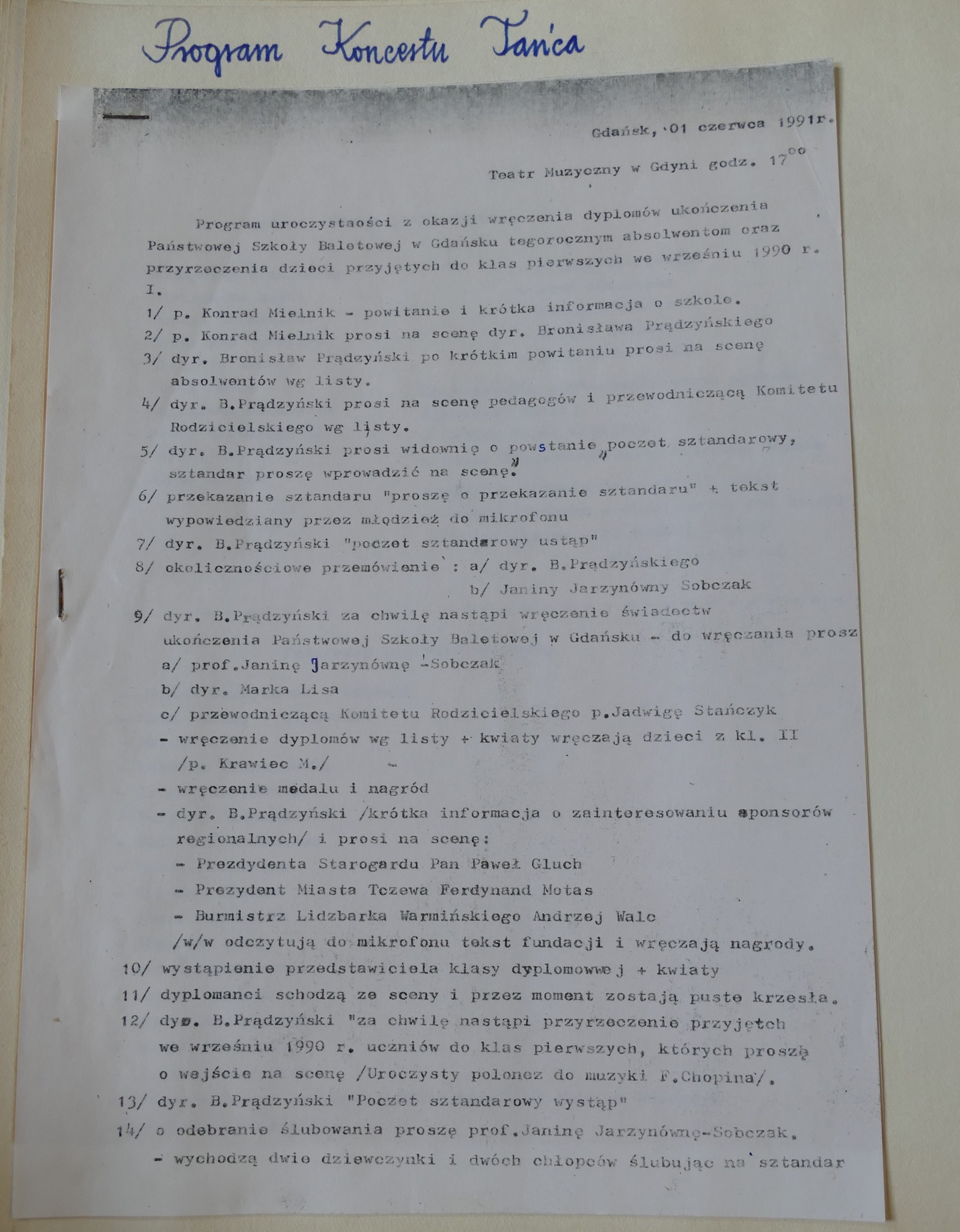 1991: Katarzyna Białkowska, Aleksandra Bujko, Sebastian Gonciarz, Zbigniew Hatłas, Rafał Kanka, Piotr Kobierzyński, Marcin Kot, Magdalena Kowalczyk, Edyta Martka, Milena Onufrowicz, Anna Płachecka, Izabela Schulz, Margot Stańczyk, Anna Wierzchucka
