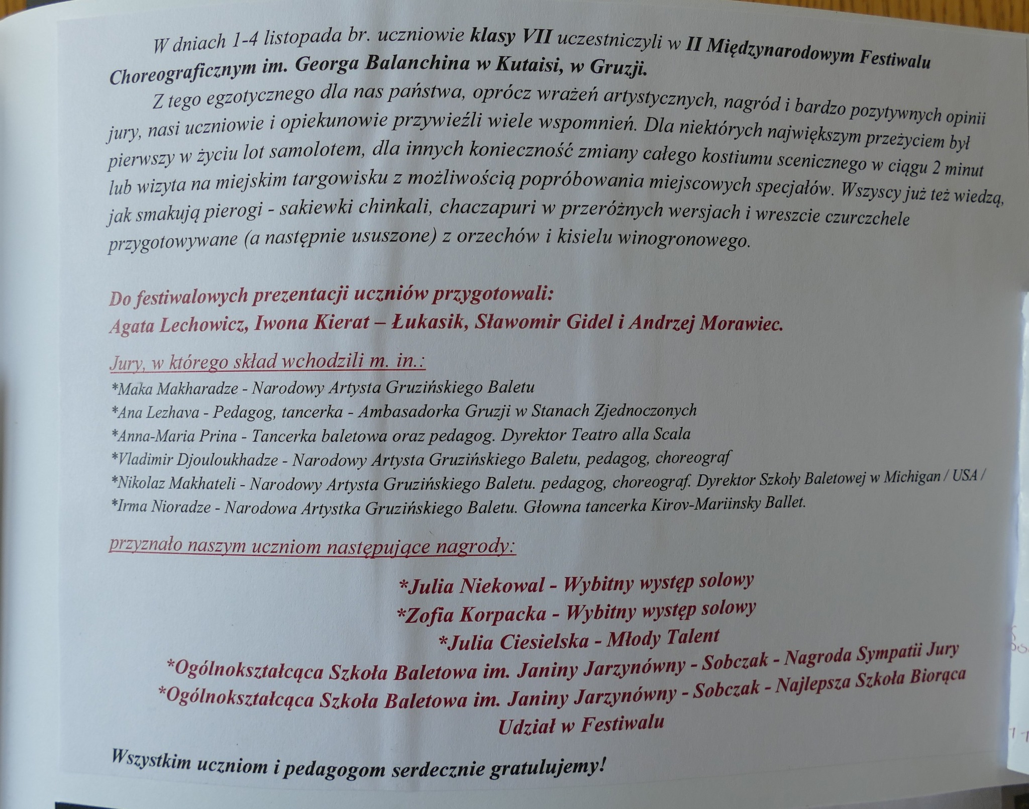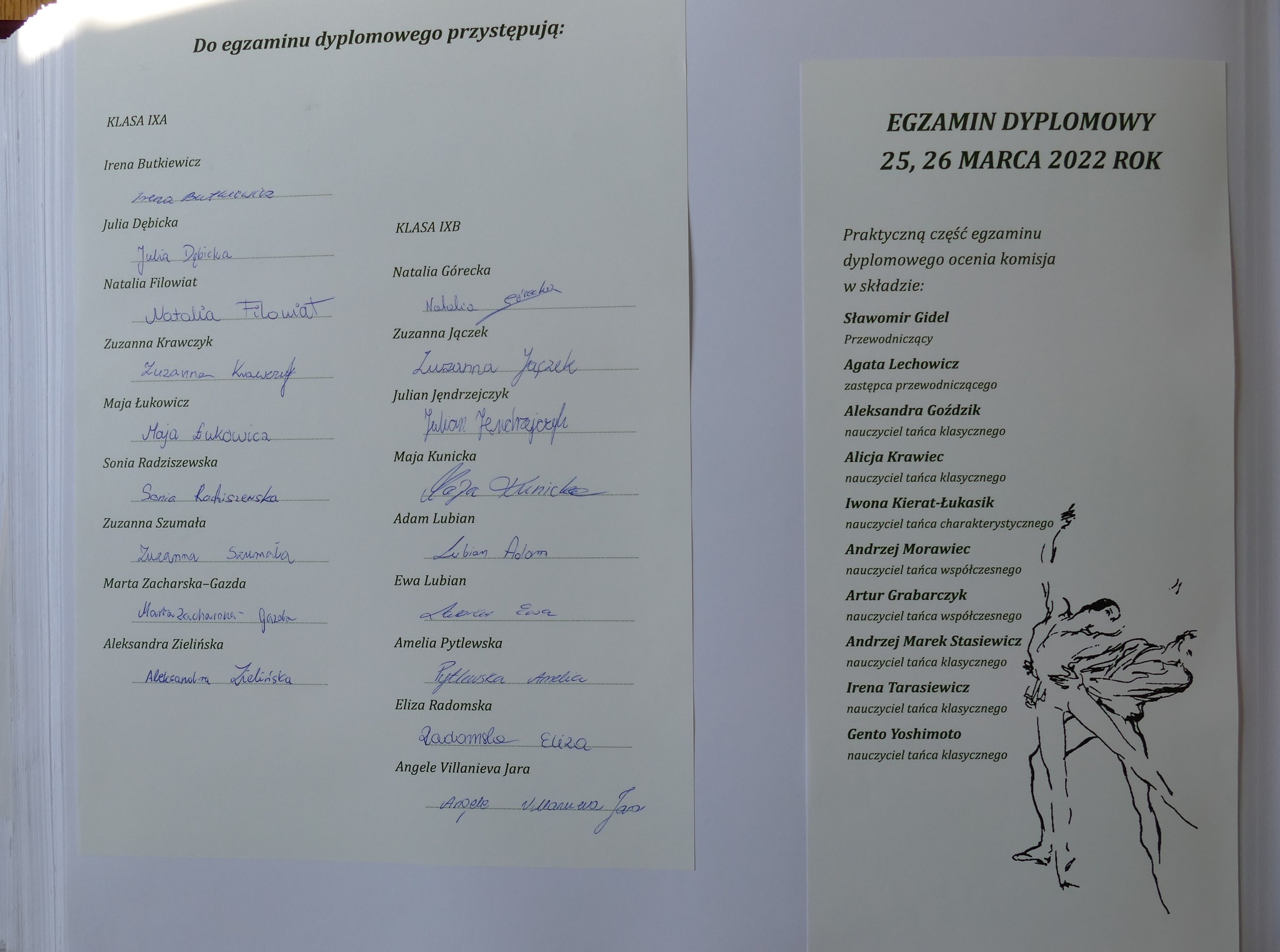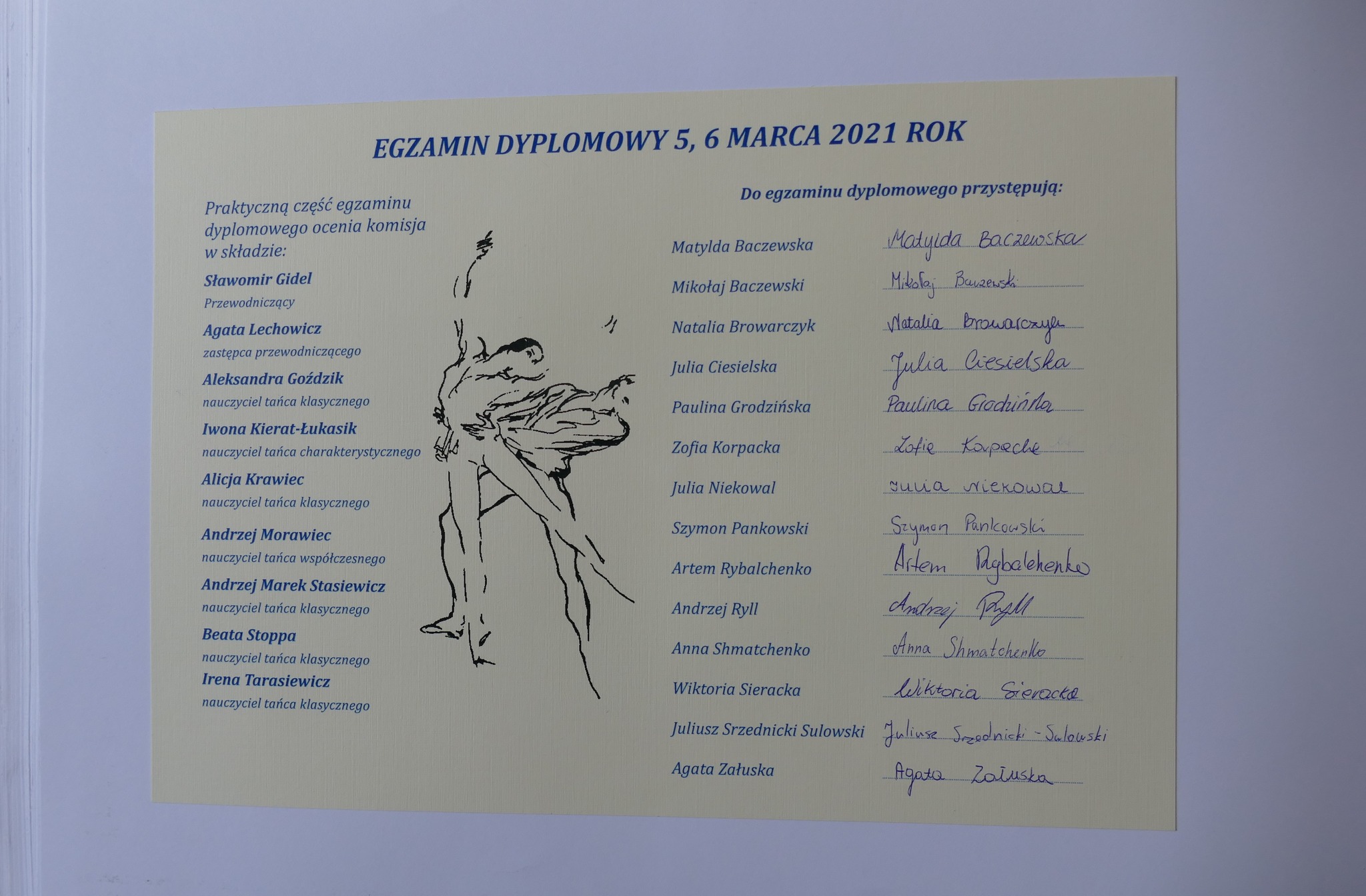 2021: Matylda Baczewska, Mikołaj Baczewski, Natalia Browarczyk, Julia Ciesielska, Paulina Grodzińska, Zofia Korpacka, Julia Niekowal, Szymon Pankowski, Anna Shmatchenko, Wiktoria Sieracka, Juliusz Srzednicki – Sulowski, Artem Rybalchenko, Andrzej Ryll, Agata Załuska