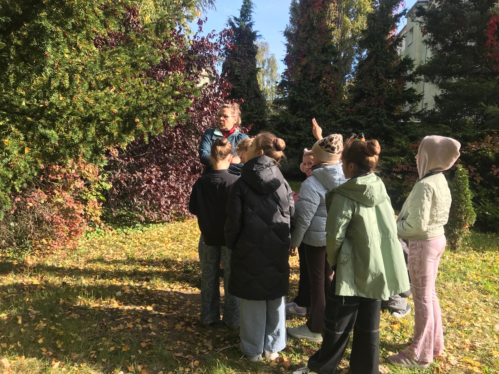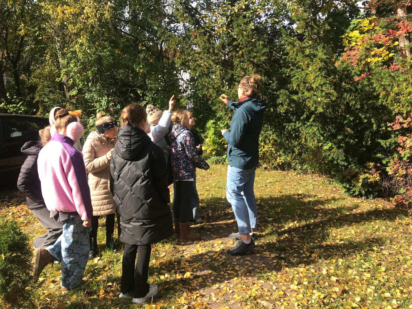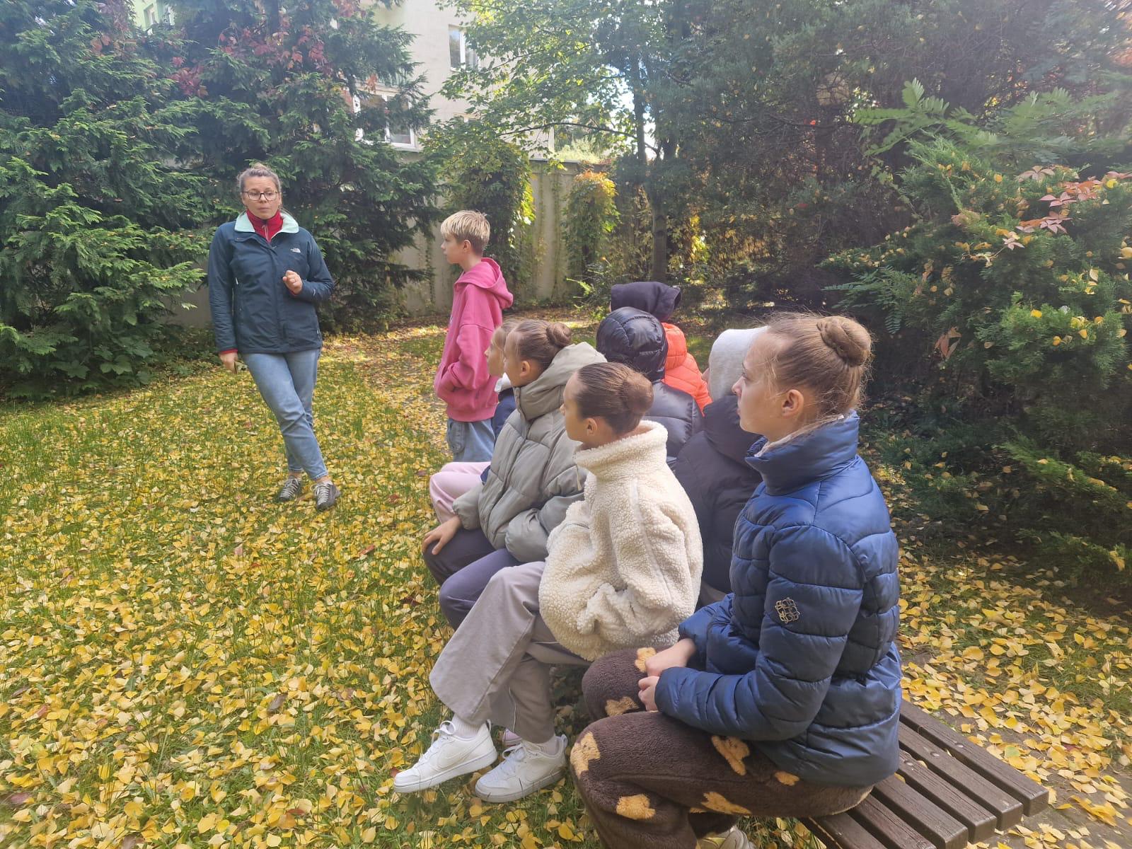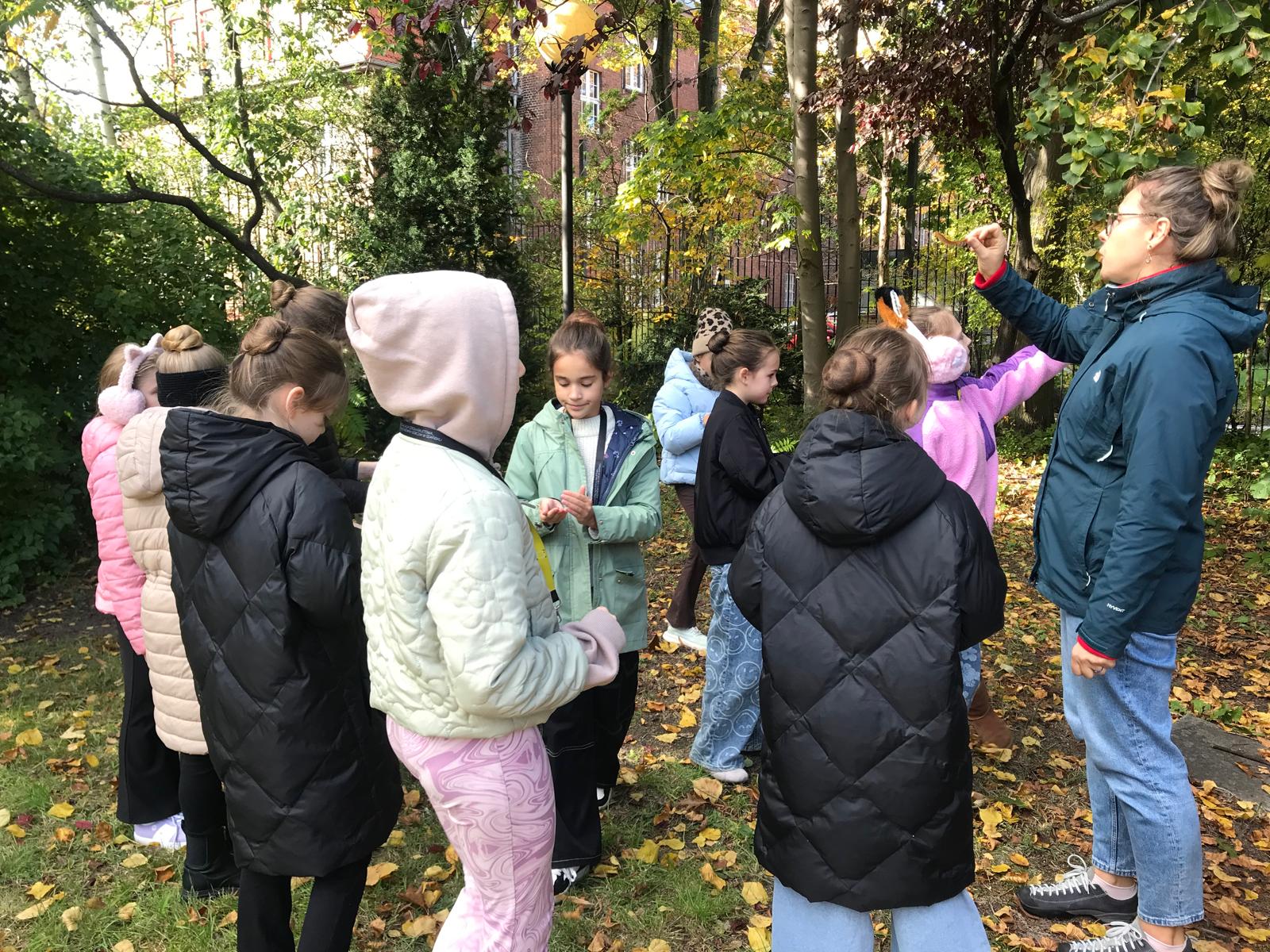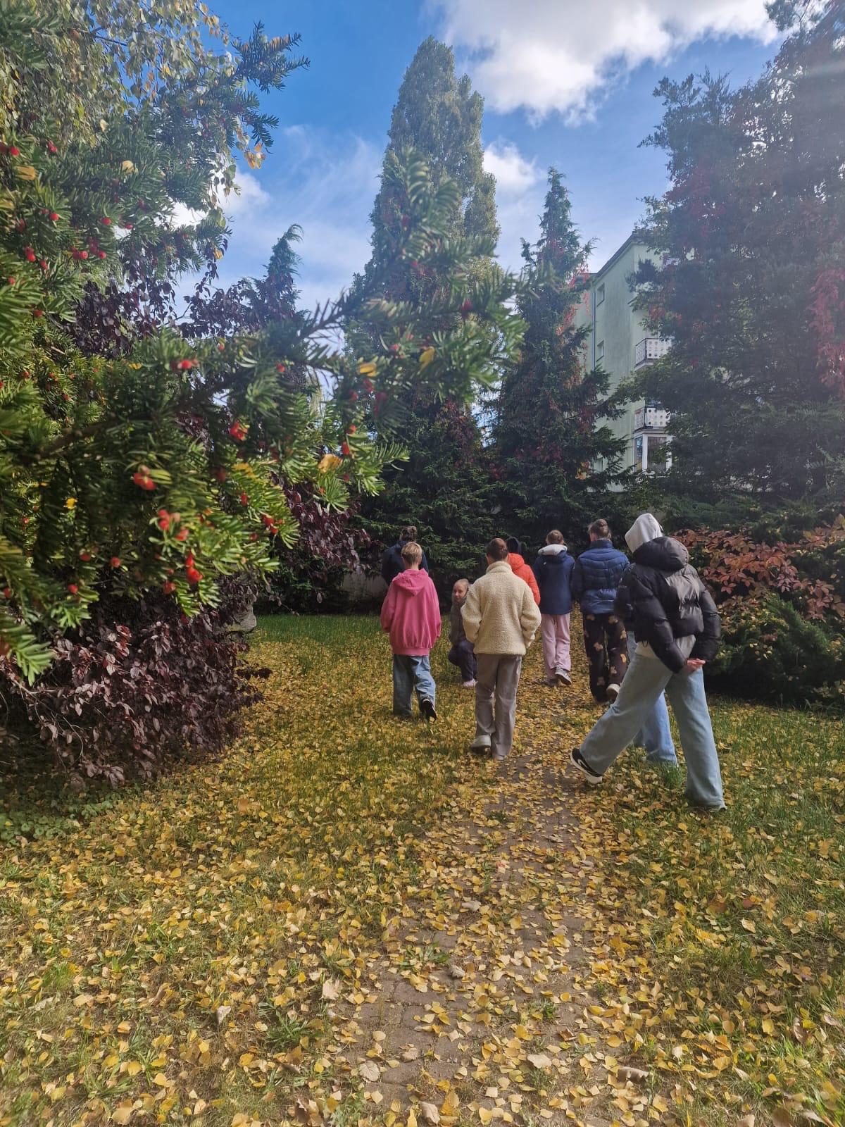 Z tej okazji klasy I i IV wraz z Panią Kamilą Kubic z Centrum Informacji i Edukacji Ekologicznej w Gdańsku spacerowały dziś po szkolnym ogrodzie i poznawały ciekawostki o znajdujących się w nim drzewach oraz krzewach. Na przykład taką, że drzewa sadzi się przy szkołach, by uczniom łatwiej, przyjemniej i bezpieczniej było się uczyć