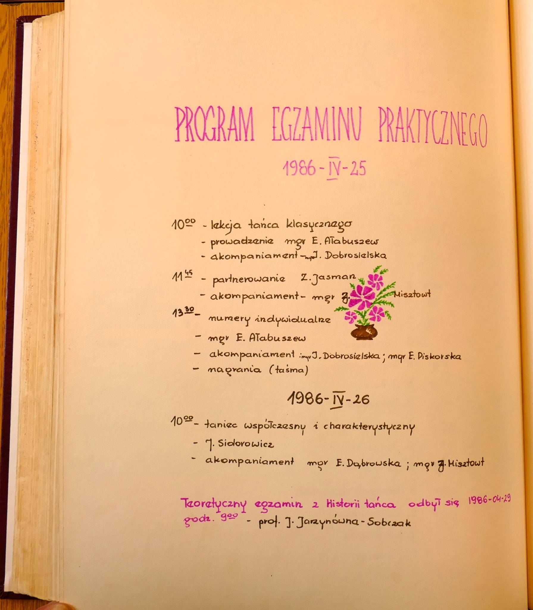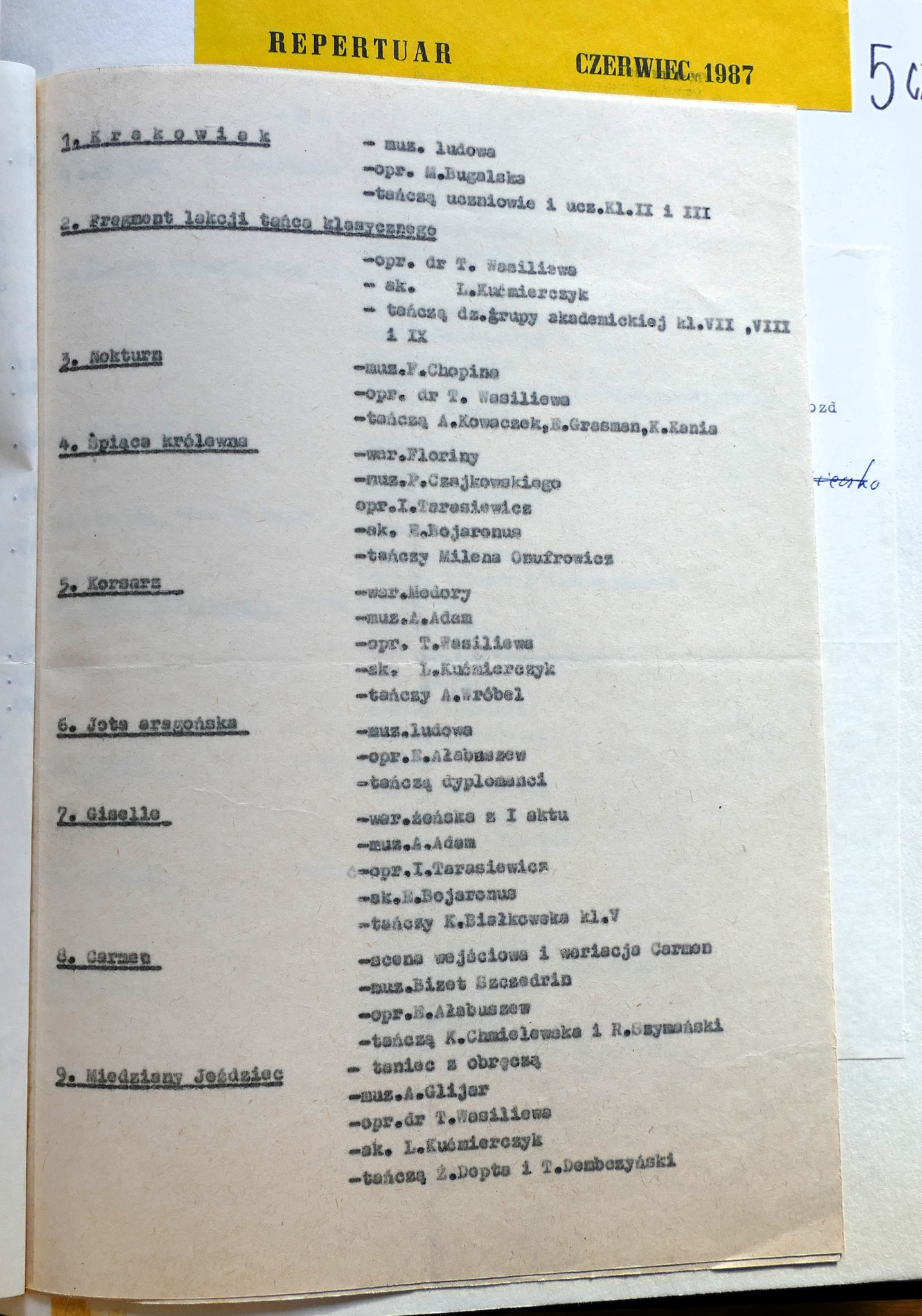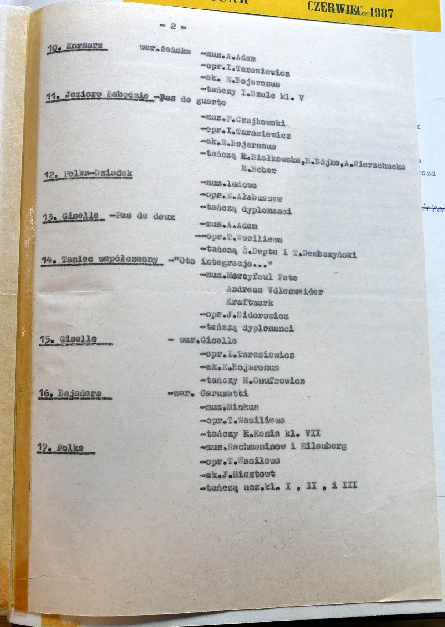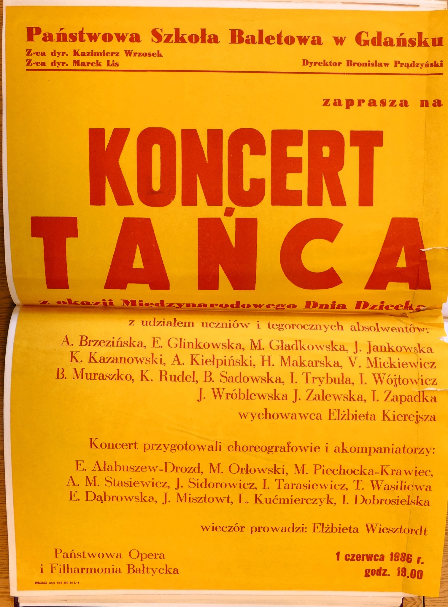 1986: Anna Brzezińska, Ewa Glinkowska, Małgorzata Gładkowska, Joanna Jankowska, Krzysztof Kazanowski, Andrzej Kiełpiński, Hanna Makarska, Violetta Mickiewicz, Beata Muraszko, Katarzyna Rudel, Barbara Sadowska, Ilona Trybuła, Iwona Wójtowicz, Jolanta Wróblewska, Jolanta Zalewska, Irena Zapadka