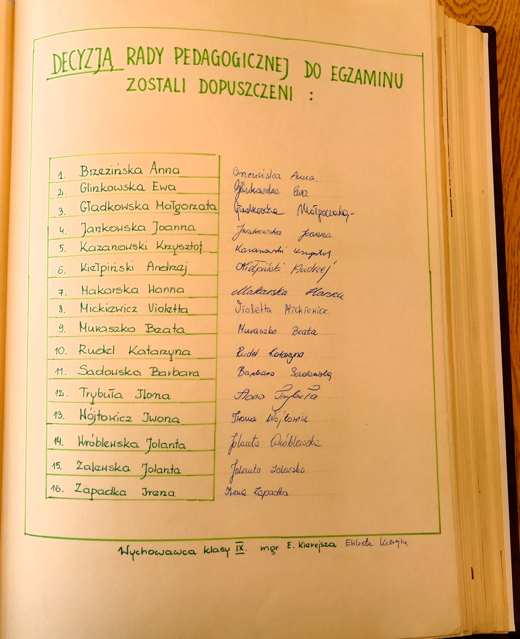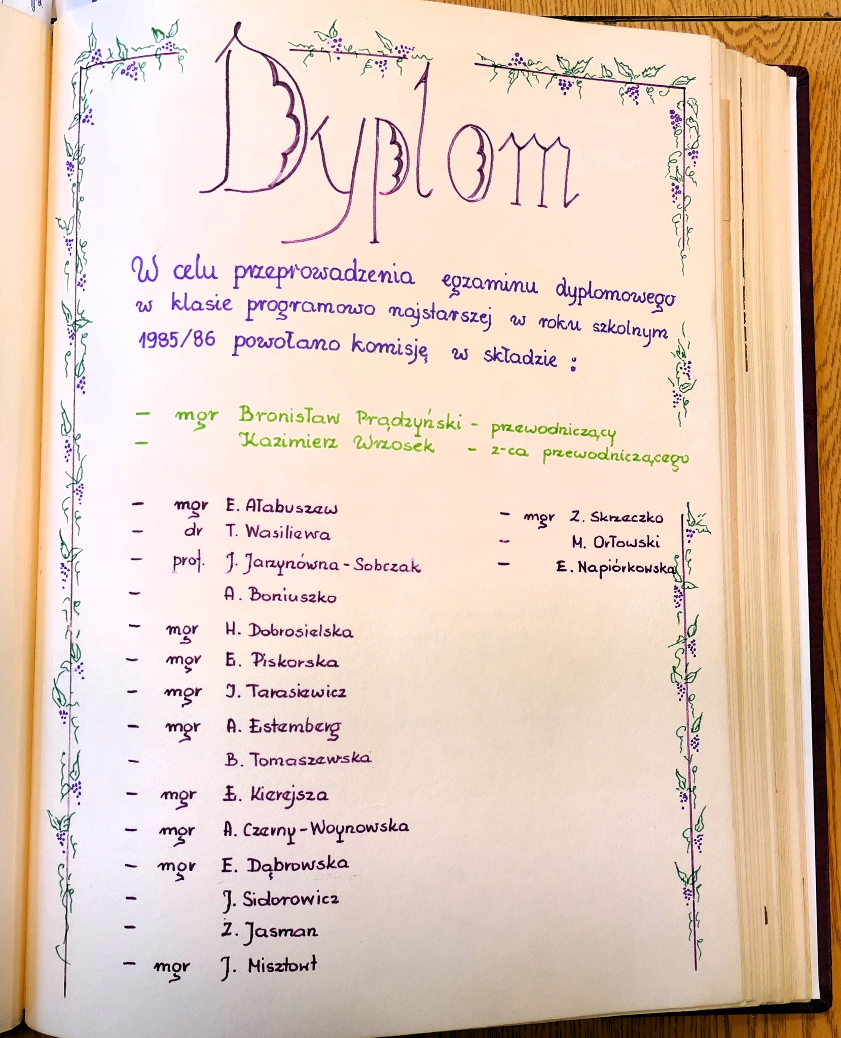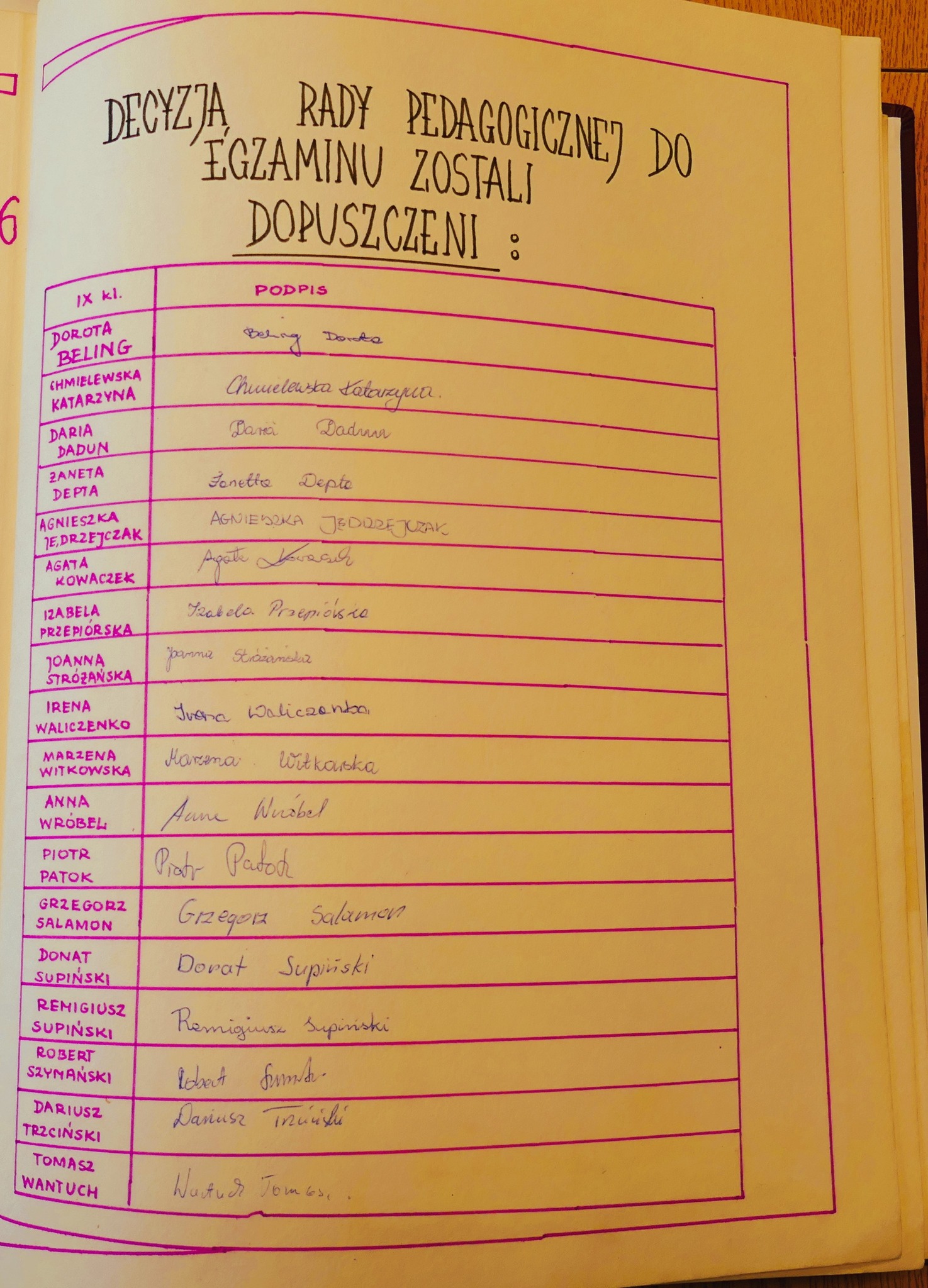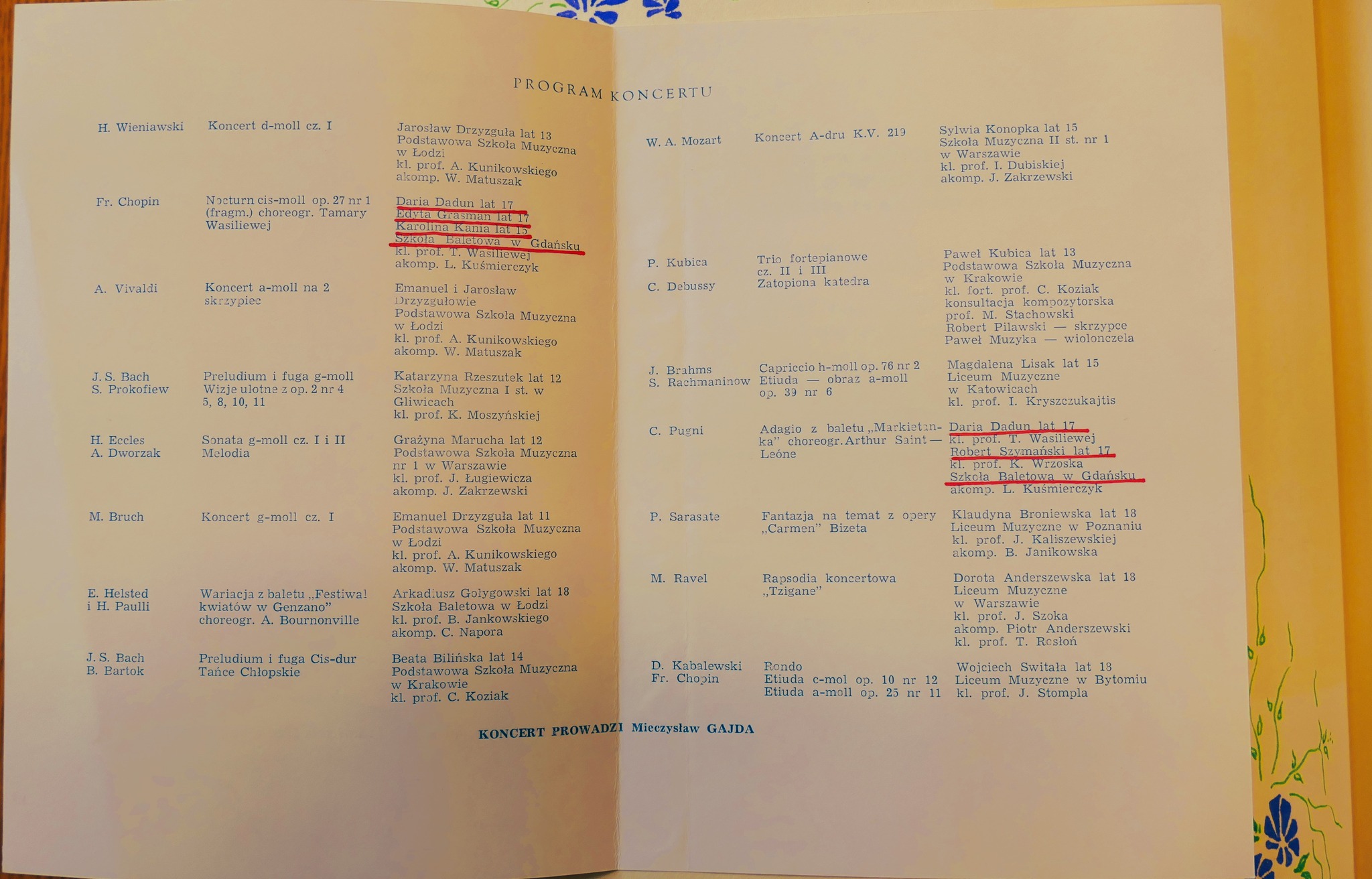 1986: Anna Brzezińska, Ewa Glinkowska, Małgorzata Gładkowska, Joanna Jankowska, Krzysztof Kazanowski, Andrzej Kiełpiński, Hanna Makarska, Violetta Mickiewicz, Beata Muraszko, Katarzyna Rudel, Barbara Sadowska, Ilona Trybuła, Iwona Wójtowicz, Jolanta Wróblewska, Jolanta Zalewska, Irena Zapadka
