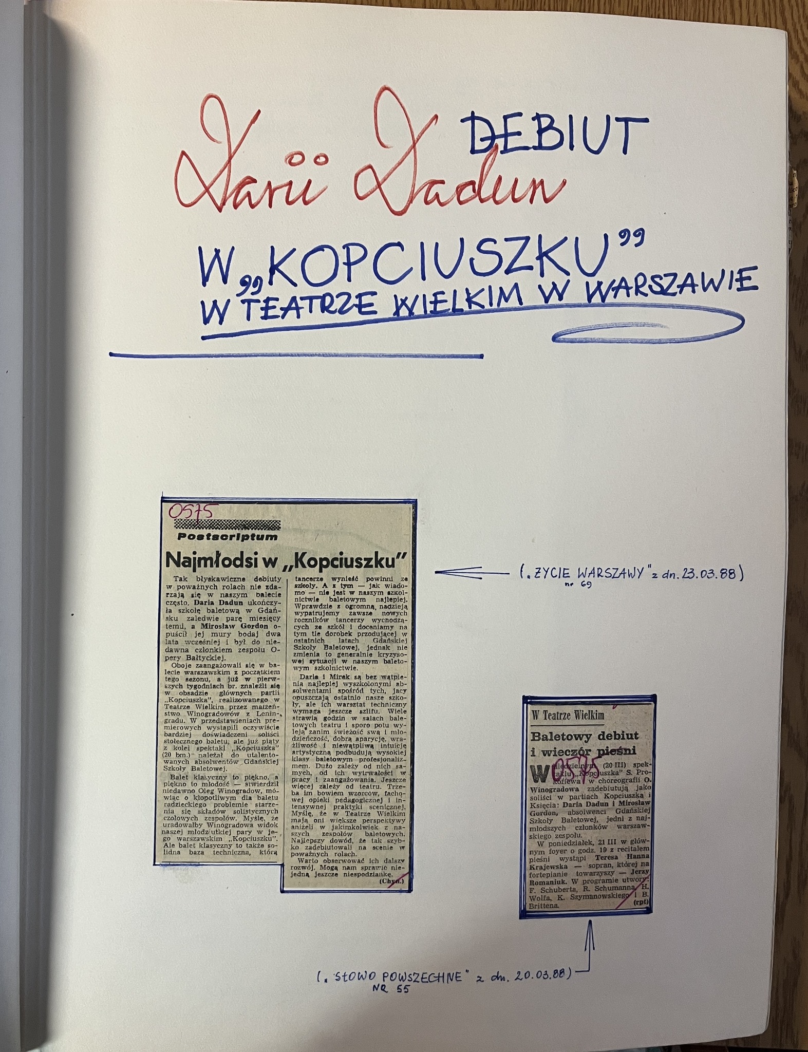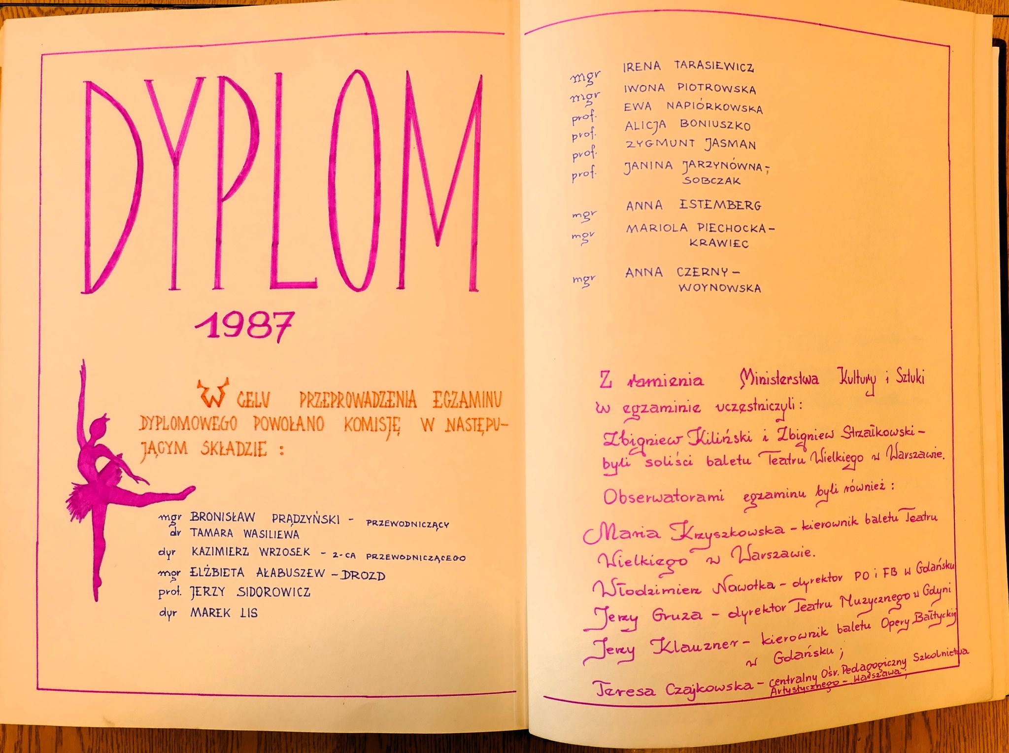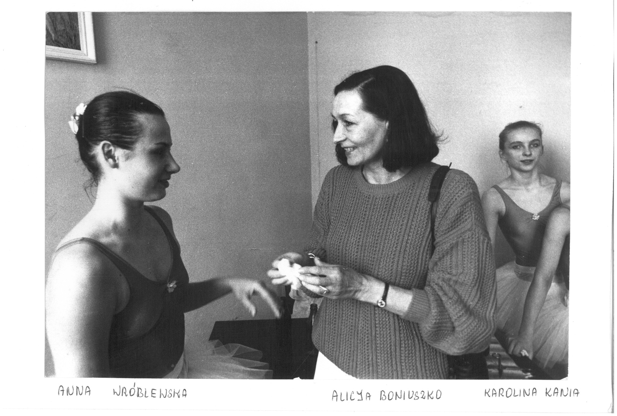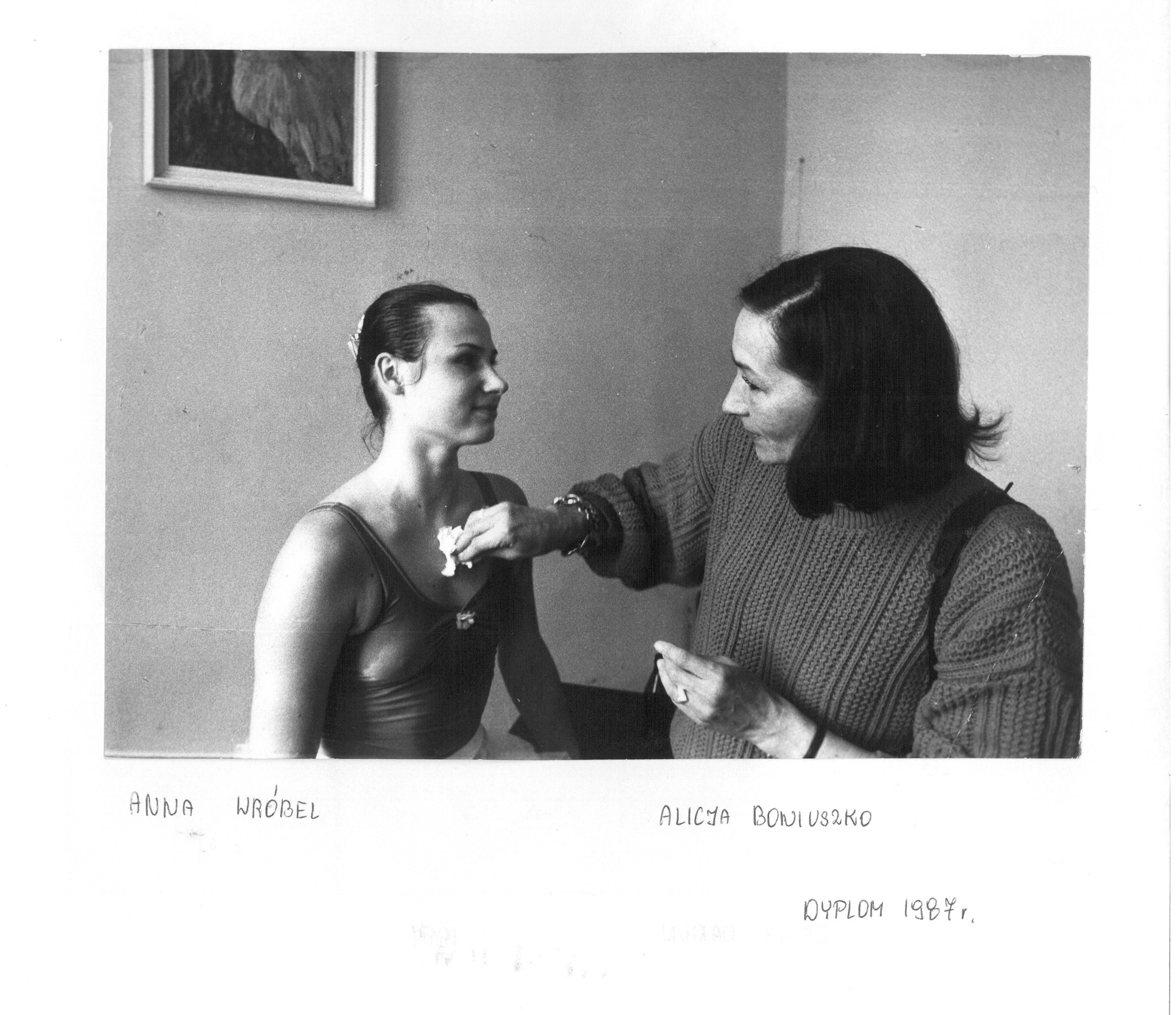 Oglądając zdjęcia w galerii, można wypatrzyć między innymi Panią Alicję Boniuszko. A to dlatego, że wśród wyżej wymienionych absolwentek jest Jej córka – Anna Wróbel. To niezwykle czułe zdjęcia, gdzie Alicja Boniuszko – mama, a nie primabalerina i nauczycielka - wspiera swoje dziecko podczas egzaminu dyplomowego.