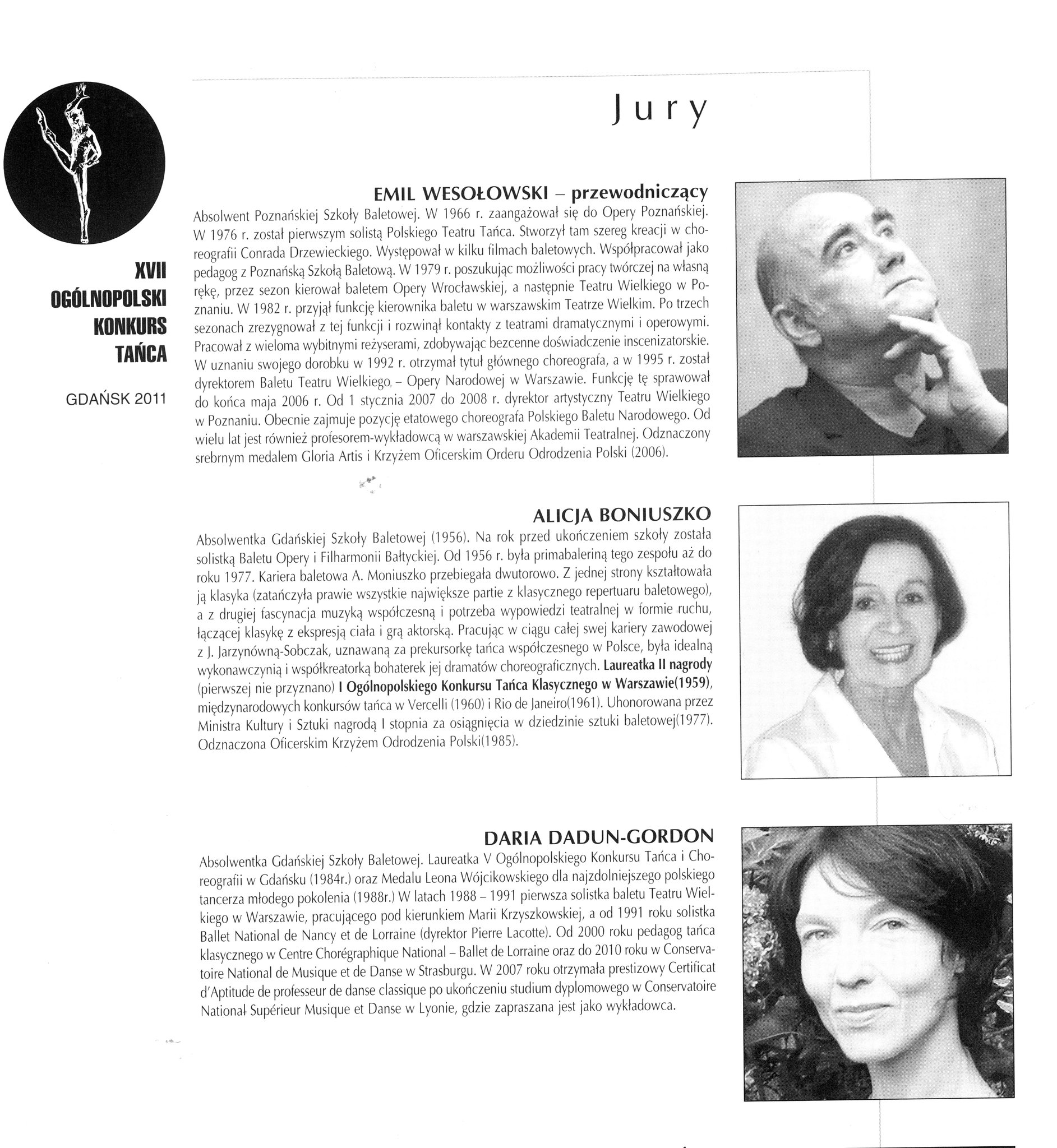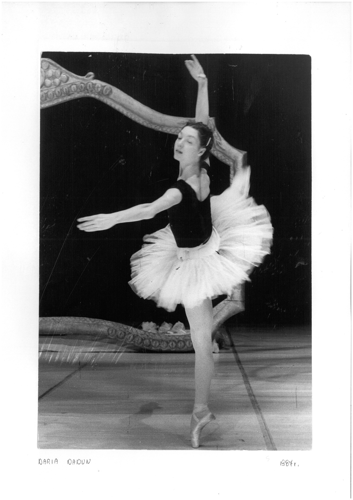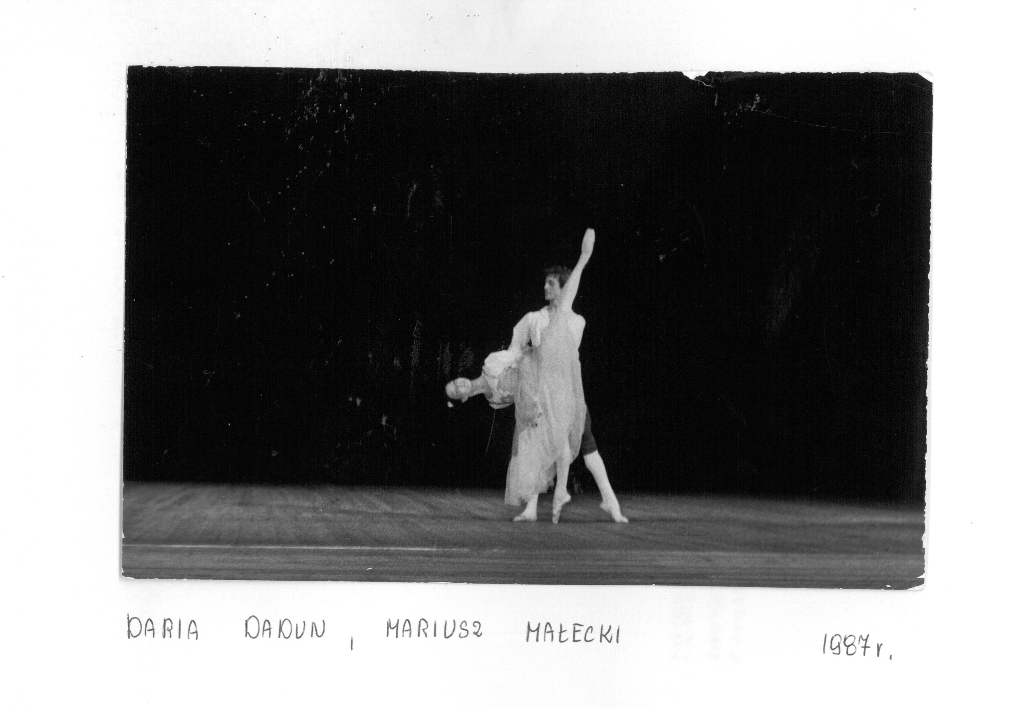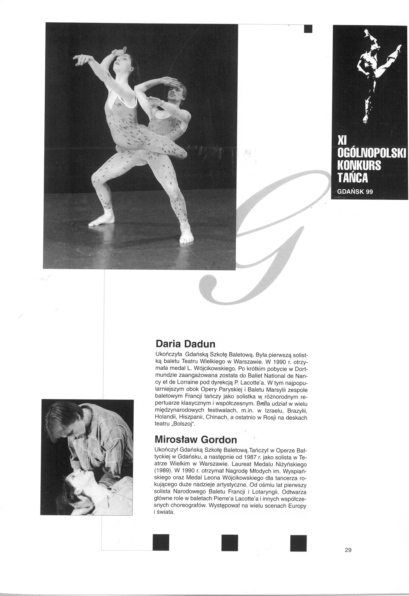 Dłużej zatrzymamy się przy Daria Dadun, bardzo uzdolnionej tancerce. Jest laureatką II nagrody V Ogólnopolskiego Konkursu Tańca i Choreografii, Gdańsk 1984. Otrzymała również Medal im. L. Wójcikowskiego dla najwybitniejszego młodego tancerza w 1988. Pani Daria po szkole wyjechała tańczyć do Teatru Wielkiego w Warszawie. Można powiedzieć, że czekał tam na Nią Pan Mirosław Gordon, absolwent z 1984 roku. Okazało się, że stolica była przystankiem w Ich zawodowej karierze i po kilku latach wyjechali za granicę. Jednak nie zapomnieli o Gdańsku – oboje byli gośćmi podczas koncertu galowego XI Ogólnopolskiego Konkursu Tańca w 1999 roku. Pani Daria zasiadła też dwukrotnie za stołem jurorskim podczas konkursów współorganizowanych przez naszą Baletówkę (II Ogólnopolski Konkurs Najmłodszych Tancerz, Gdańsk 2006, XVII Ogólnopolski konkurs Tańca im. Wojciecha Wiesiołłowskiego, Gdańsk 2011).