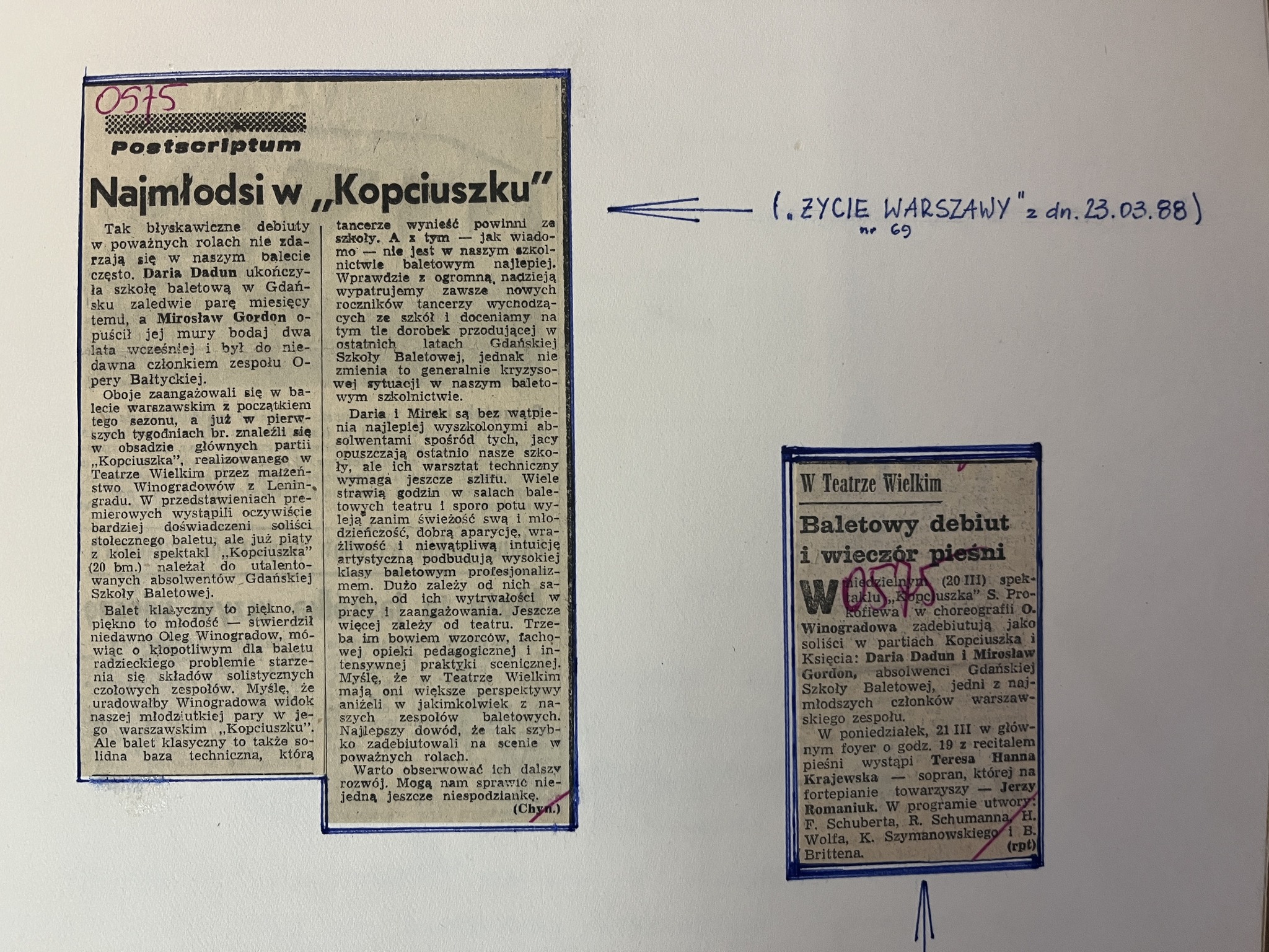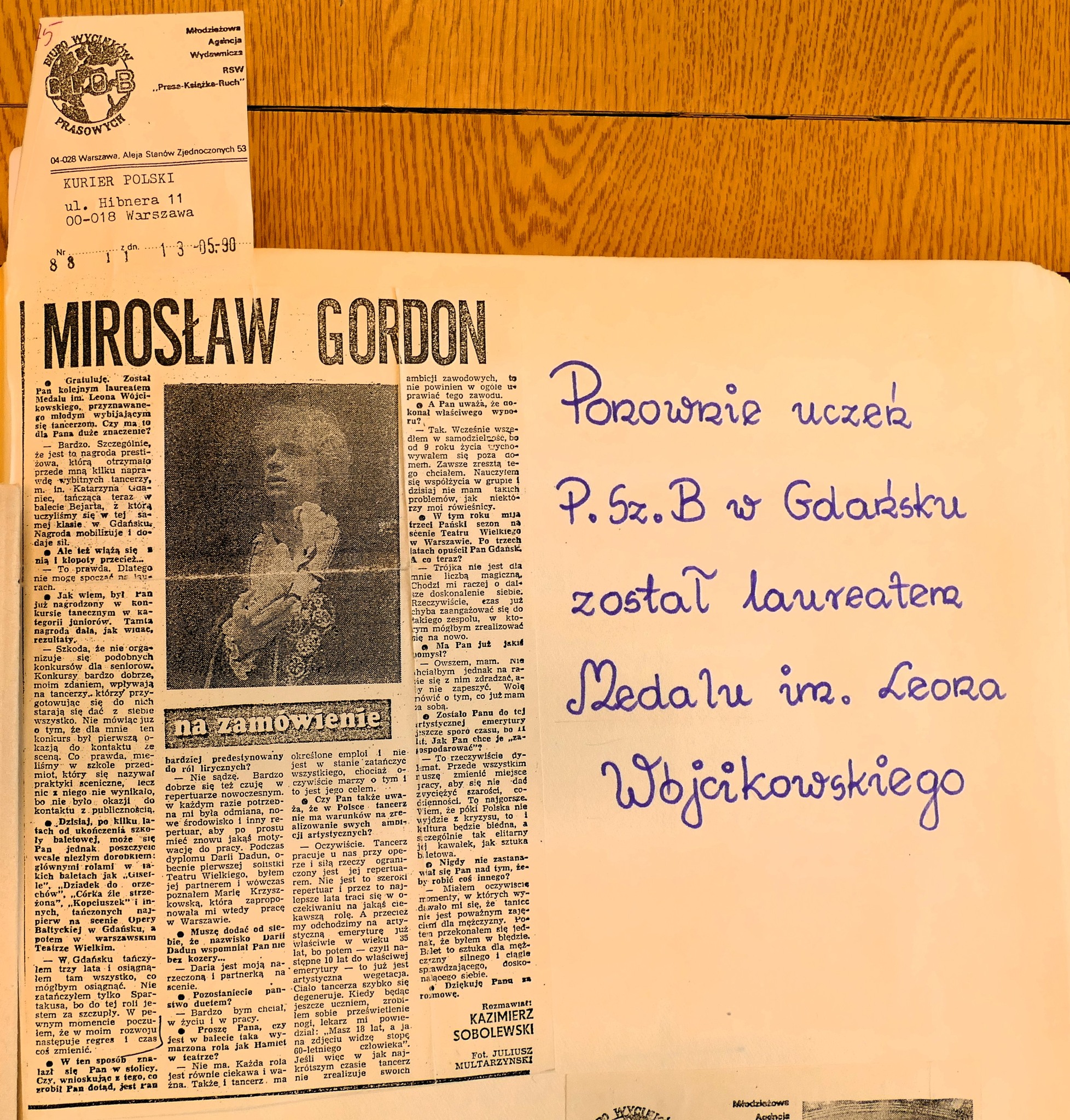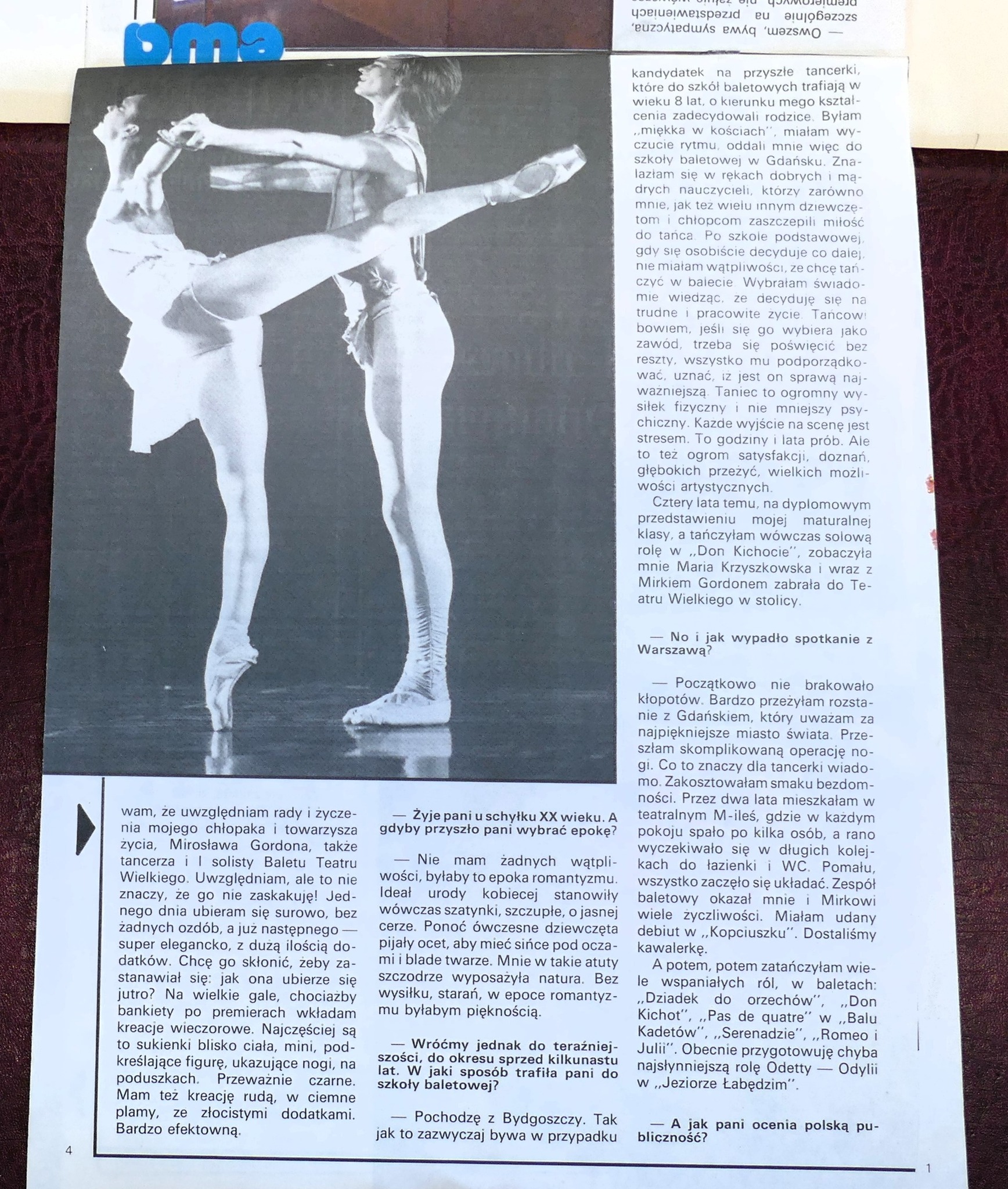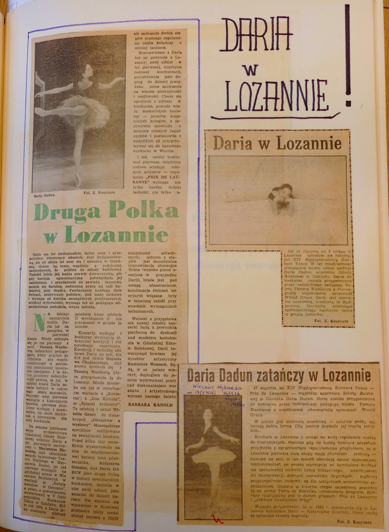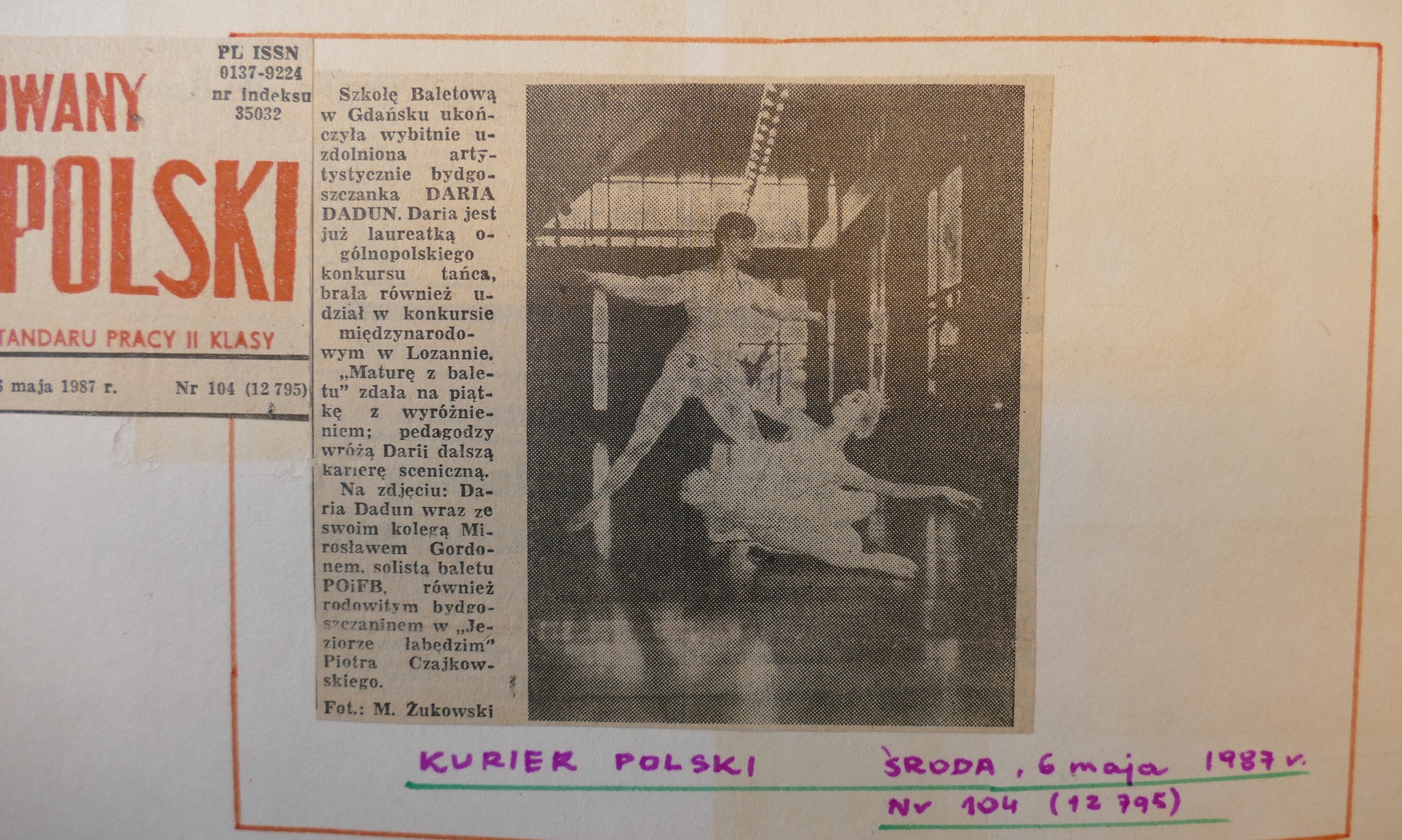 Dłużej zatrzymamy się przy Daria Dadun, bardzo uzdolnionej tancerce. Jest laureatką II nagrody V Ogólnopolskiego Konkursu Tańca i Choreografii, Gdańsk 1984. Otrzymała również Medal im. L. Wójcikowskiego dla najwybitniejszego młodego tancerza w 1988. Pani Daria po szkole wyjechała tańczyć do Teatru Wielkiego w Warszawie. Można powiedzieć, że czekał tam na Nią Pan Mirosław Gordon, absolwent z 1984 roku. Okazało się, że stolica była przystankiem w Ich zawodowej karierze i po kilku latach wyjechali za granicę. Jednak nie zapomnieli o Gdańsku – oboje byli gośćmi podczas koncertu galowego XI Ogólnopolskiego Konkursu Tańca w 1999 roku. Pani Daria zasiadła też dwukrotnie za stołem jurorskim podczas konkursów współorganizowanych przez naszą Baletówkę (II Ogólnopolski Konkurs Najmłodszych Tancerz, Gdańsk 2006, XVII Ogólnopolski konkurs Tańca im. Wojciecha Wiesiołłowskiego, Gdańsk 2011).