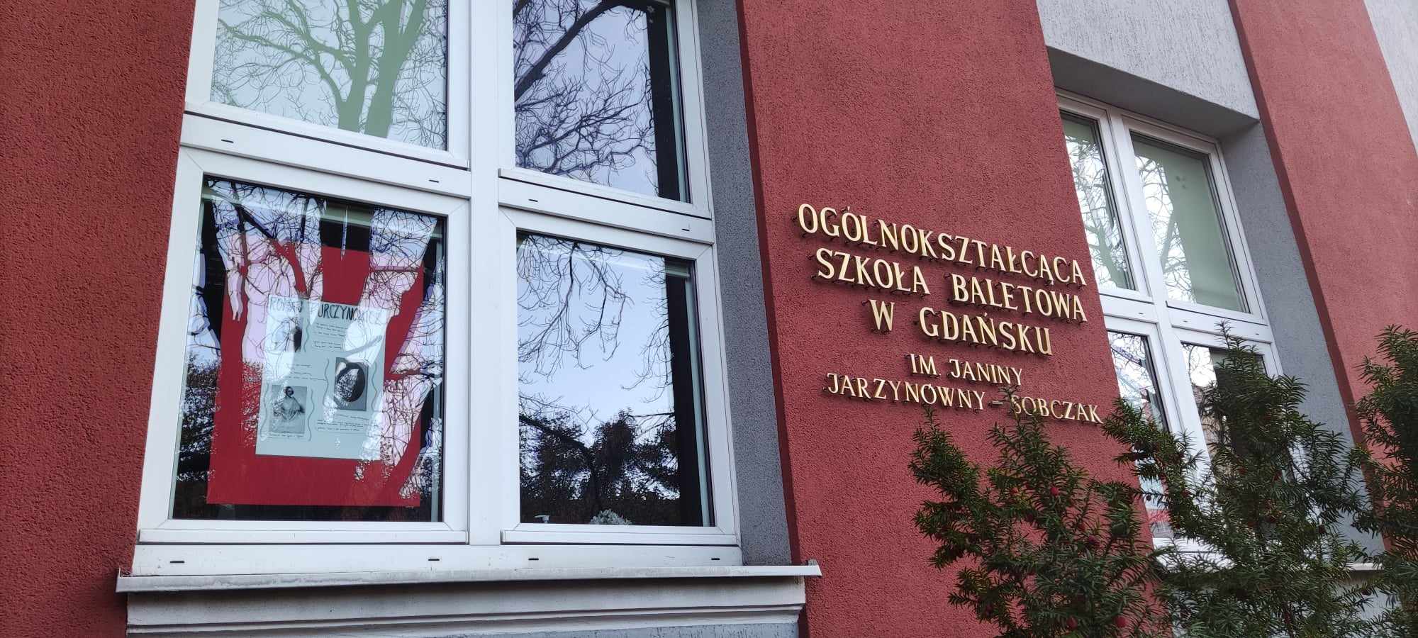 Tak przygotowane portrety zdobią wejście główne do szkoły i okna od strony ulicy. Każdy przechodzień może zobaczyć, że w baletówce świętujemy 105. rocznicę odzyskania niepodległości.