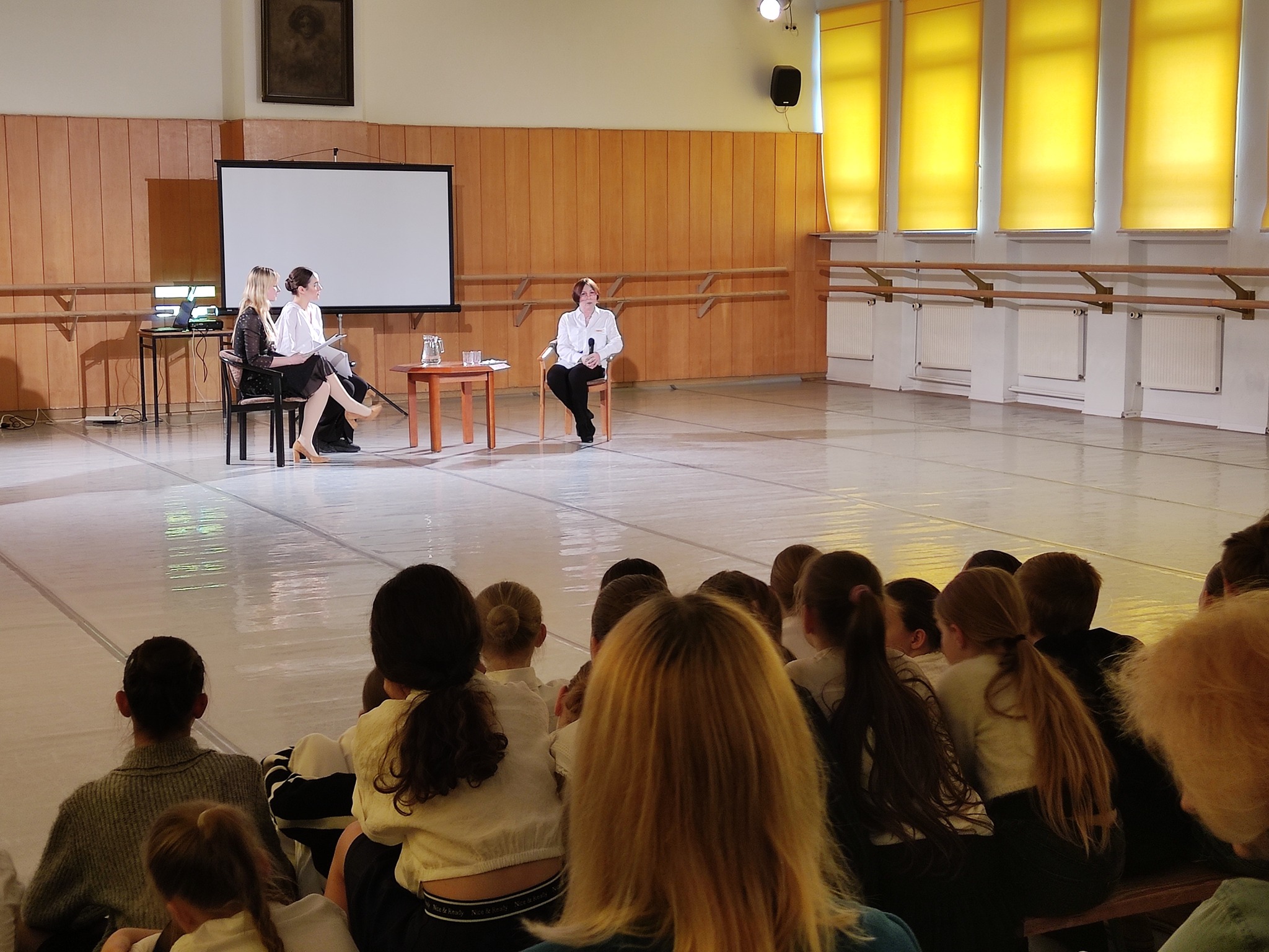 Podczas apelu mieliśmy także okazję wysłuchać krótkiego życiorysu patronki szkoły, Pani Janiny Jarzynówny-Sobczak, który przedstawili nam nasi najmłodsi uczniowie. Z kolei Pani Profesor Irena Tarasiewicz podzieliła się z nami swoimi wspomnieniami z minionych lat, kiedy to na szkolnych korytarzach można jeszcze było spotkać Profesor Jarzynównę-Sobczak. Bardzo dziękujemy za piękną lekcję historii. Nawiązując do pracy twórczej naszej patronki, obejrzeliśmy projekcję dzieła pt. „Tytania i Osioł”, w którym wystąpiła Alicja Boniuszko, ulubiona artystka Pani Janiny.
