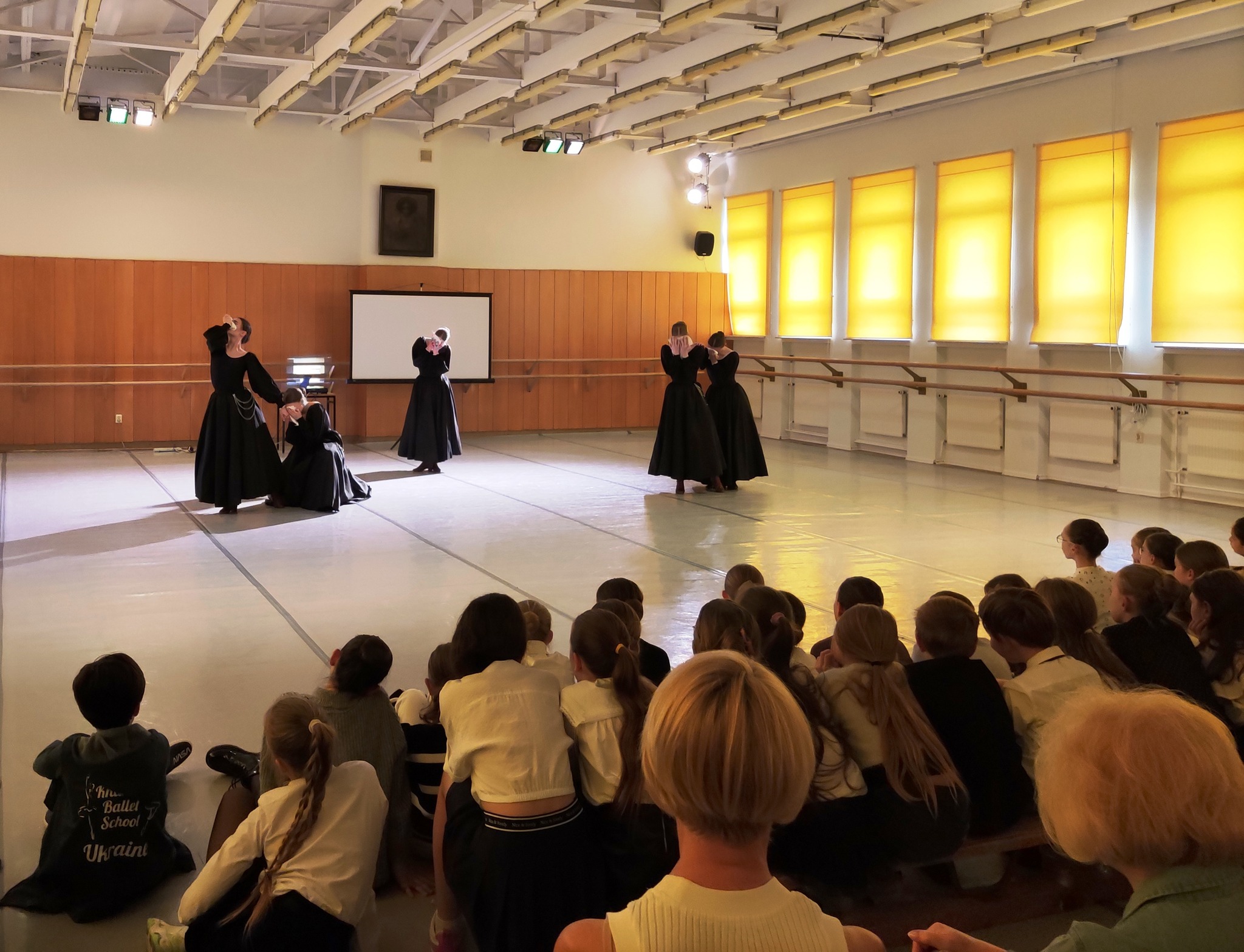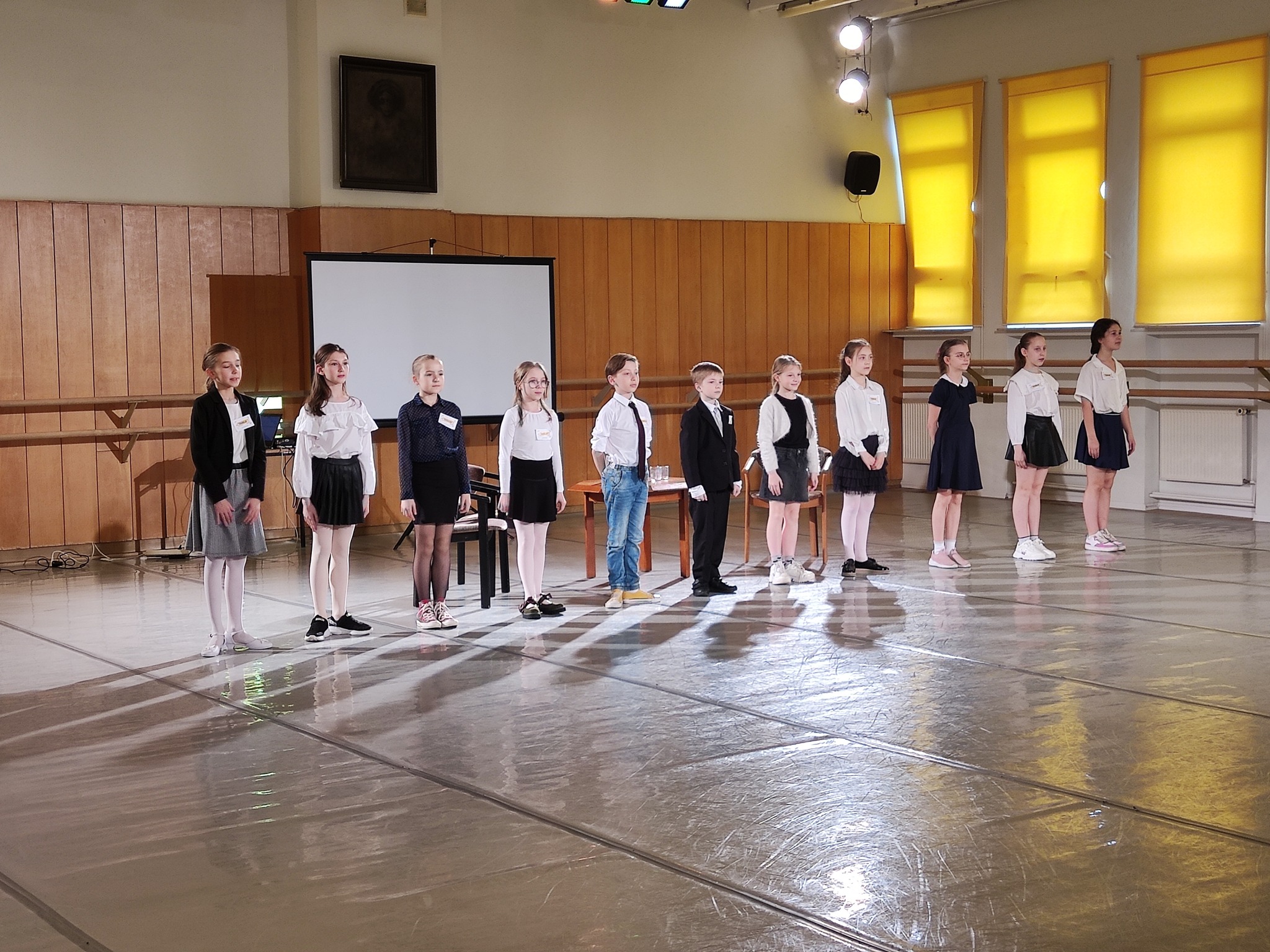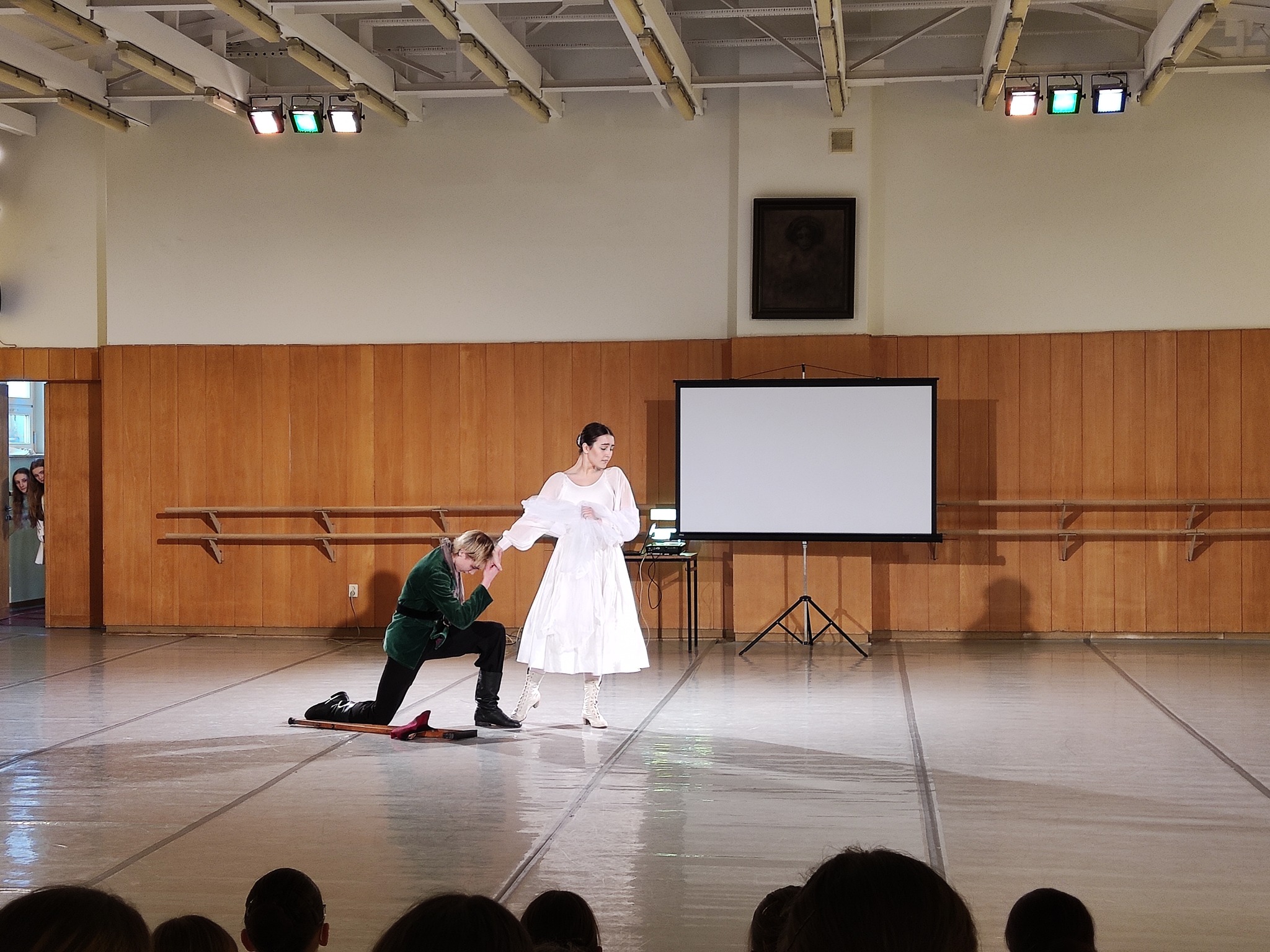 Obchody Dnia Tańca nie mogły odbyć się bez tańca, oczywiście. Dlatego na początku i na końcu apelu zostały zaprezentowane choreografie Pani Iwony Kierat-Łukasik. Zostały one przygotowane na V Ogólnopolski Festiwal Polskich Tańców Narodowych dla Uczniów Ogólnokształcących Szkół Baletowych, który niebawem odbędzie się w Koszęcinie.