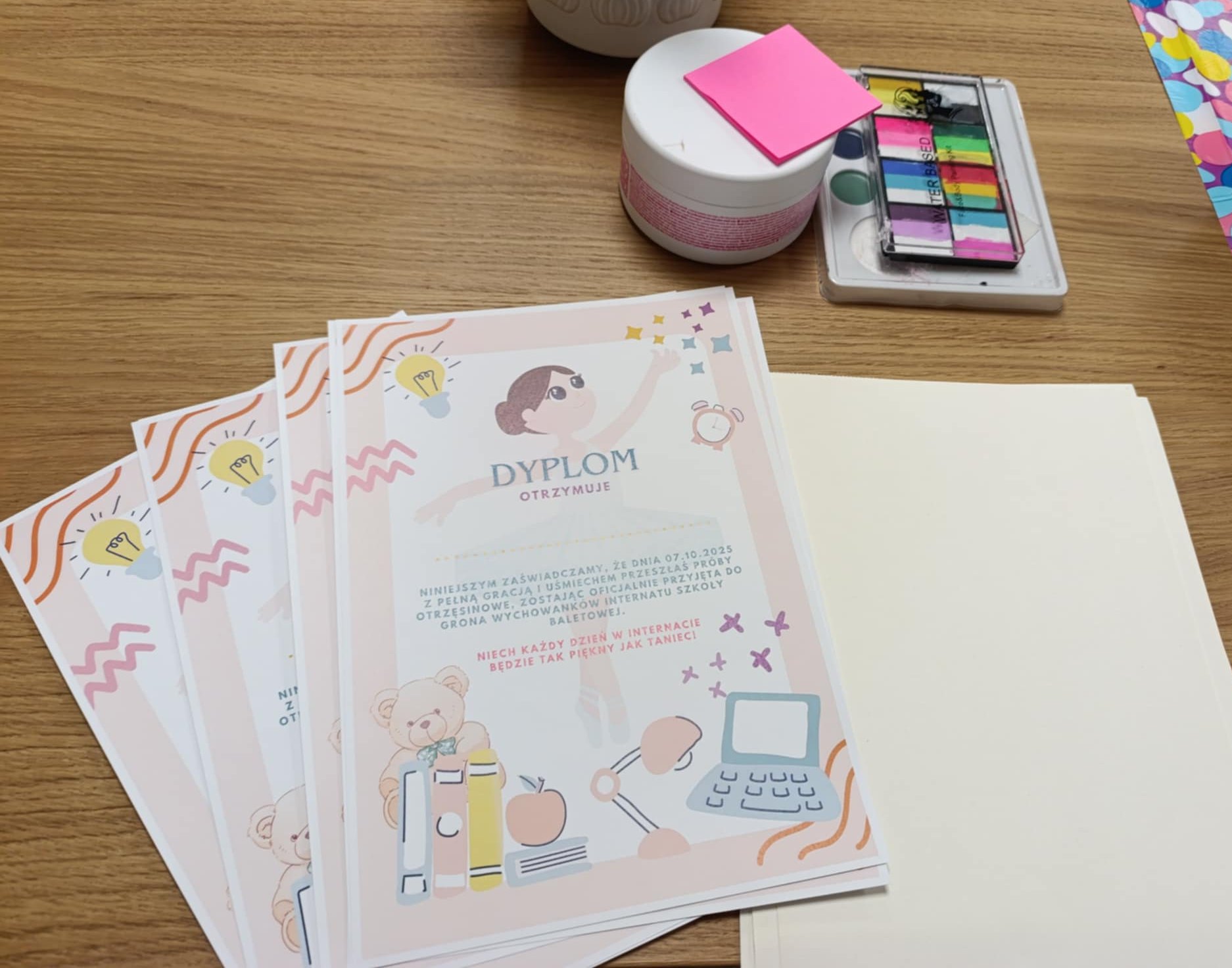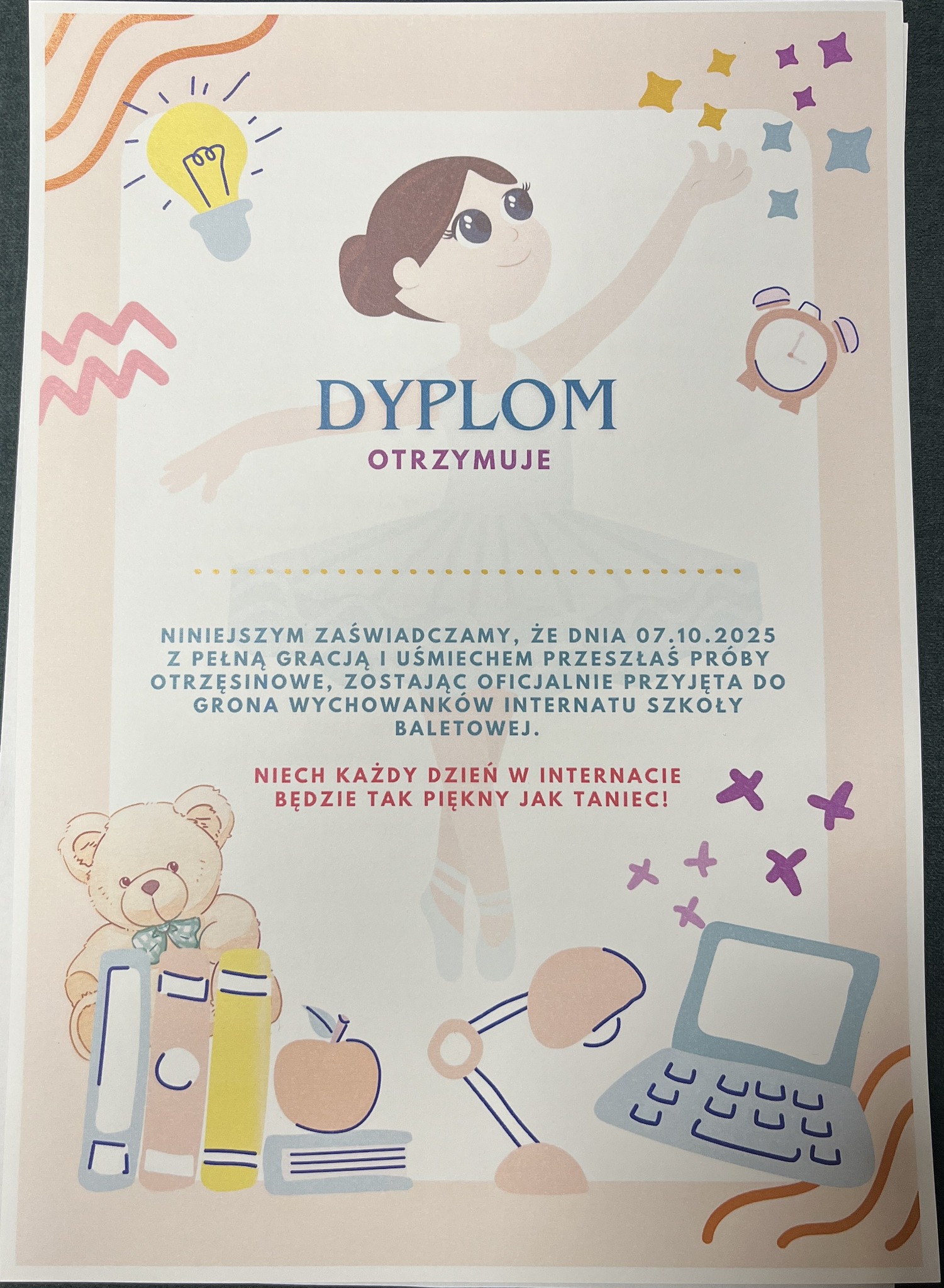 We wtorek 7 październik odbyły się otrzęsiny. Powiemy wprost - nie było łatwo! Tradycyjnie kisiel i mąka nie ułatwiały czesania koka, a i pozostałe zadanie (test wiedzy o internacie i szkole, wypicie tajemniczej mikstury, joga w parach i inne) mogły przyprawić o zawrót głowy. Na szczęście, dzięki współpracy i wsparciu pozostałych wychowanków, wszystkim się udało. Imprezę zakończyło uroczyste pasowanie i rozdanie pamiątkowych dyplomów.