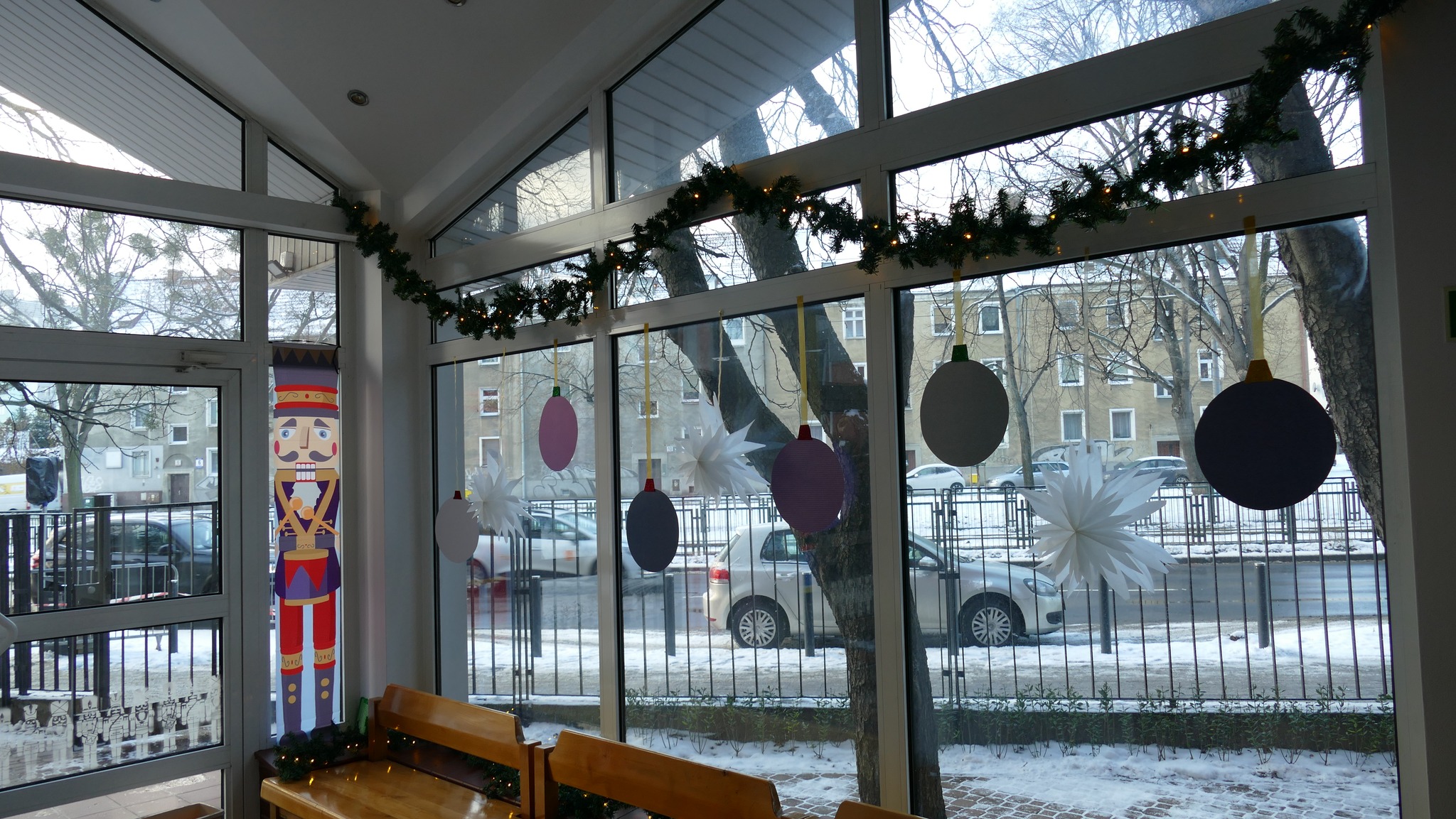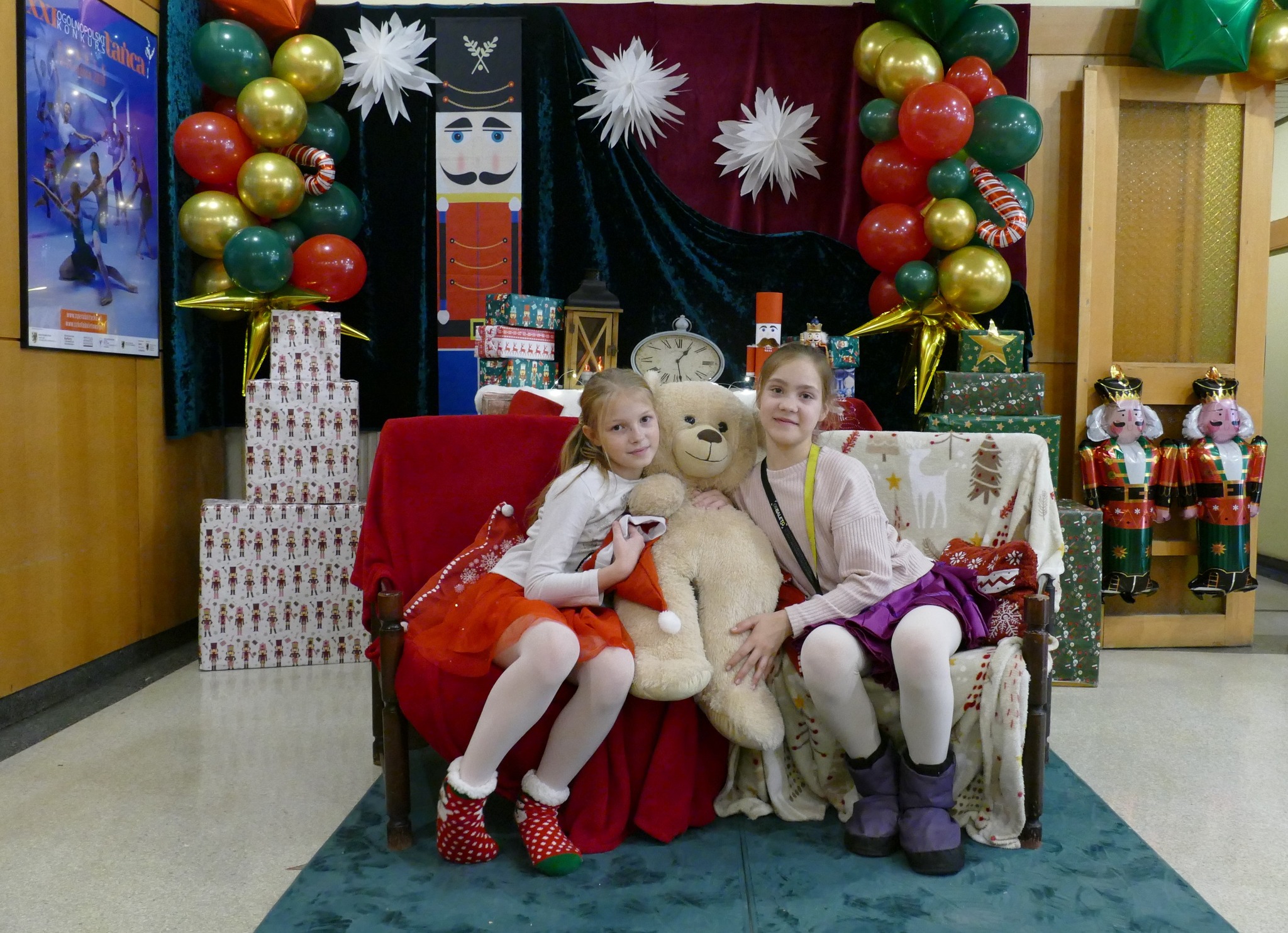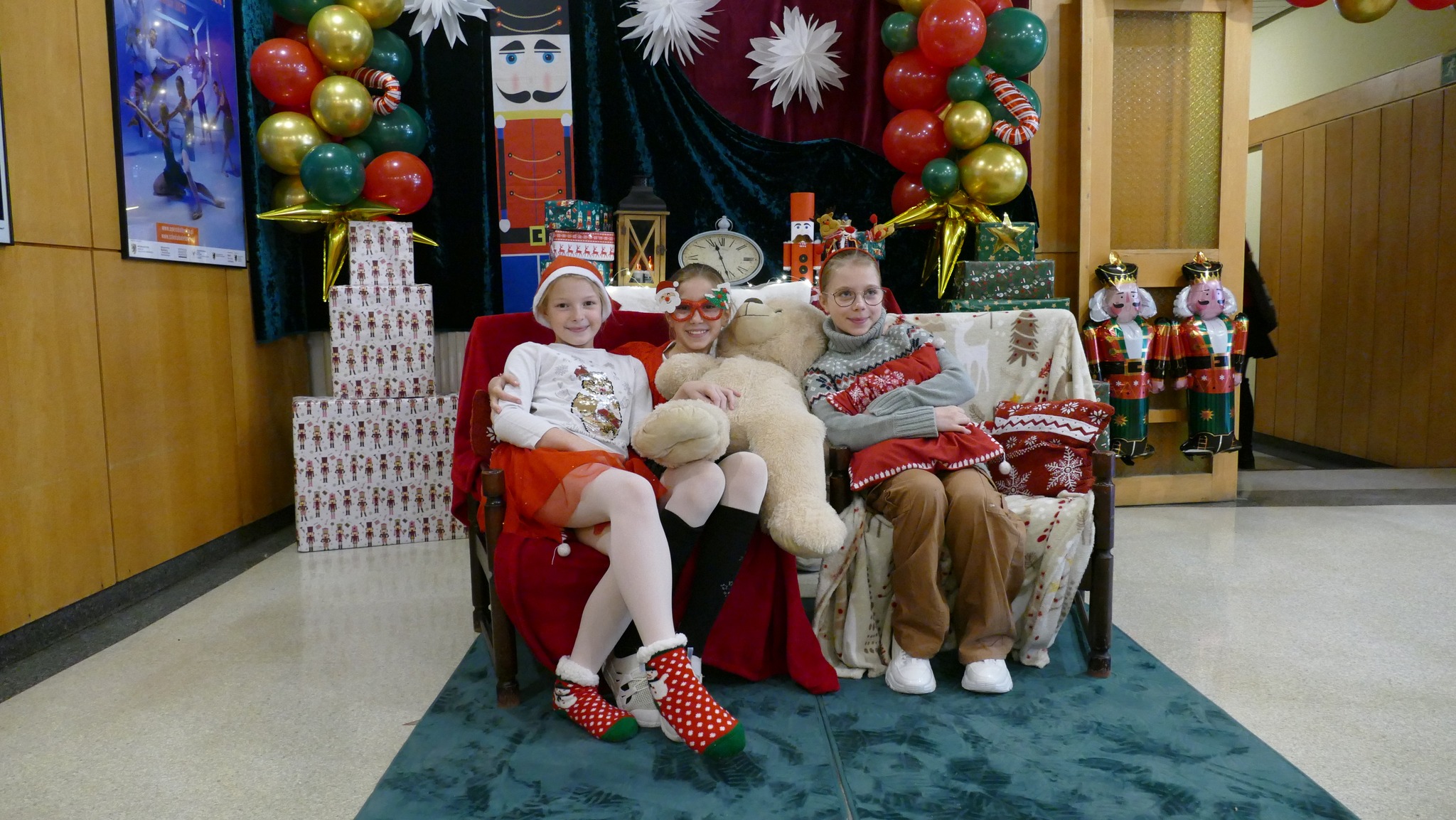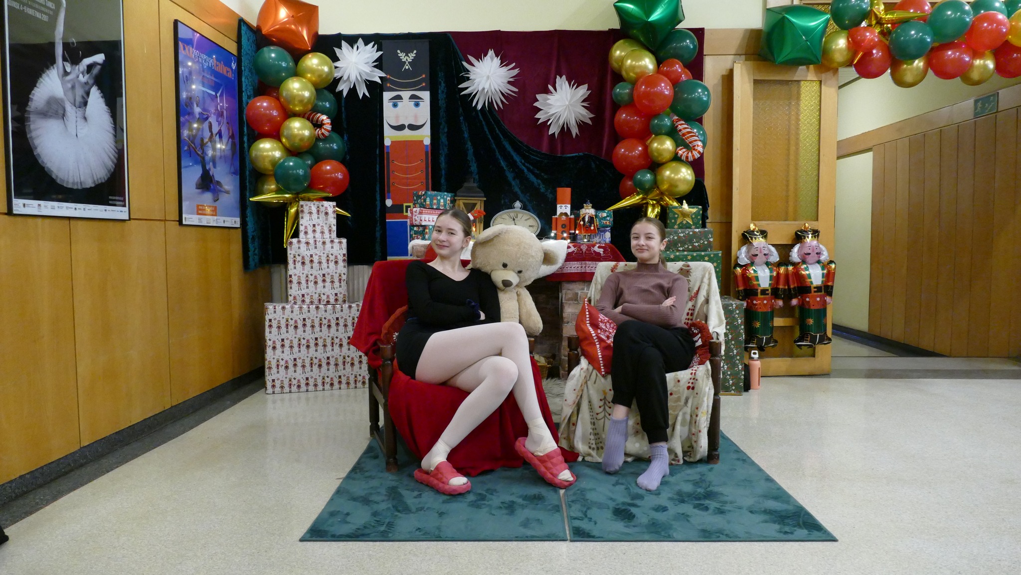 Nauczycielka plastyki, Pani Asia, przygotowała klimatyczny wystrój wejścia do szkoły i holu, w stylu - a jakżeby to inaczej - "Dziadka do orzechów". A także urocze stanowisko do zdjęć, z którego można wciąż korzystać. A już na progu szkoły, wchodzących wita rozświetlone drzewko świąteczne