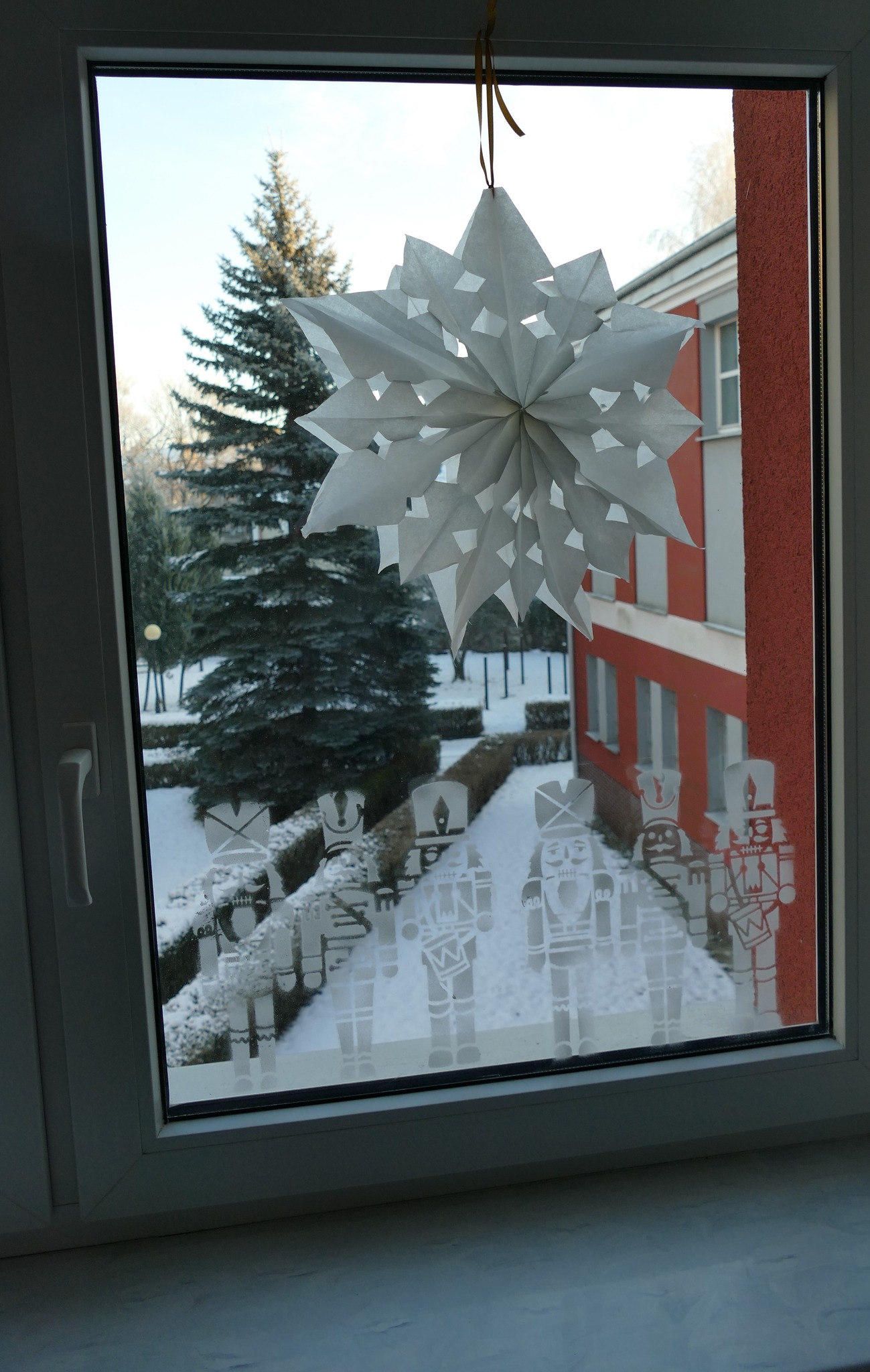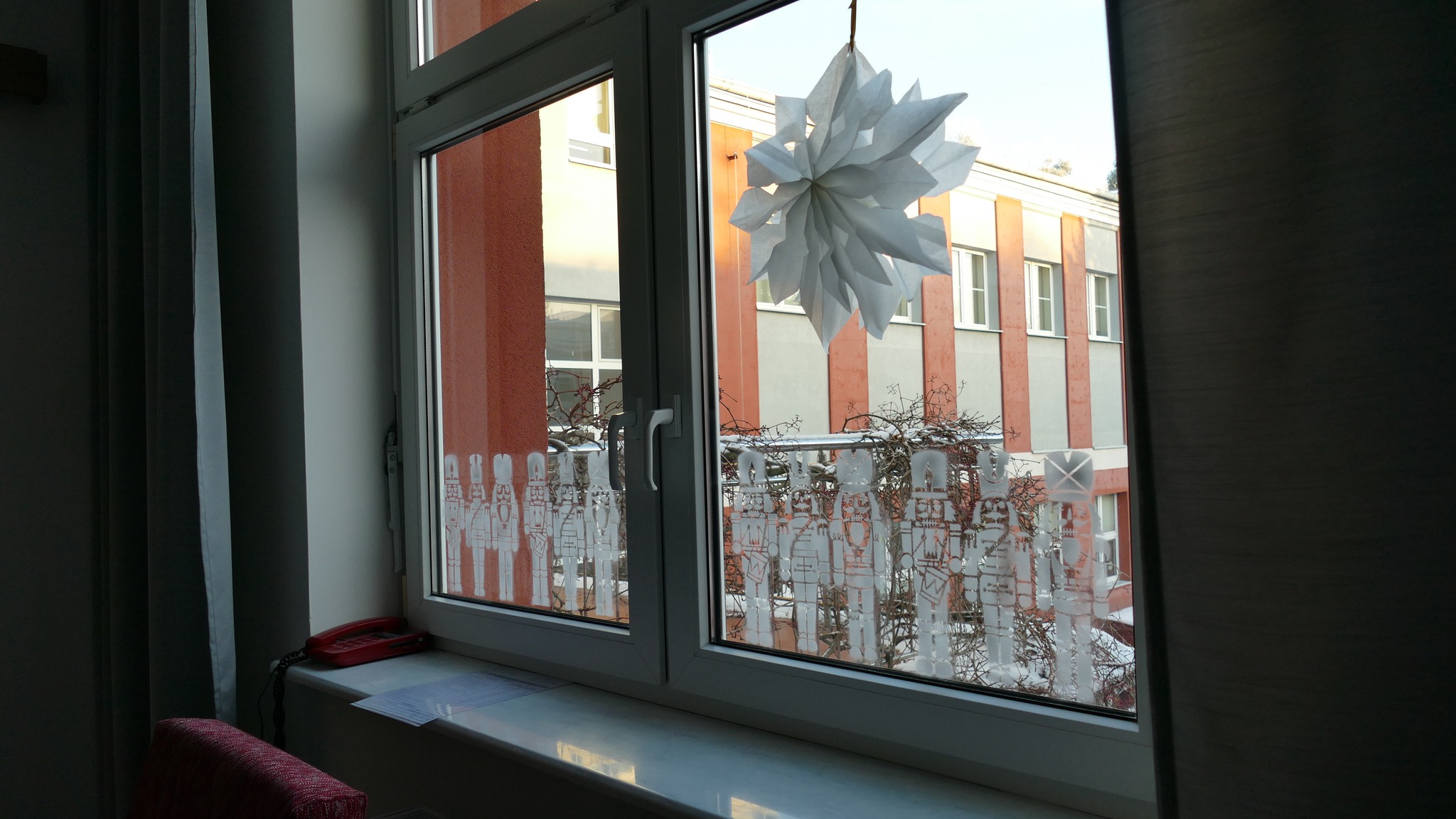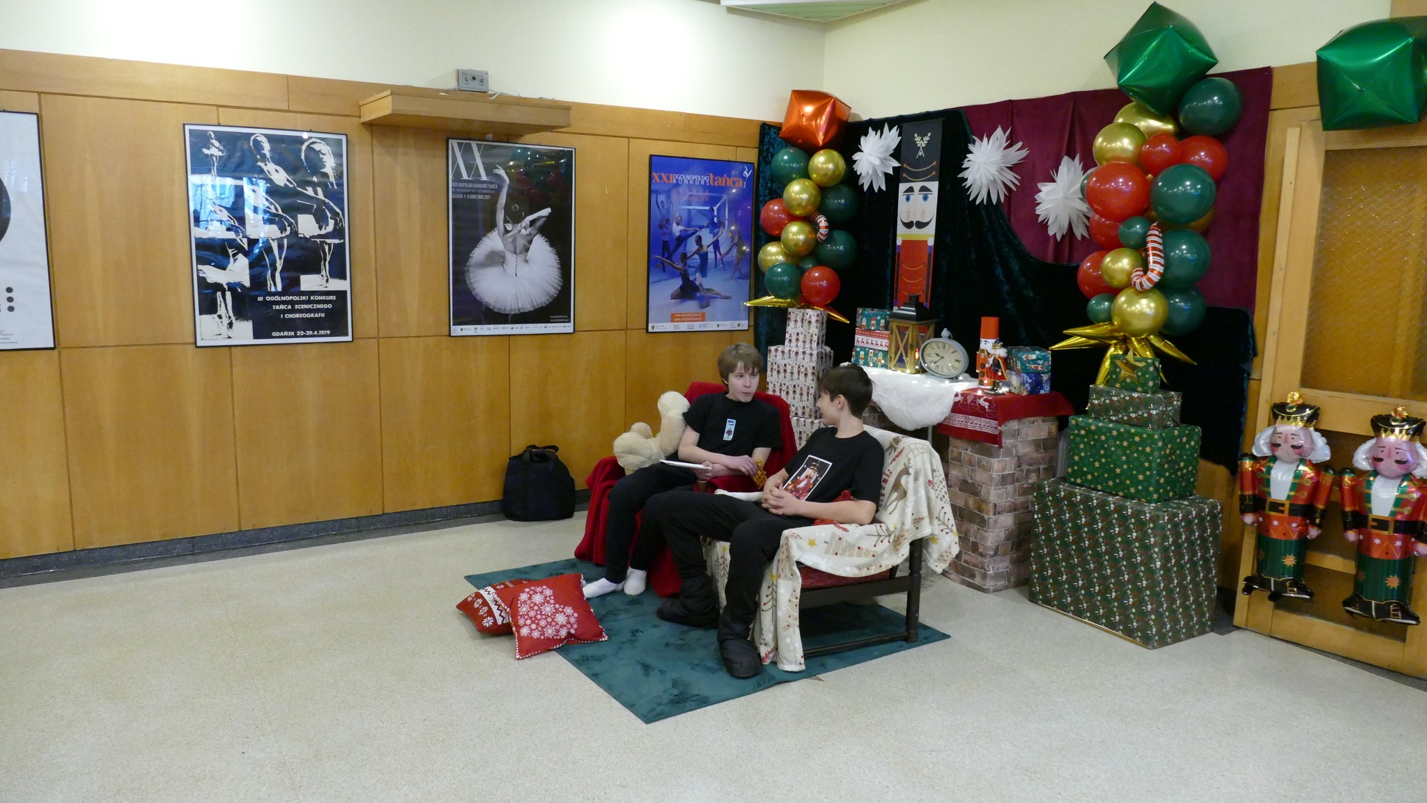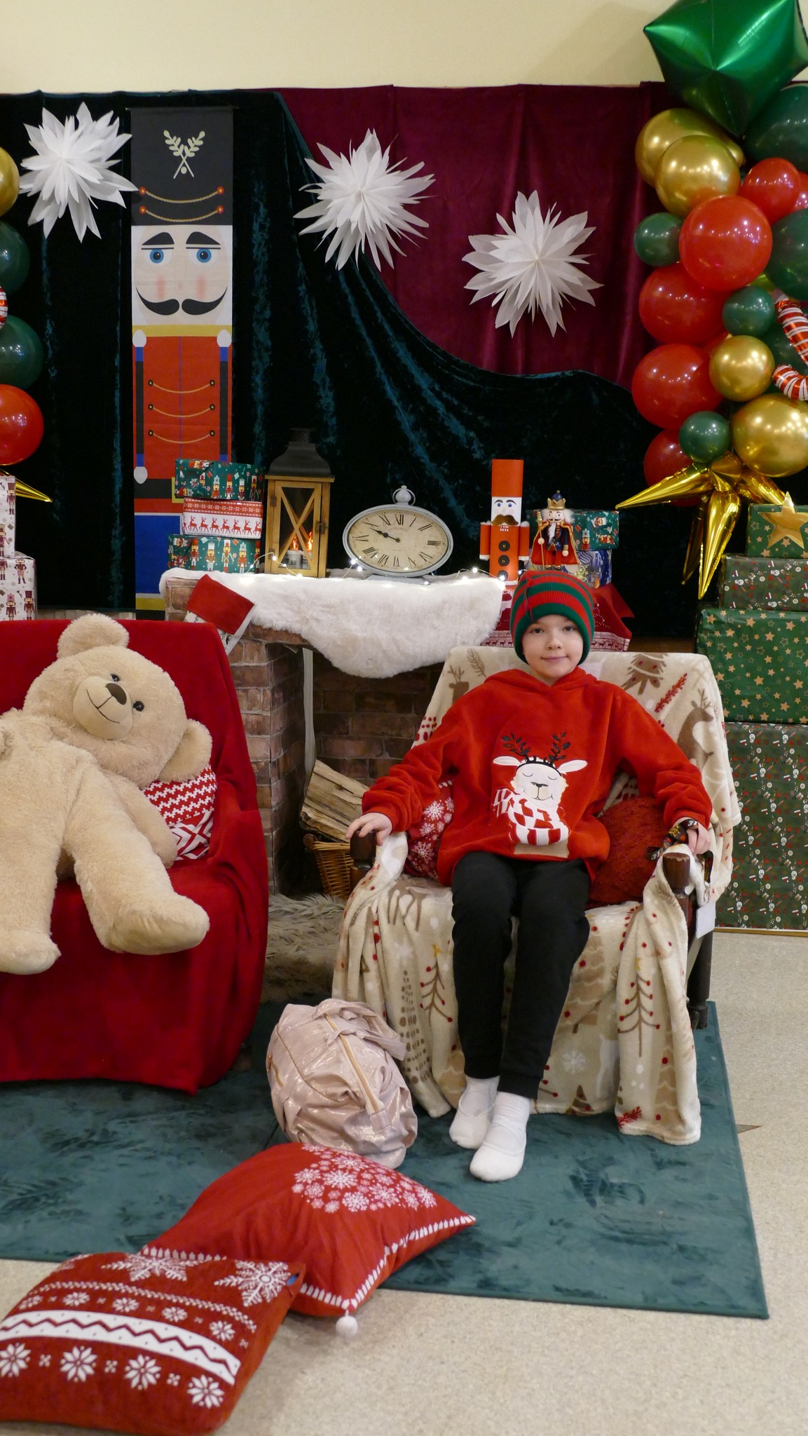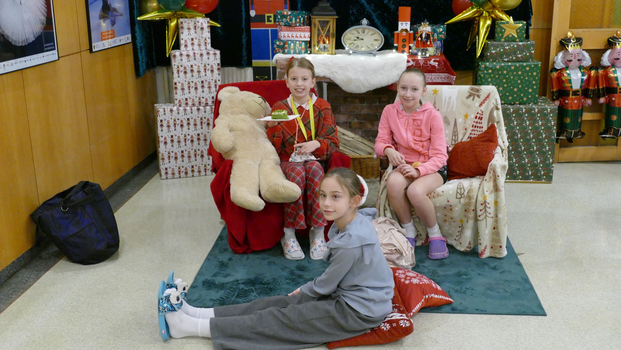 Nauczycielka plastyki, Pani Asia, przygotowała klimatyczny wystrój wejścia do szkoły i holu, w stylu - a jakżeby to inaczej - "Dziadka do orzechów". A także urocze stanowisko do zdjęć, z którego można wciąż korzystać. A już na progu szkoły, wchodzących wita rozświetlone drzewko świąteczne