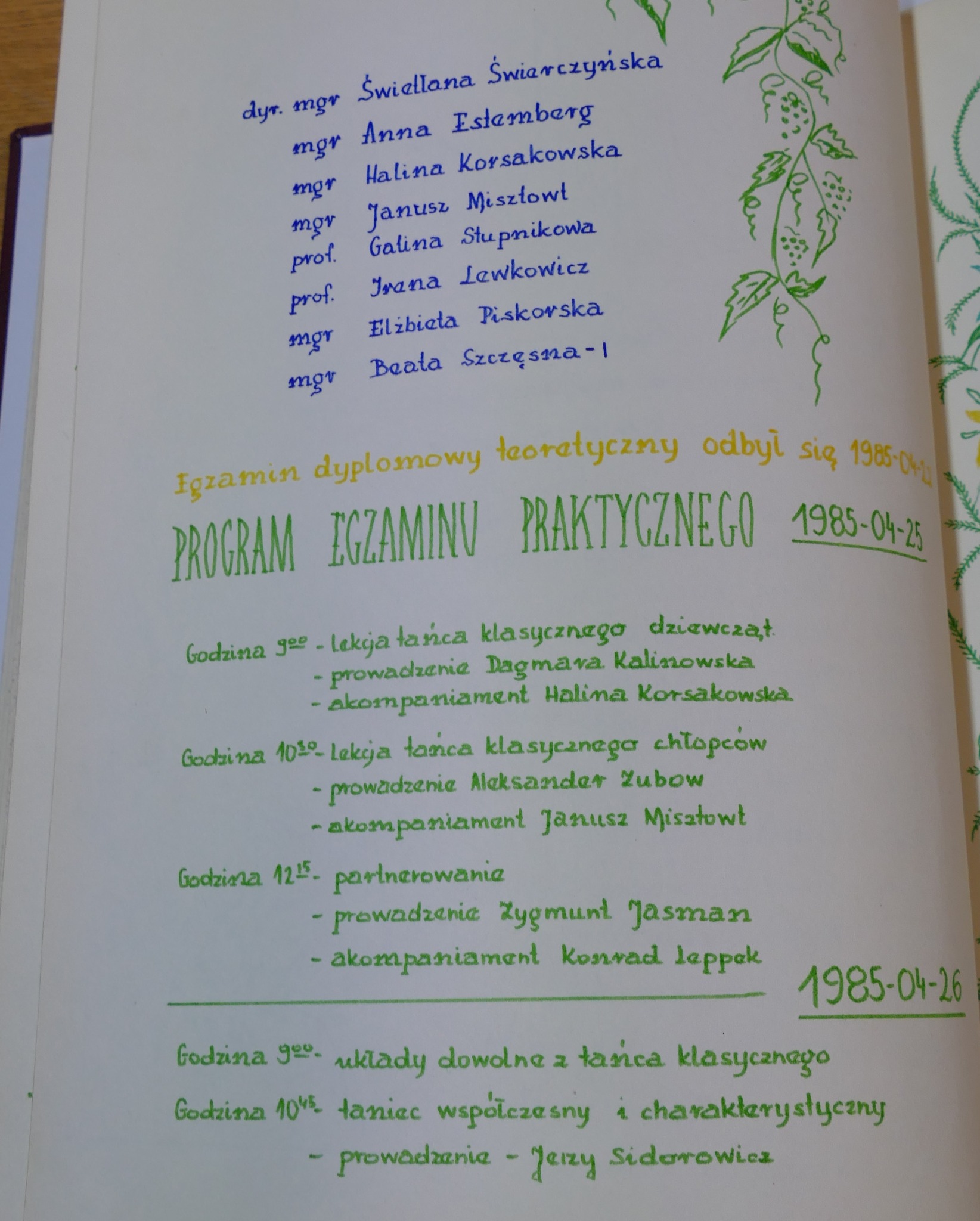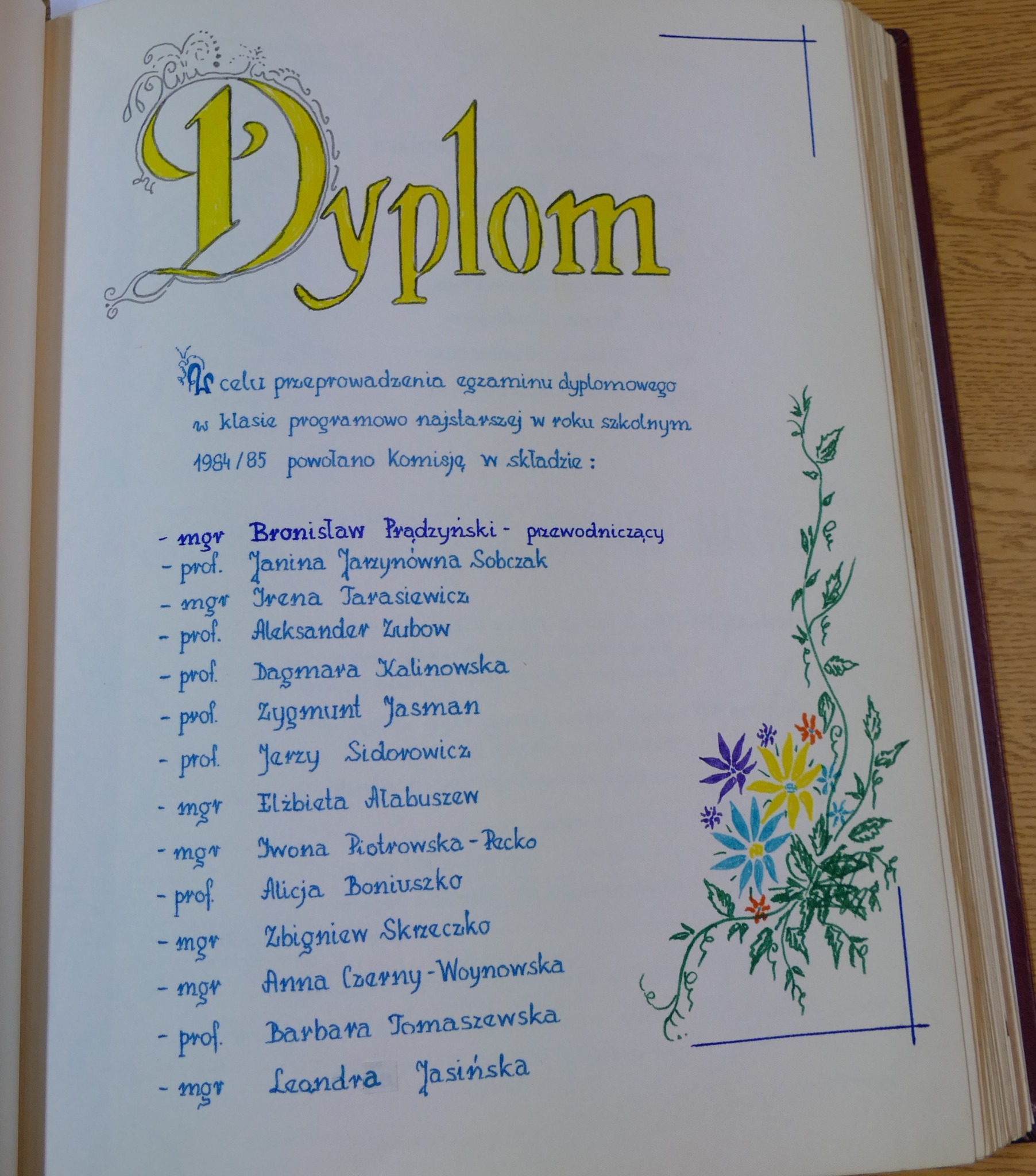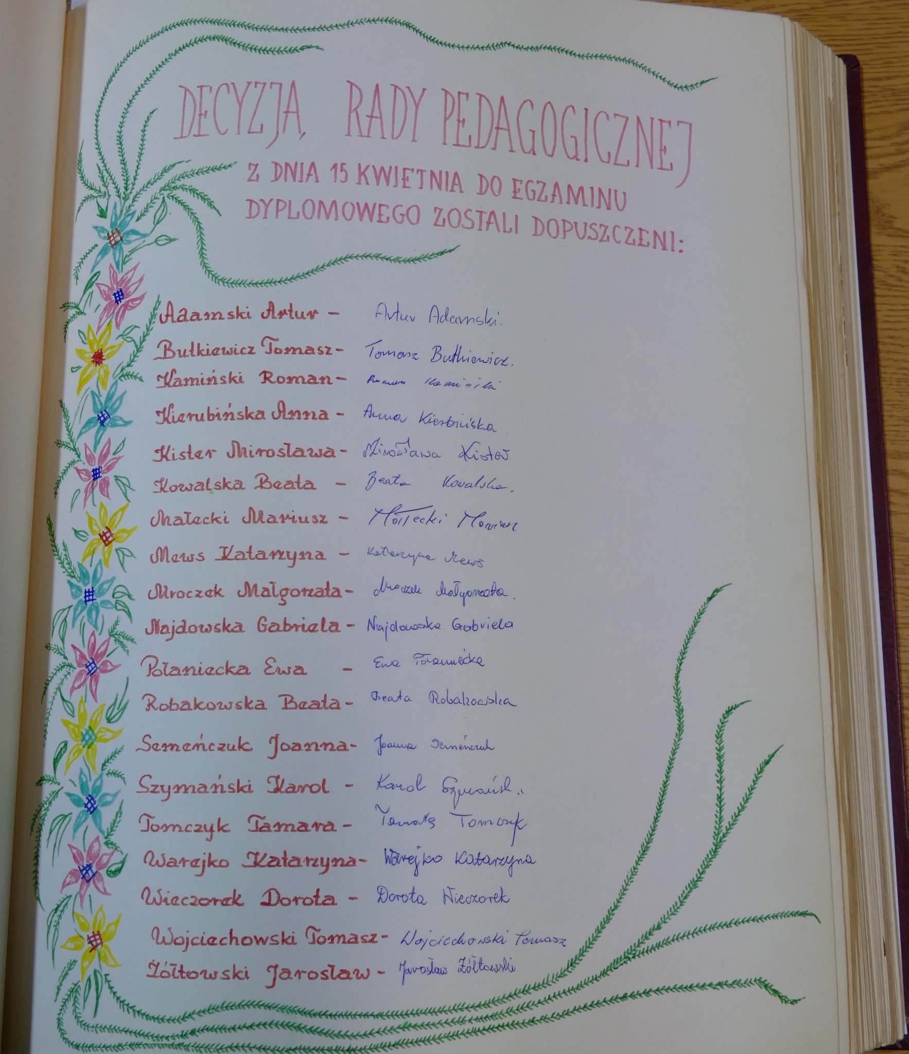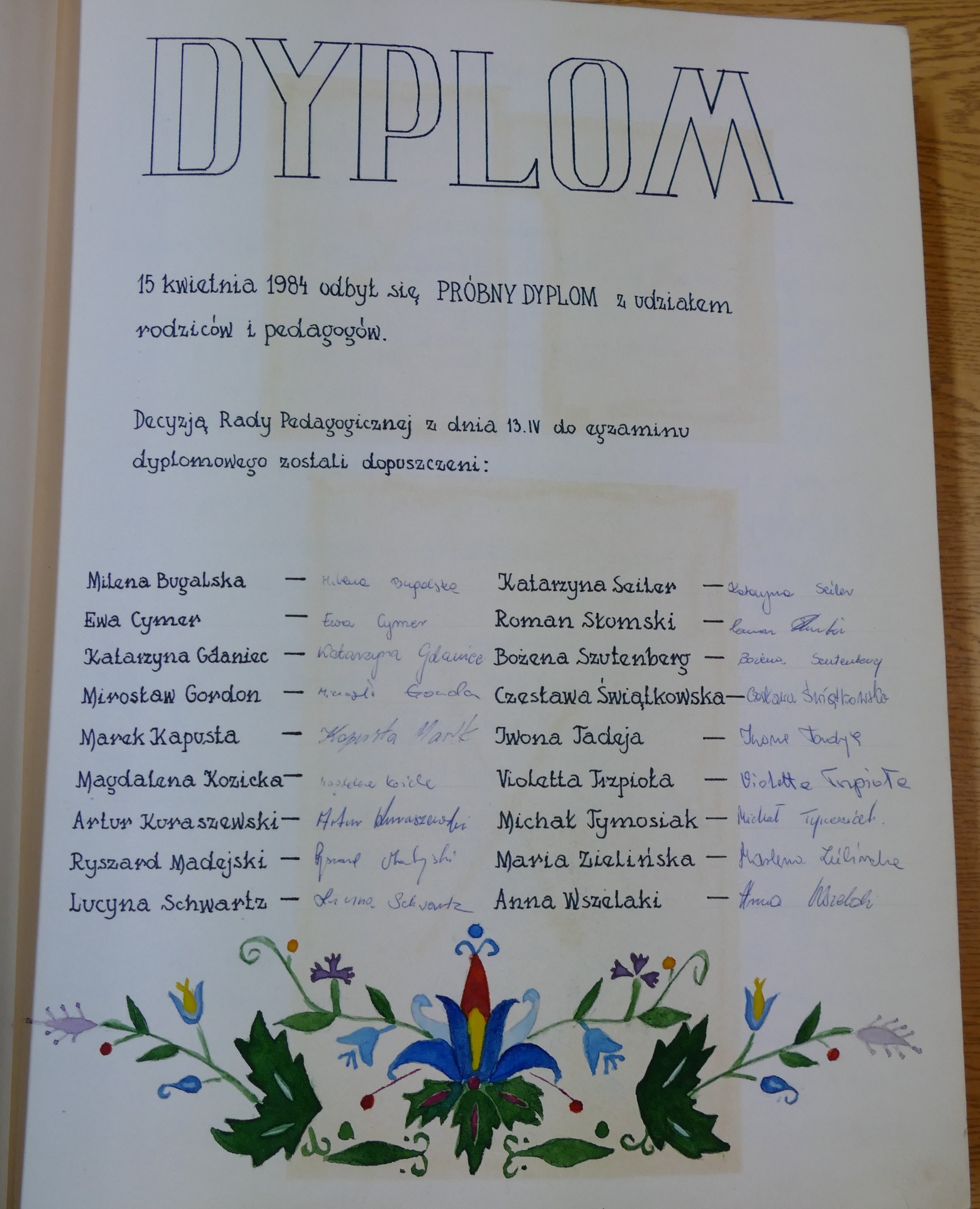 1985: Artur Adamski, Tomasz Butkiewicz, Roman Kamiński, Anna Kierubińska, Mirosława Kister, Beata Kowalska, Mariusz Małecki, Katarzyna Mews, Małgorzata Mroczek, Gabriela Najdowska, Ewa Połaniecka, Beata Robakowska, Joanna Semeńczuk, Karol Szymański, Tamara Tomczyk, Katarzyna Warejko, Dorota Wieczorek, Tomasz Wojciechowski, Jarosław Żółtowski