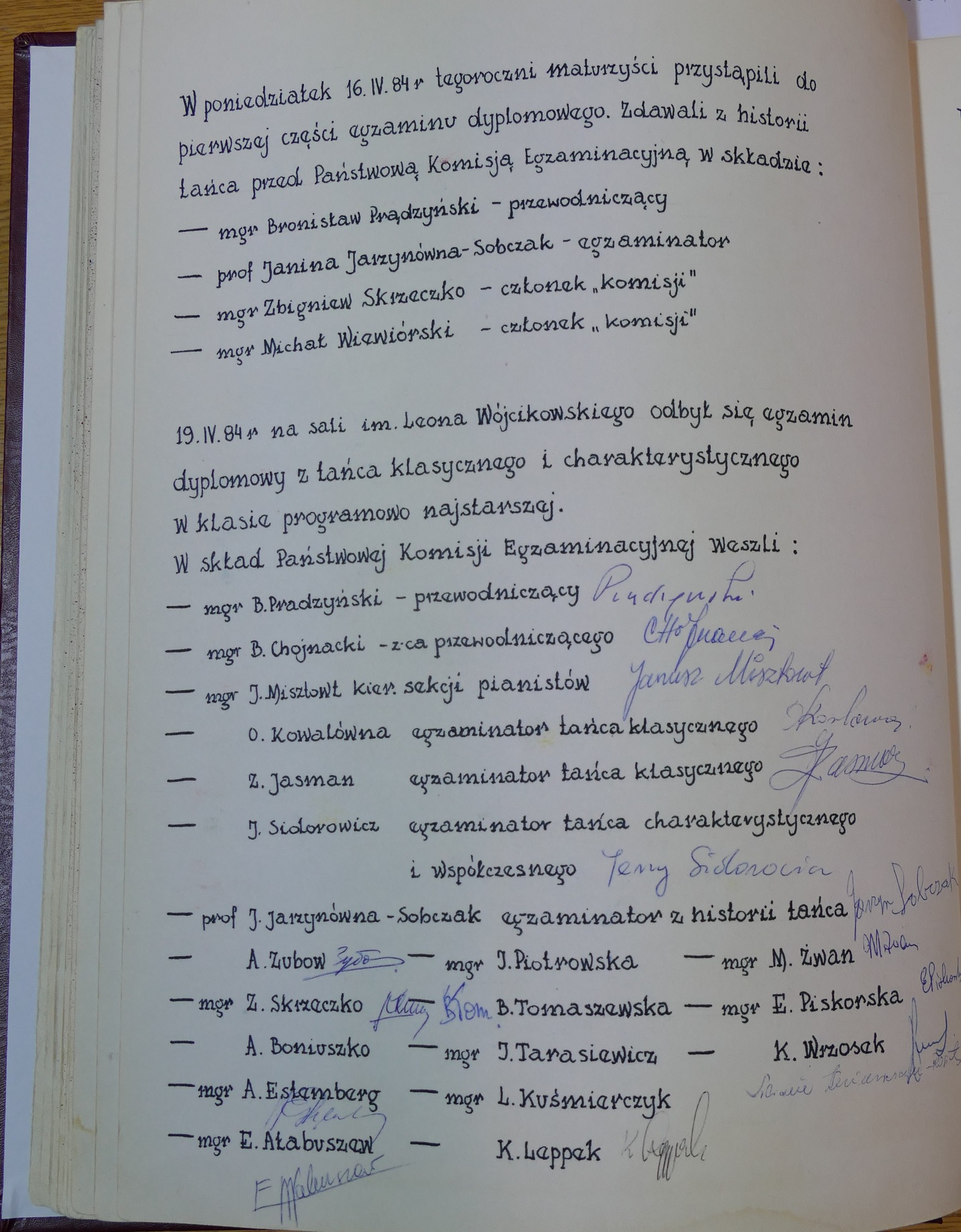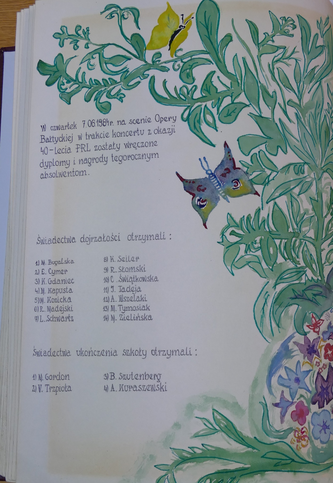 1984: Milena Bugalska, Ewa Cymer, Katarzyna Gdaniec, Mirosław Gordon, Marek Kapusta, Magdalena Kozicka, Artur Kuraszewski, Ryszard Madejski, Lucyna Szwartz, Katarzyna Seiler, Roman Słomski, Bożena Szutenberg, Czesława Świątkowska, Iwona Tadejań, Wioletta Trzpioła, Michał Tymosiak, Anna Wszelaki, Marlena Zielińska