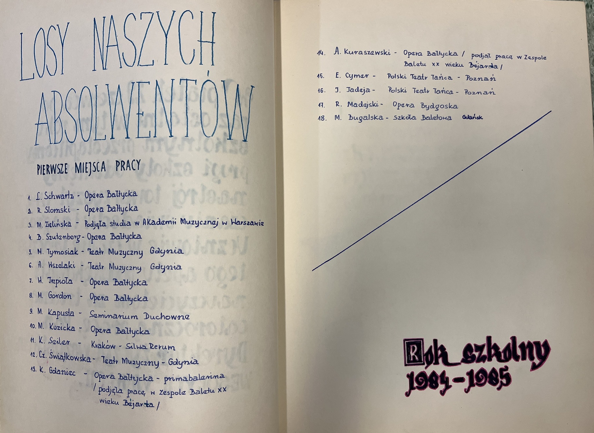 Teraz wracamy do absolwentów: Marek Kapusta również wrócił do szkoły. W zaskakującej roli – został księdzem i uczył przez kilka lat religii. Joanna Semeńczuk po dyplomie wyjechała co prawda z Gdańska, ale wróciła nad morze i pracuje „po sąsiedzku”, jest kierownikiem baletu w Teatrze Muzycznym im. Danuty Baduszkowej w Gdyni.