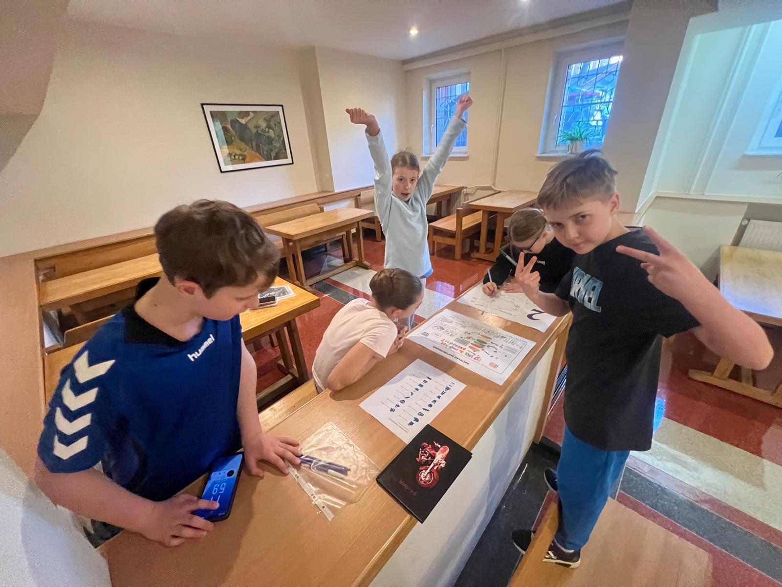 22 marca to MIĘDZYNARODOWY DZIEŃ WODY, z tej okazji w naszej Szkole odbyła się WODNA GRA TERENOWA. Uczniowie klas 1-5 odnajdywali punkty i rozwiązywali zadania związane z wodą – szukali odpowiedzi na ważne pytania, dokonywali obliczeń, wypełniali diagramy, układali przepisy, uzupełnili mapki, redagowali hasła reklamowe a nawet rozwiązywali sudoku, a wszystko po to, by pamiętać, jak niezwykle potrzebnym, ważnym i cennym SKARBEM JEST WODA.