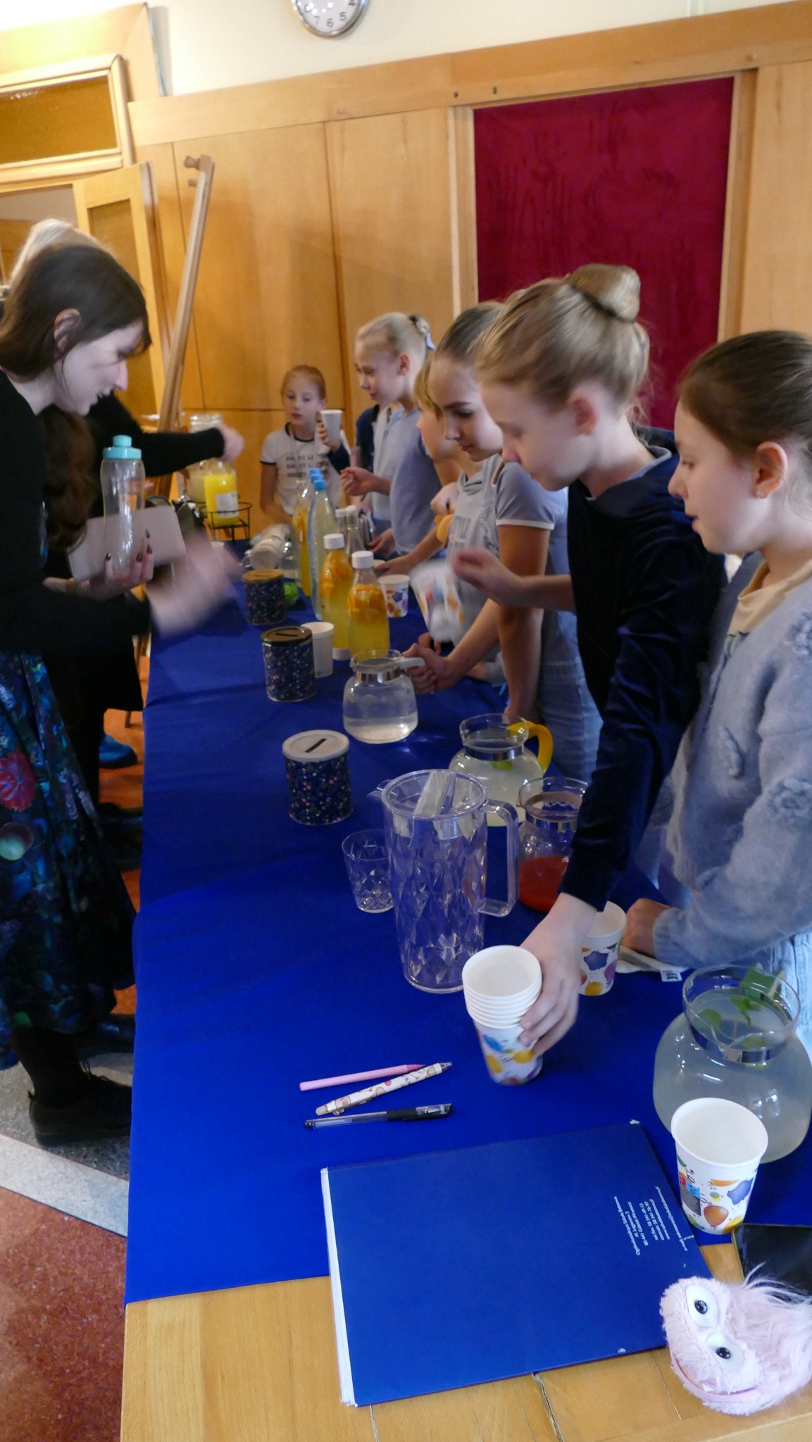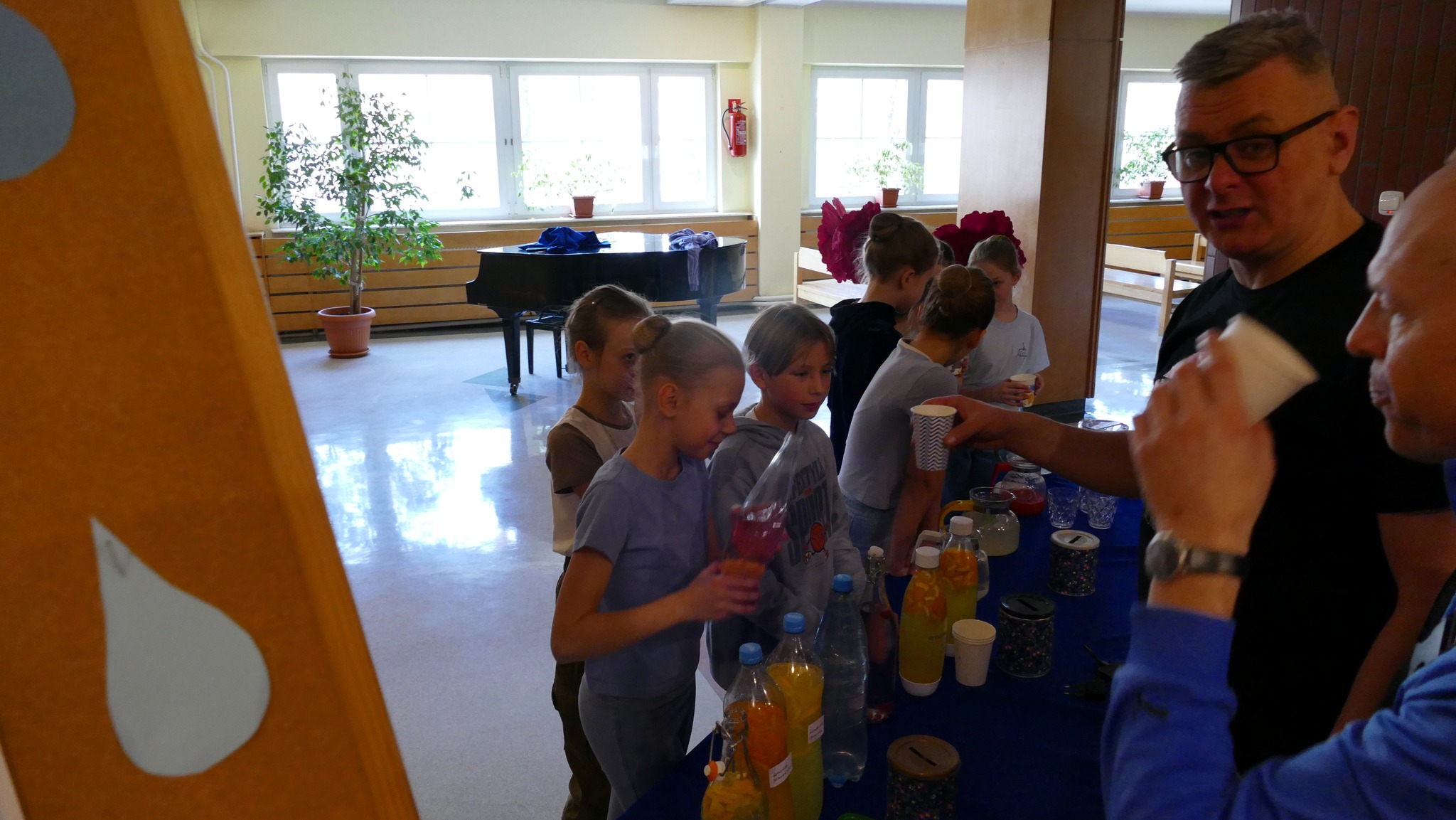 Dodatkowo na długich przerwach można było skosztować pysznych lemoniad przygotowanych przez uczniów klas 1-5. Dochód z WODNEGO KIERMASZU zostanie przeznaczony na rzecz PAH, która buduje studnie w Afryce.